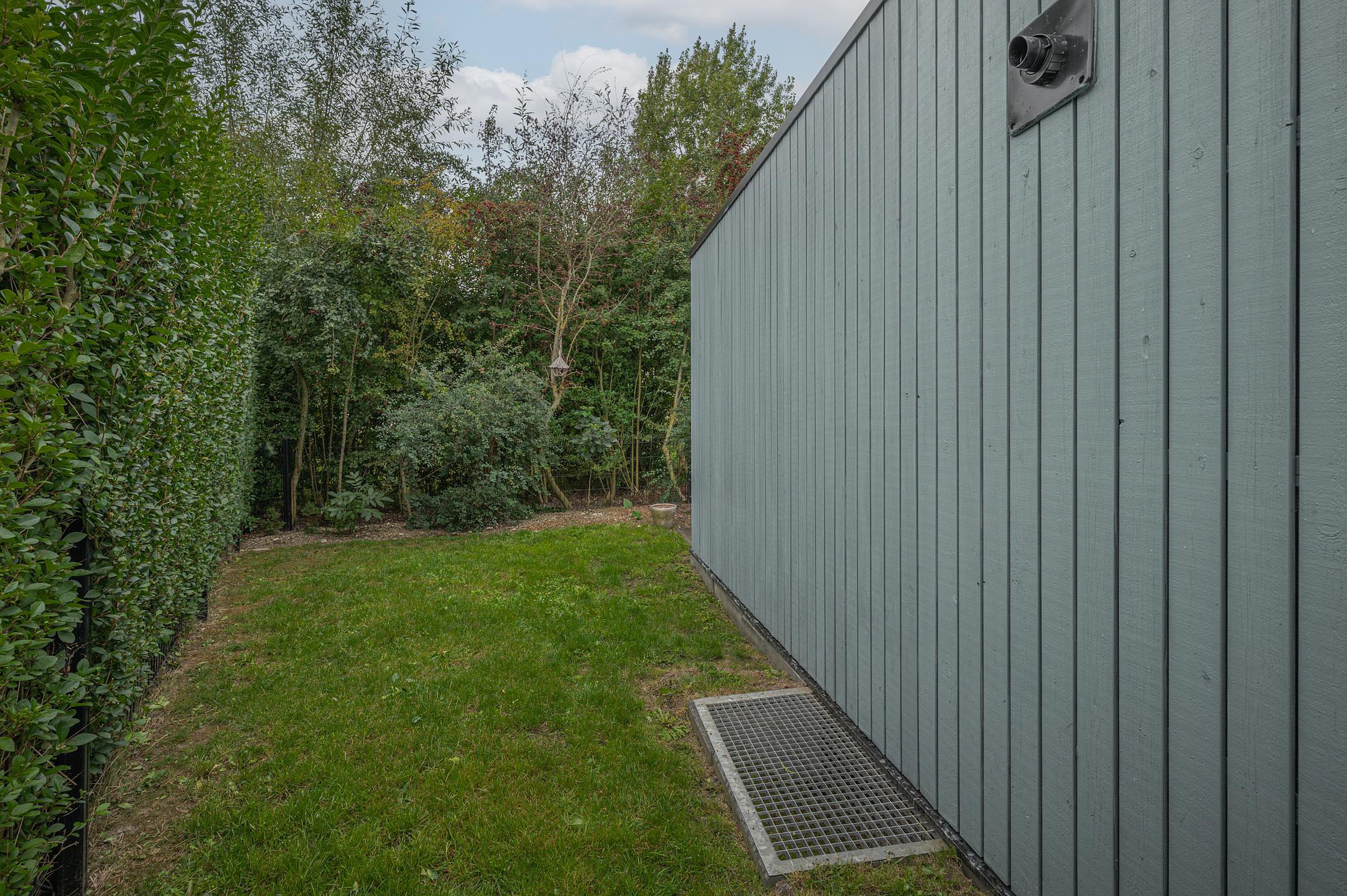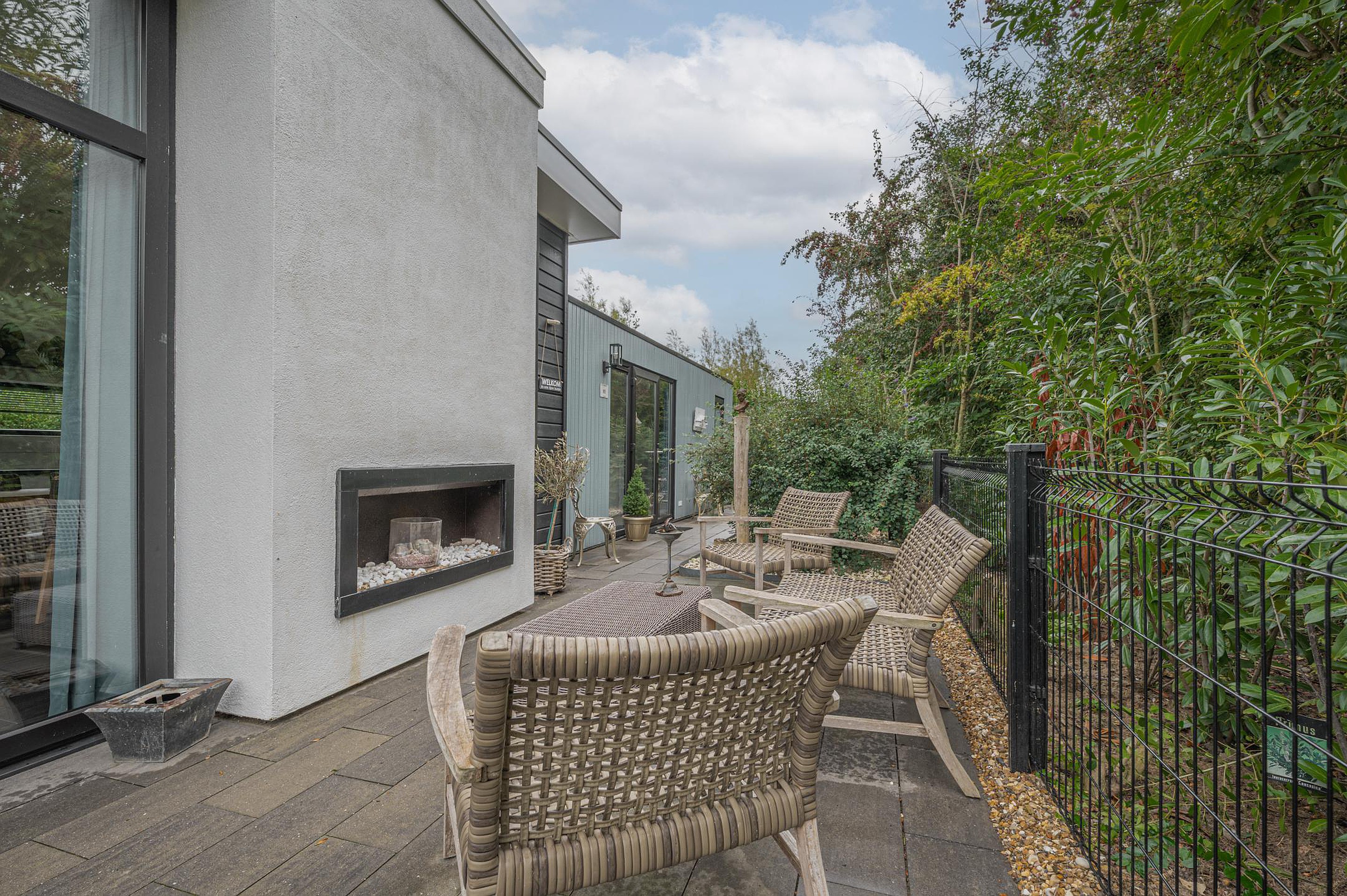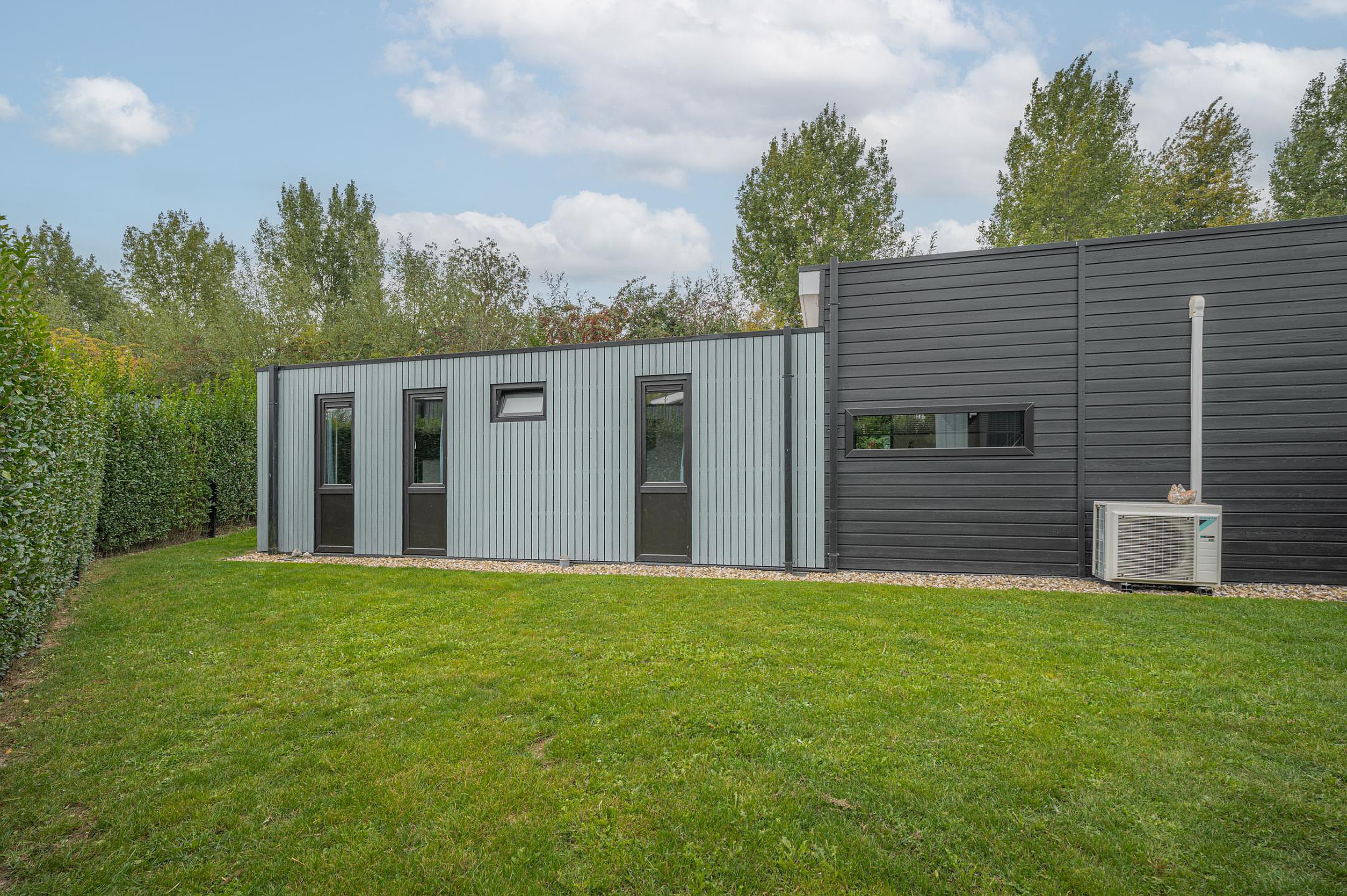 Rondom het chalet is een nette tuin met terras en zitgedeelte. Hier kunt u in alle rust genieten van de zon, een goed boek of een gezellige barbecue. Dankzij de ligging en het vele groen ervaart u volop privacy. Daarnaast is er een praktische berging aanwezig voor fietsen, strandspullen of tuinmeubilair.