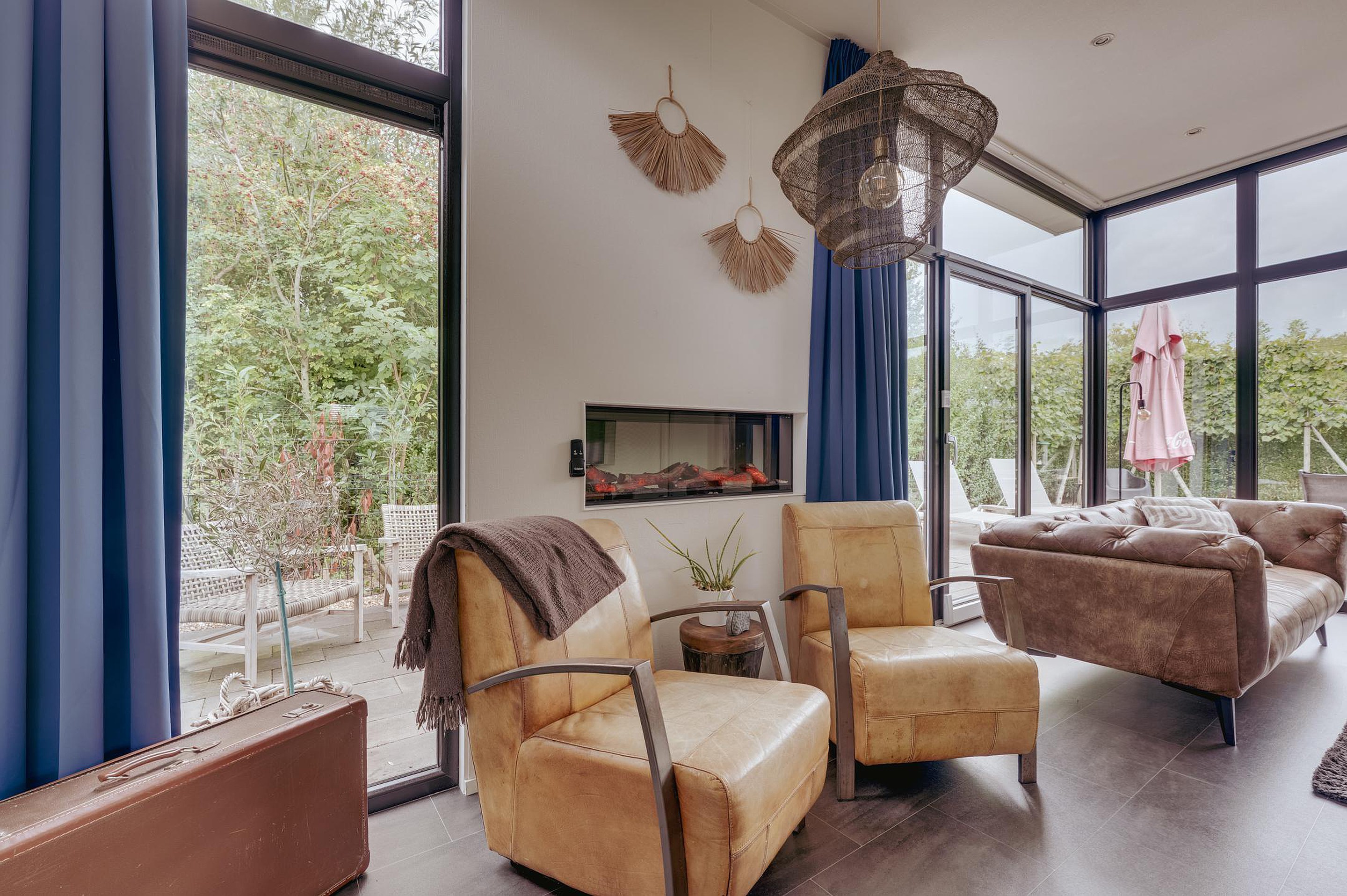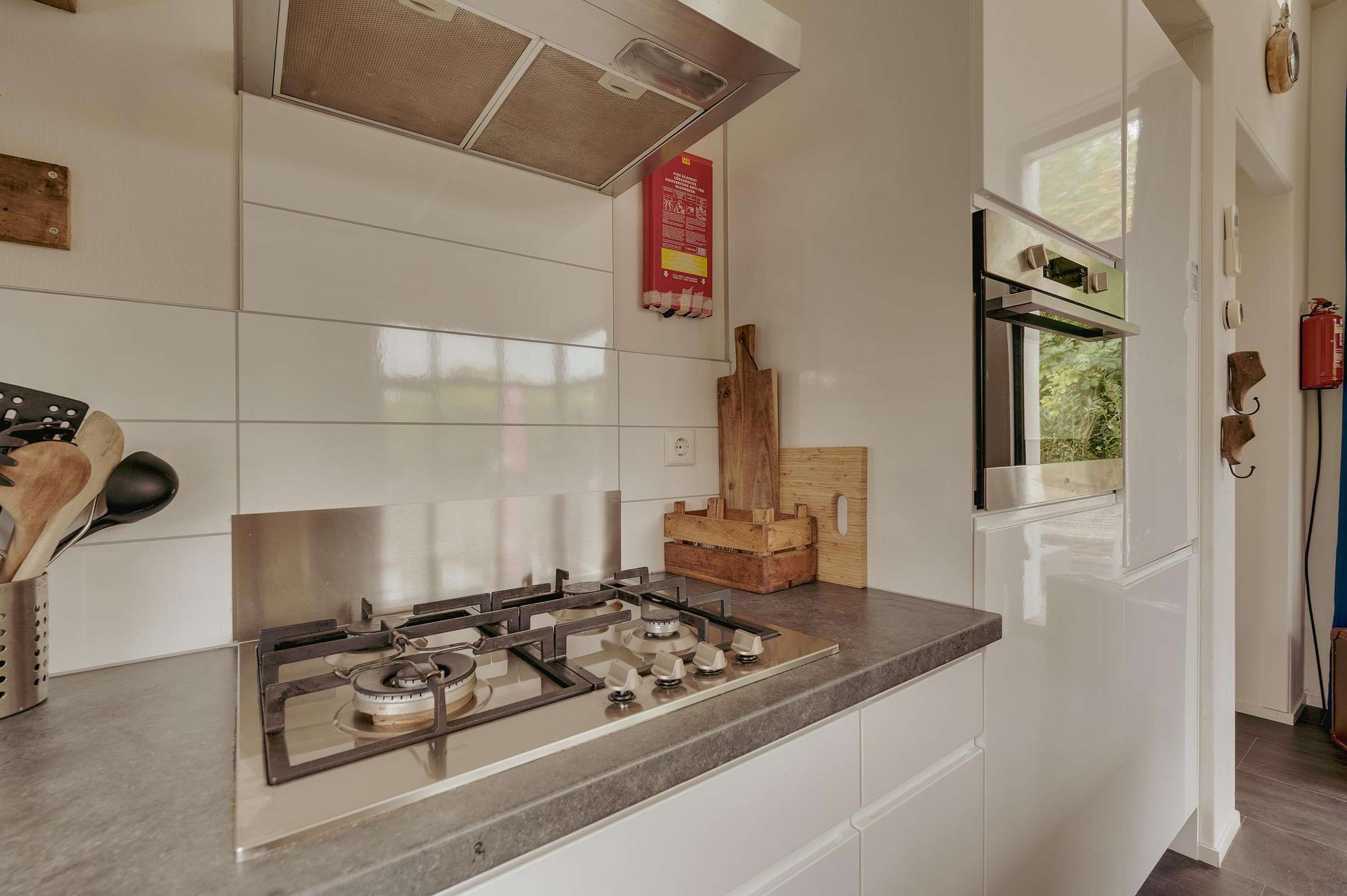 Bij binnenkomst komt u in een lichte woonkamer met grote raampartijen en openslaande naar het terras. De hoge ramen zorgen voor een ruimtelijk gevoel en veel lichtinval. Aansluitend bevindt zich de open keuken, voorzien van een moderne inrichting en alle basisgemakken om tijdens vakanties comfortabel te kunnen koken en tafelen.