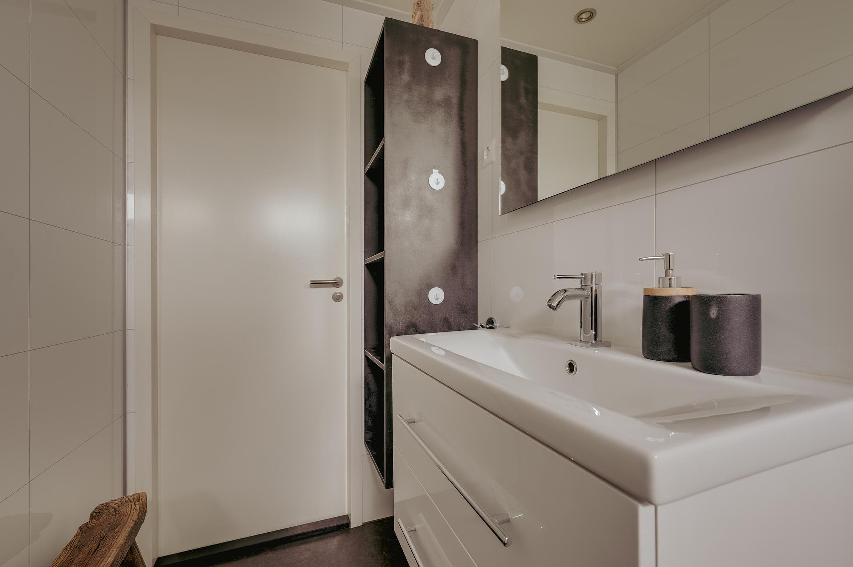 Verder beschikt het chalet over drie slaapkamers en een badkamer met douche en wastafel. Ook is er een apart toilet aanwezig.