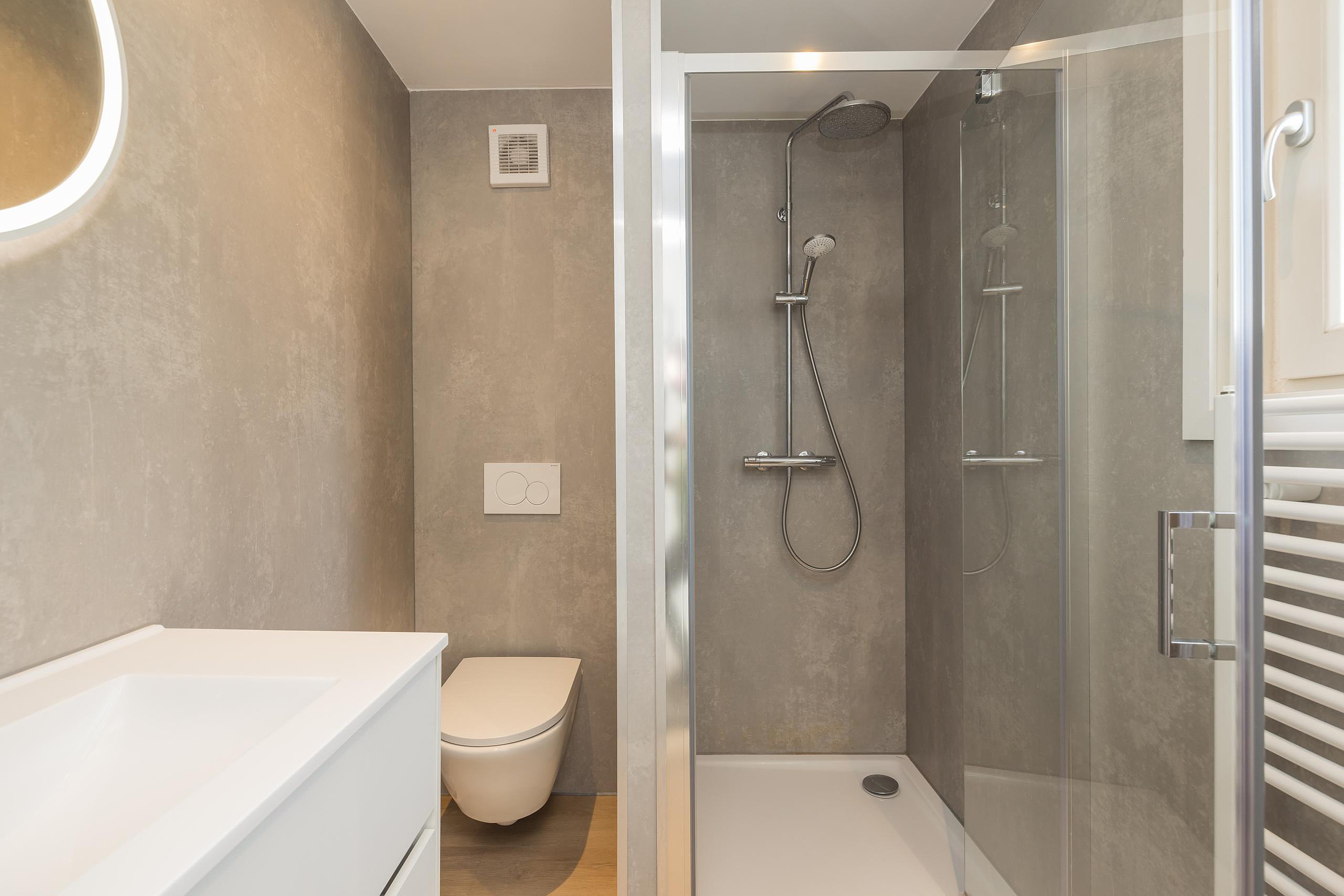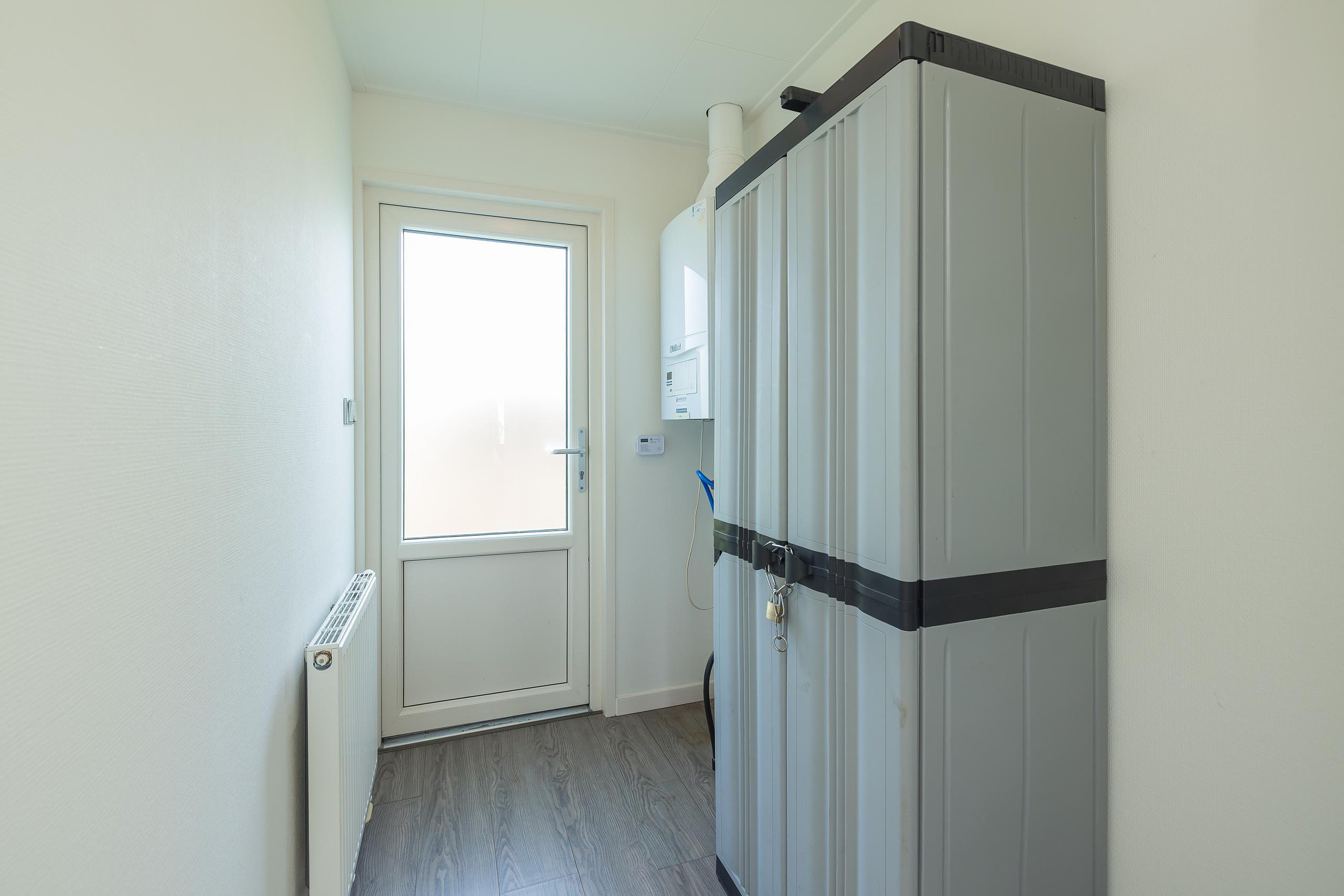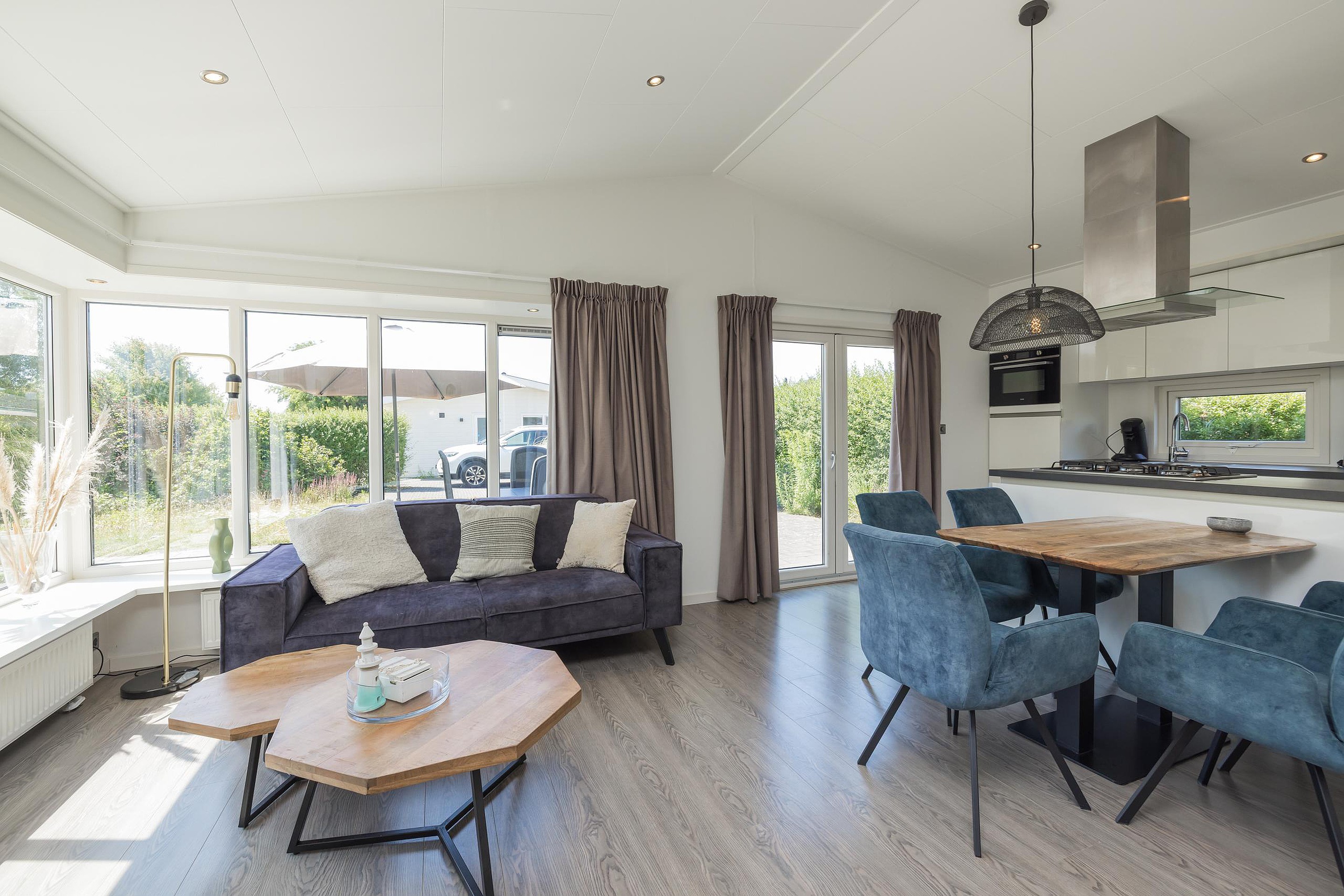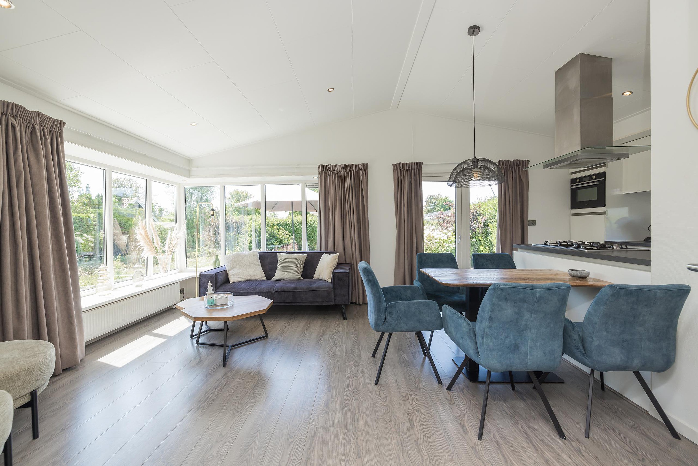 De bungalow is voorzien van een laminaatvloer en ingebouwde verlichting;