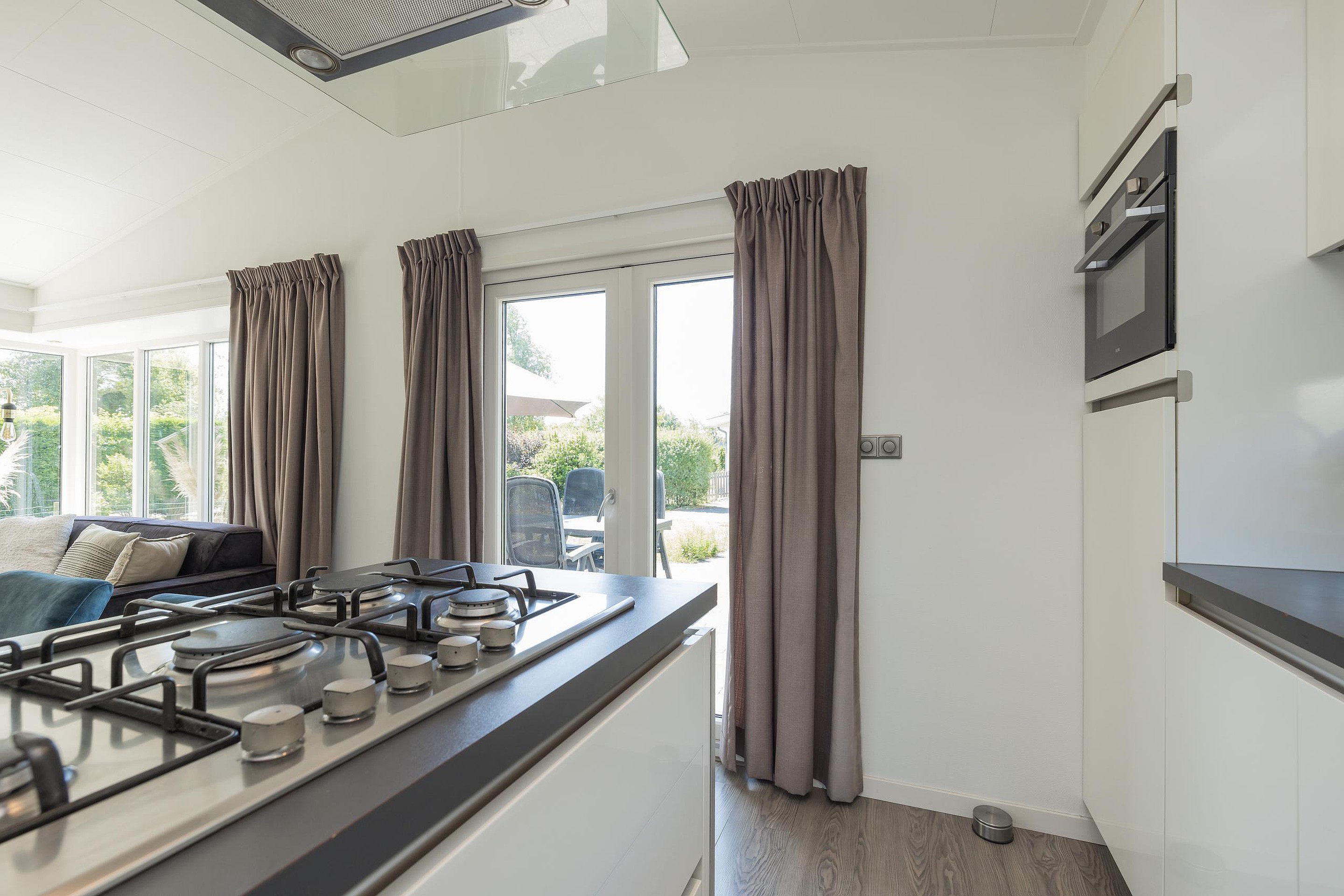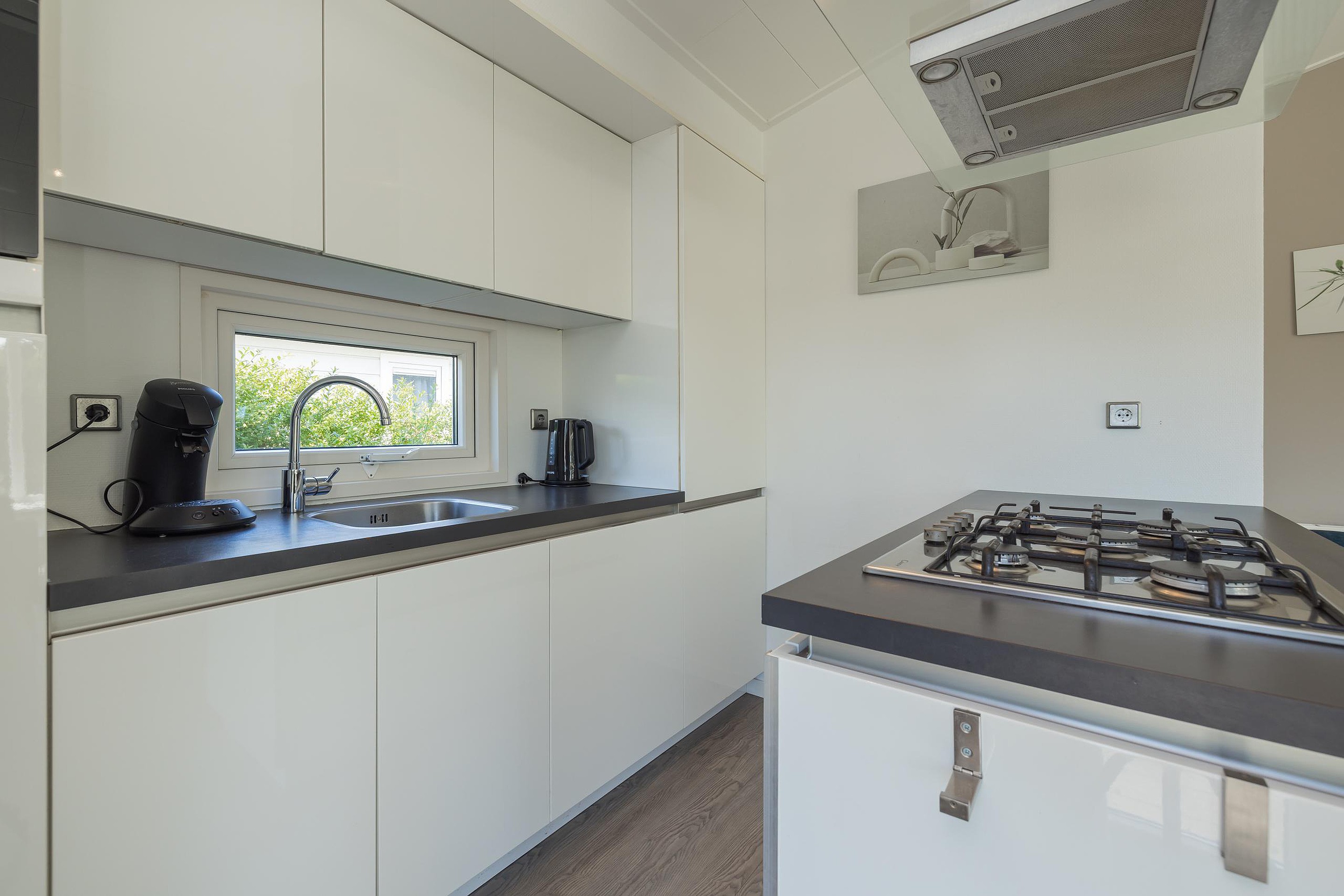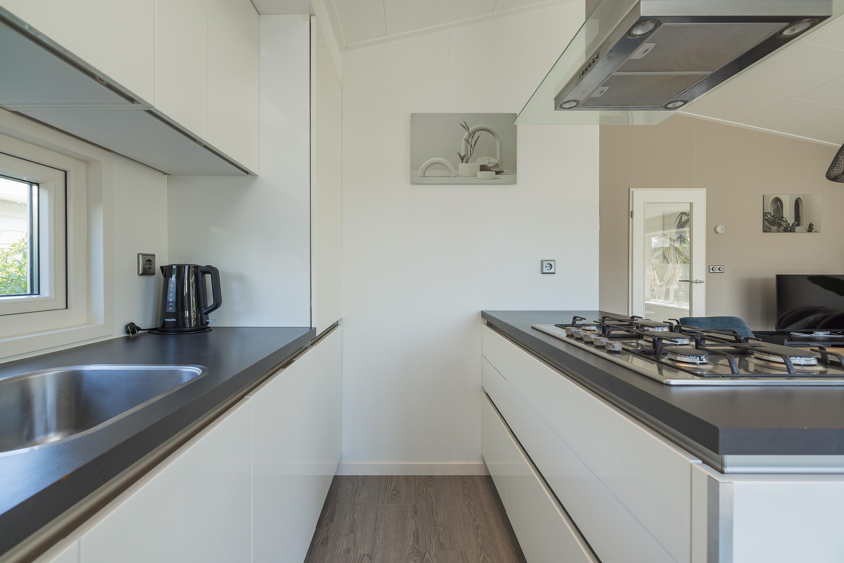 De keuken in deze bungalow is luxer uitgevoerd;