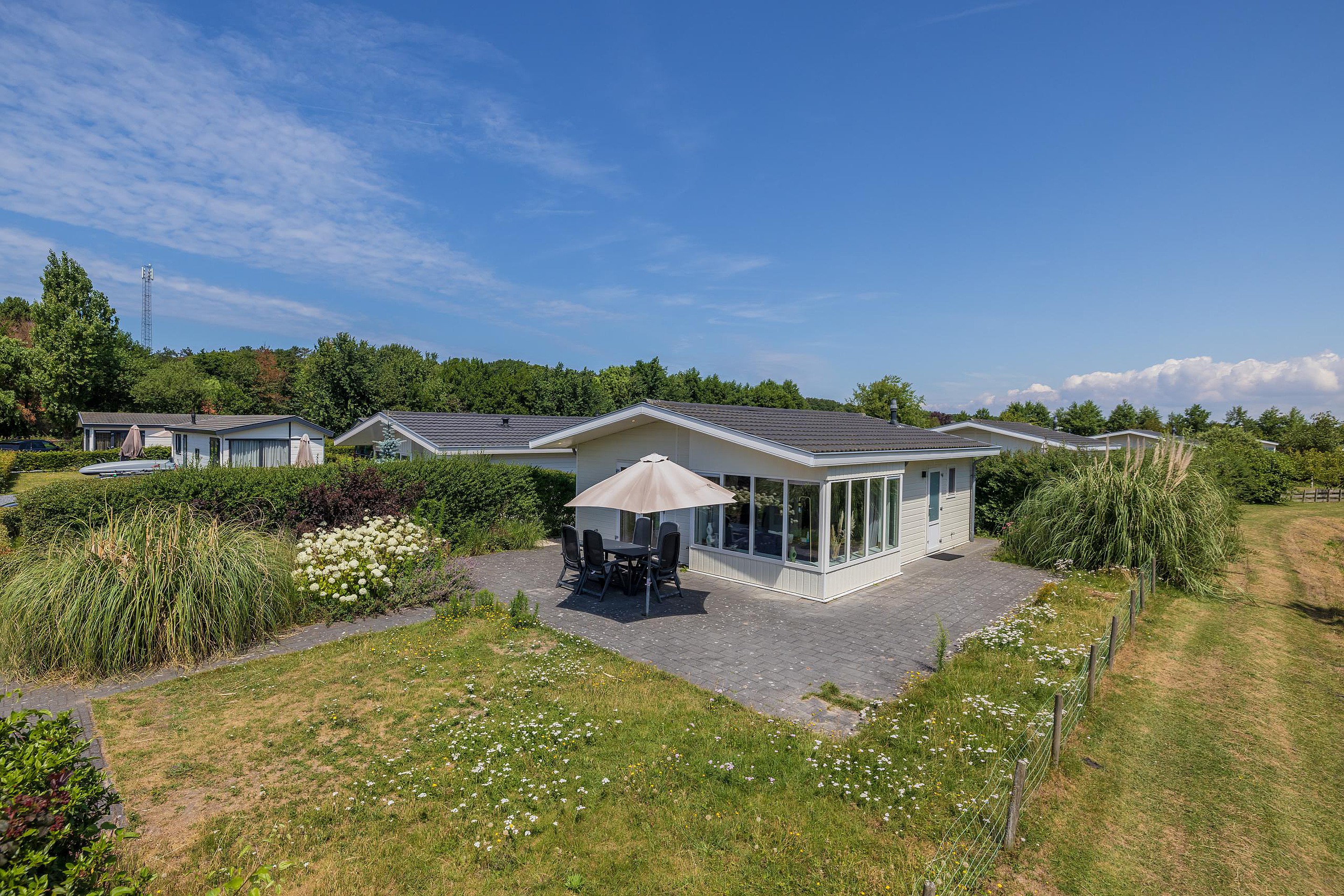 De bungalow is volledig voorzien van kunststof kozijnen;