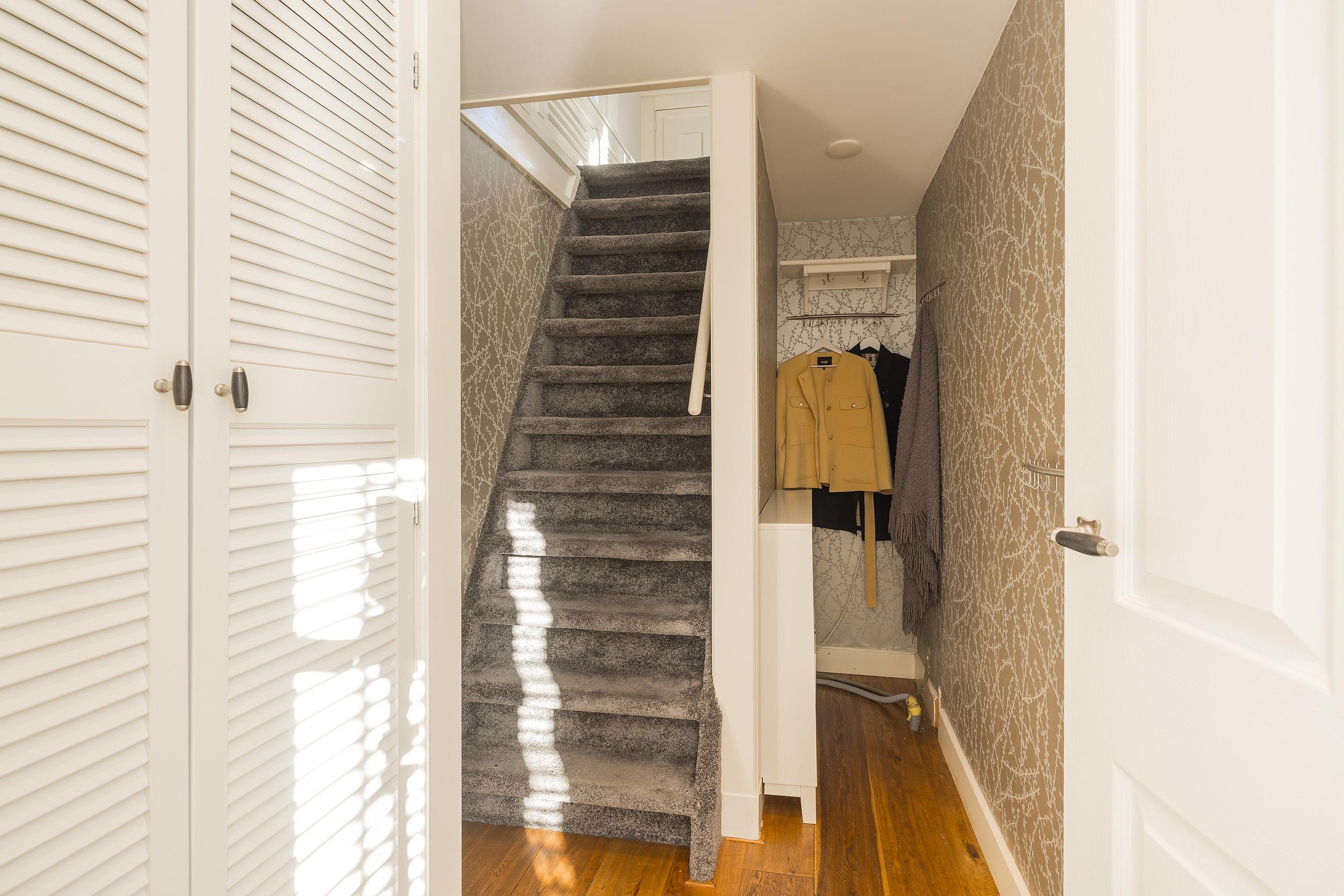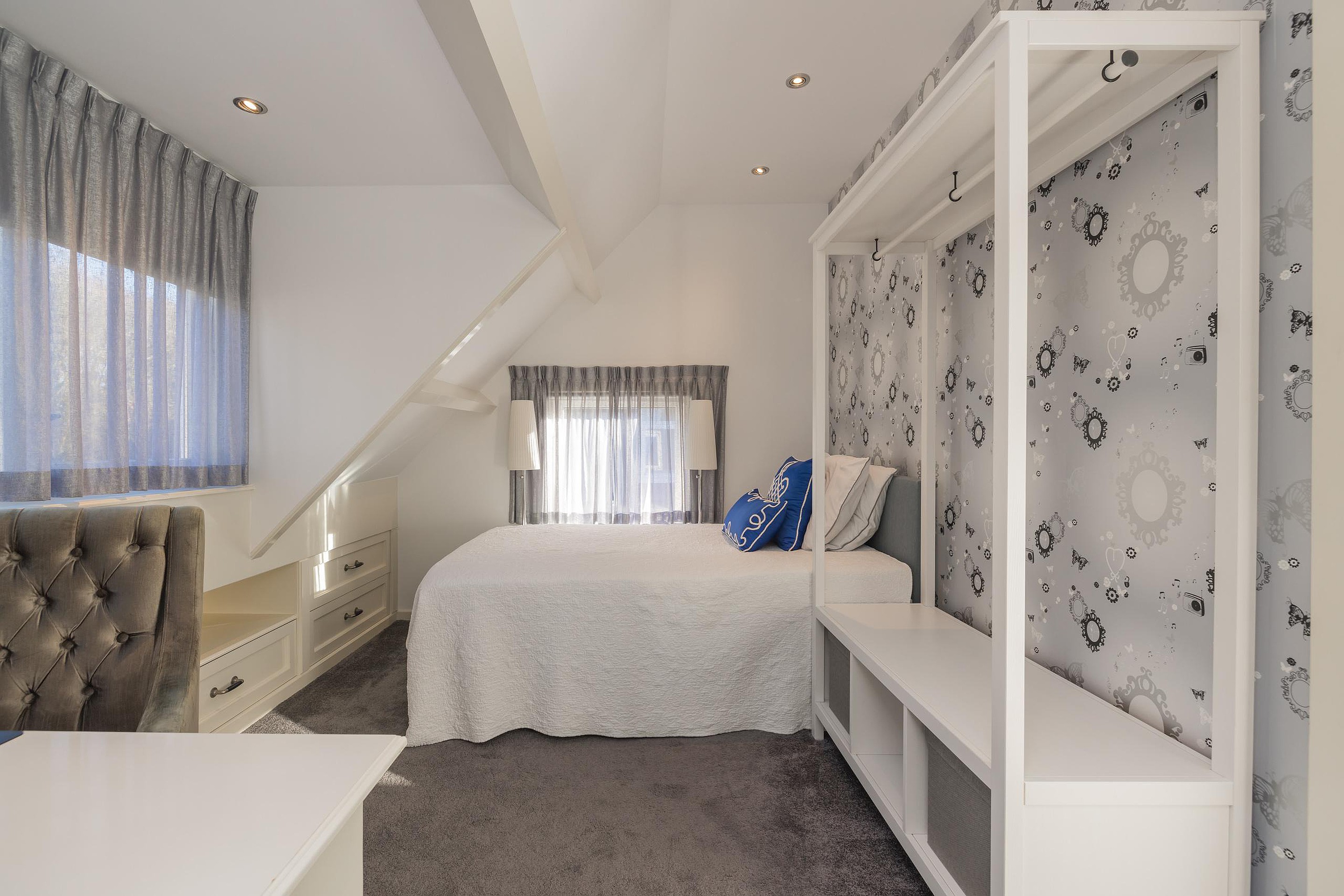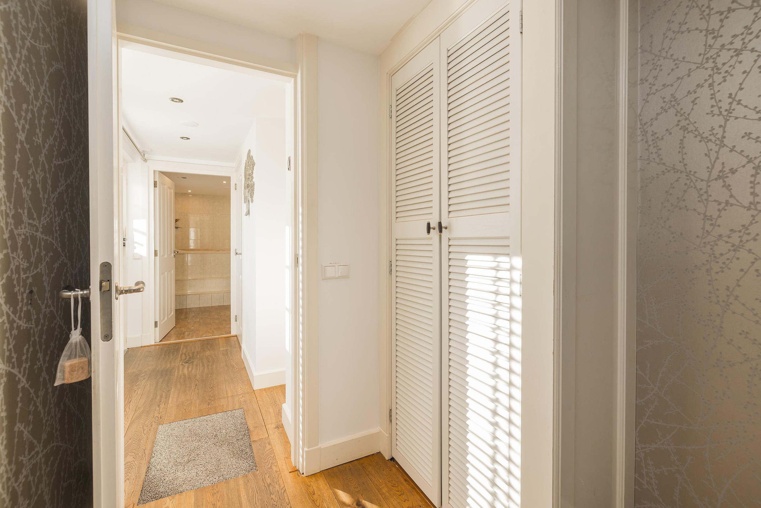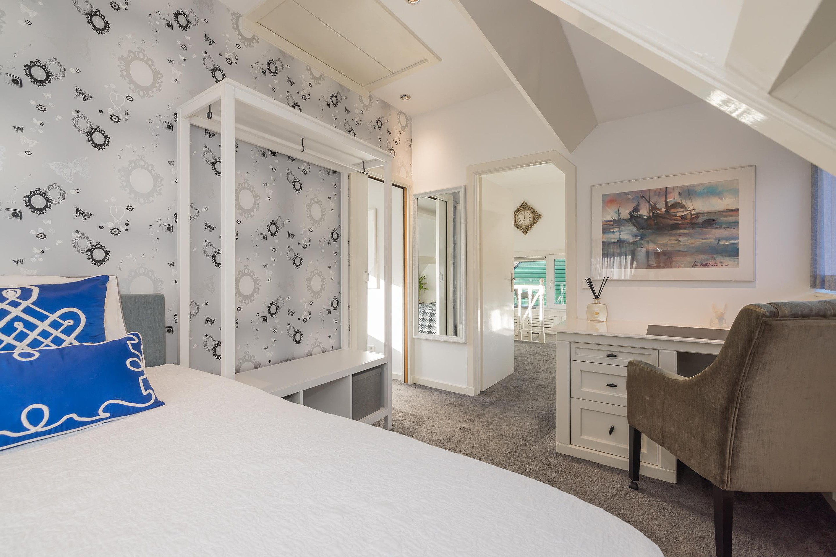 In de tweede hal is de garderobe en keurig weggewerkt in een kast de cv-ketel (Intergas 2010). Via de trap is de eerste verdieping te bereiken en ook hier kijkt u echt uw ogen uit! De eerste slaapkamer heeft aan de voor- en de achterzijde een dakkapel en zowel de kastruimte als het bureau zijn op maat gemaakt, vanuit het dakkapel aan de voorzijde heeft u vrij uitzicht over het voor de woning gelegen veldje. Ook de tweede slaapkamer is een plaatje en ook hier is de kastruimte en het bureau op maat gemaakt, via deze kamer is de bergruimte in de nok bereikbaar. Tenslotte de derde en aangenaam lichte slaapkamer en ik val in herhaling want ook in deze kamer is alles op maat gemaakt. Ook vanuit deze kamer heeft u uitzicht over het naast de woning gelegen veldje.