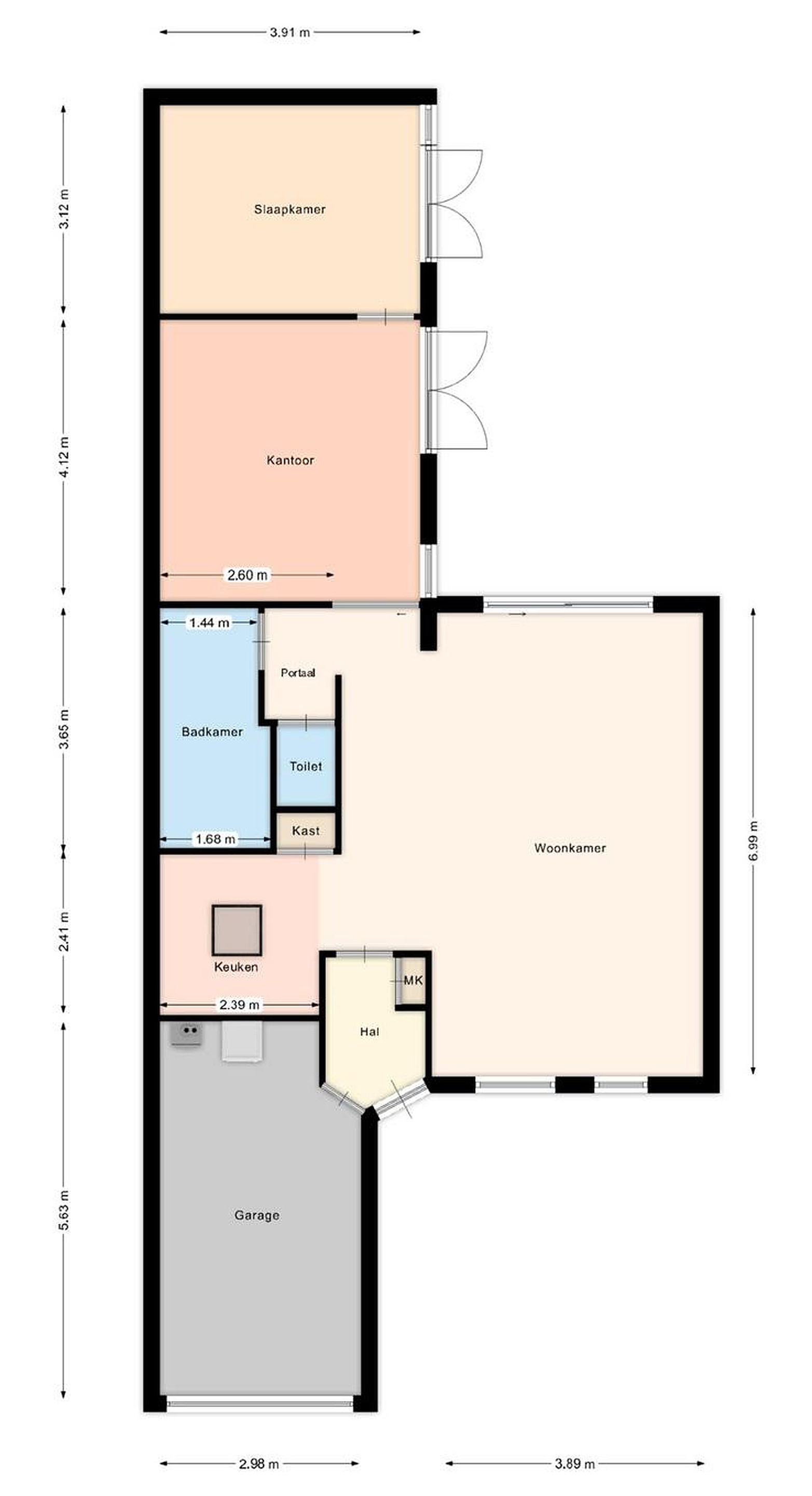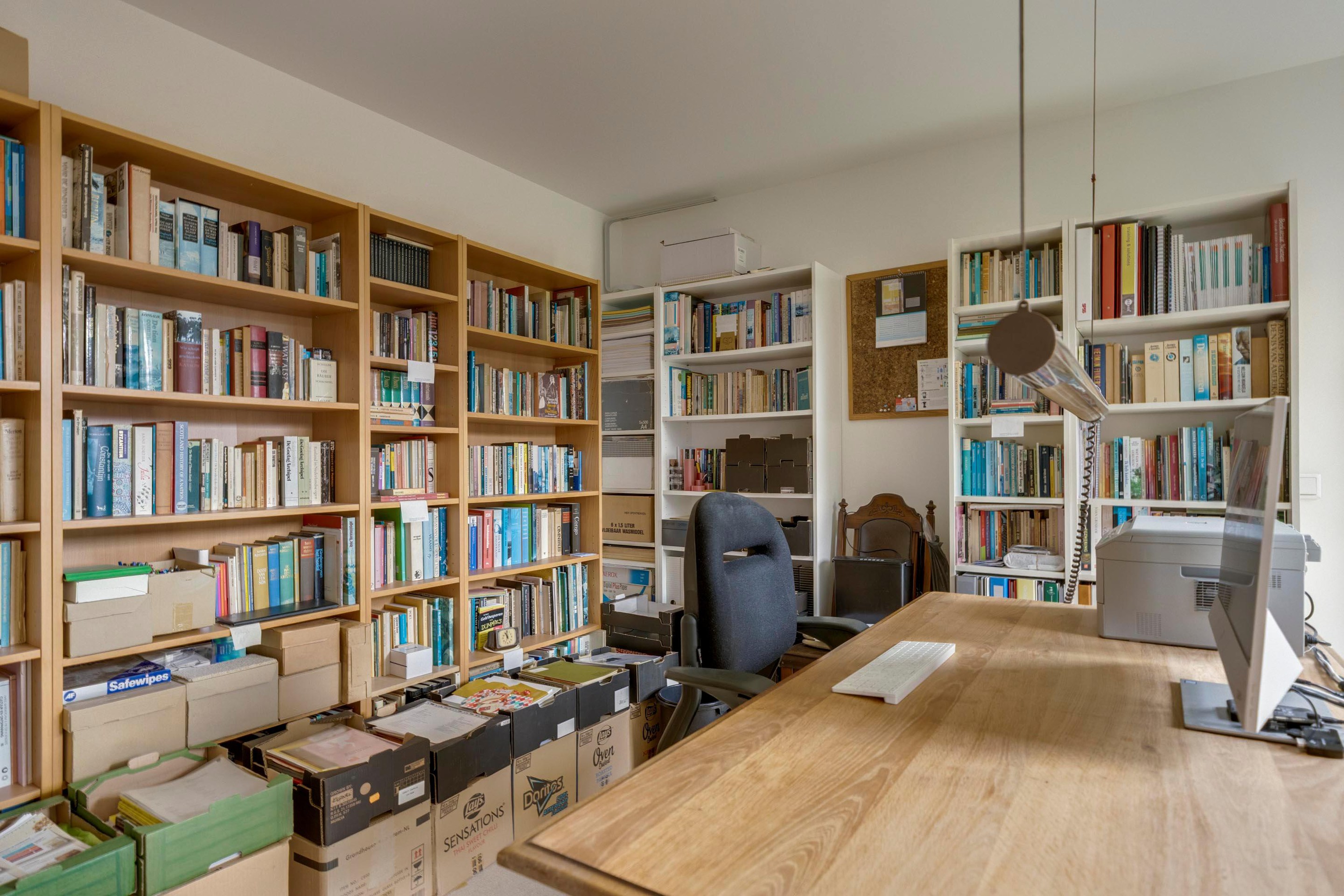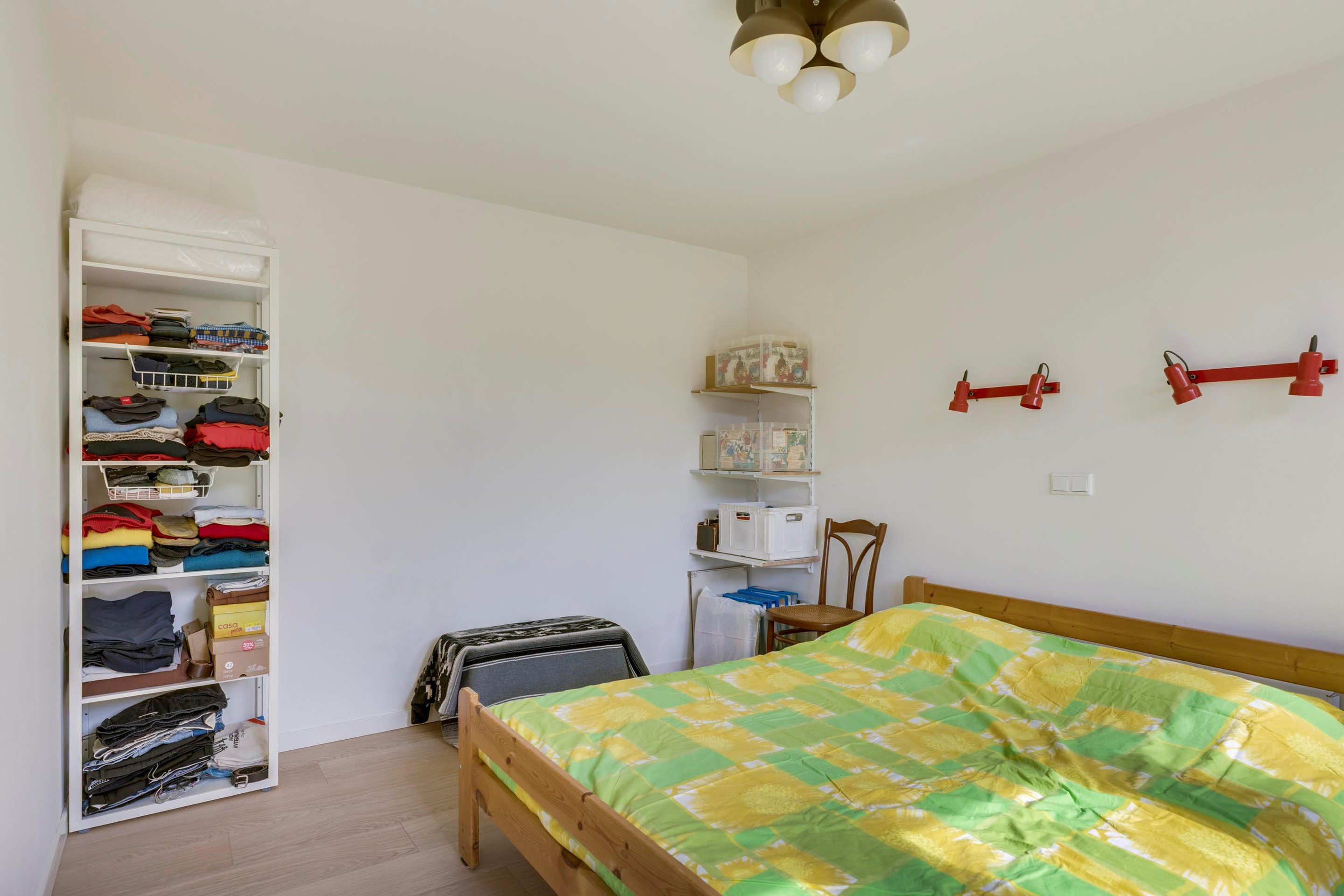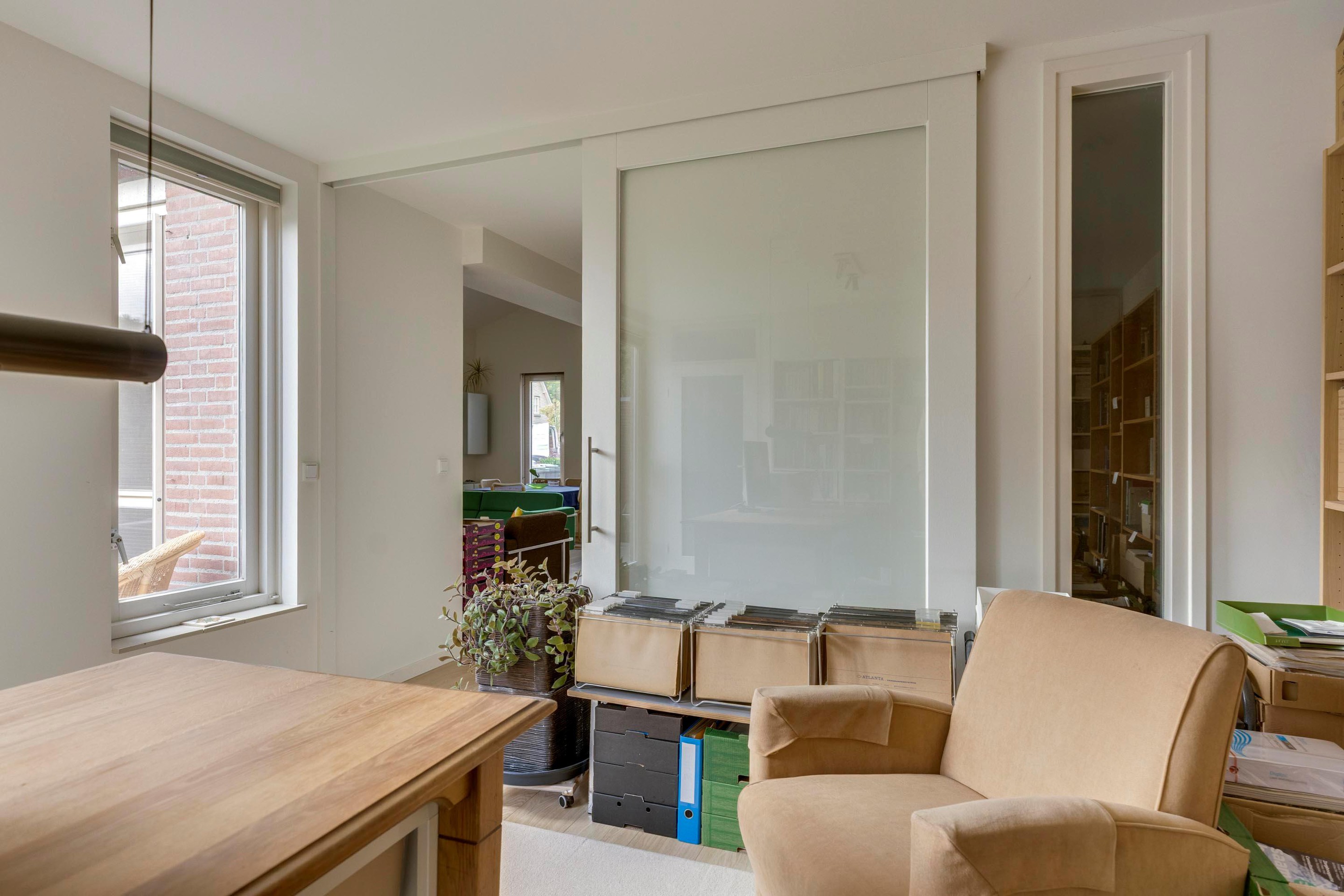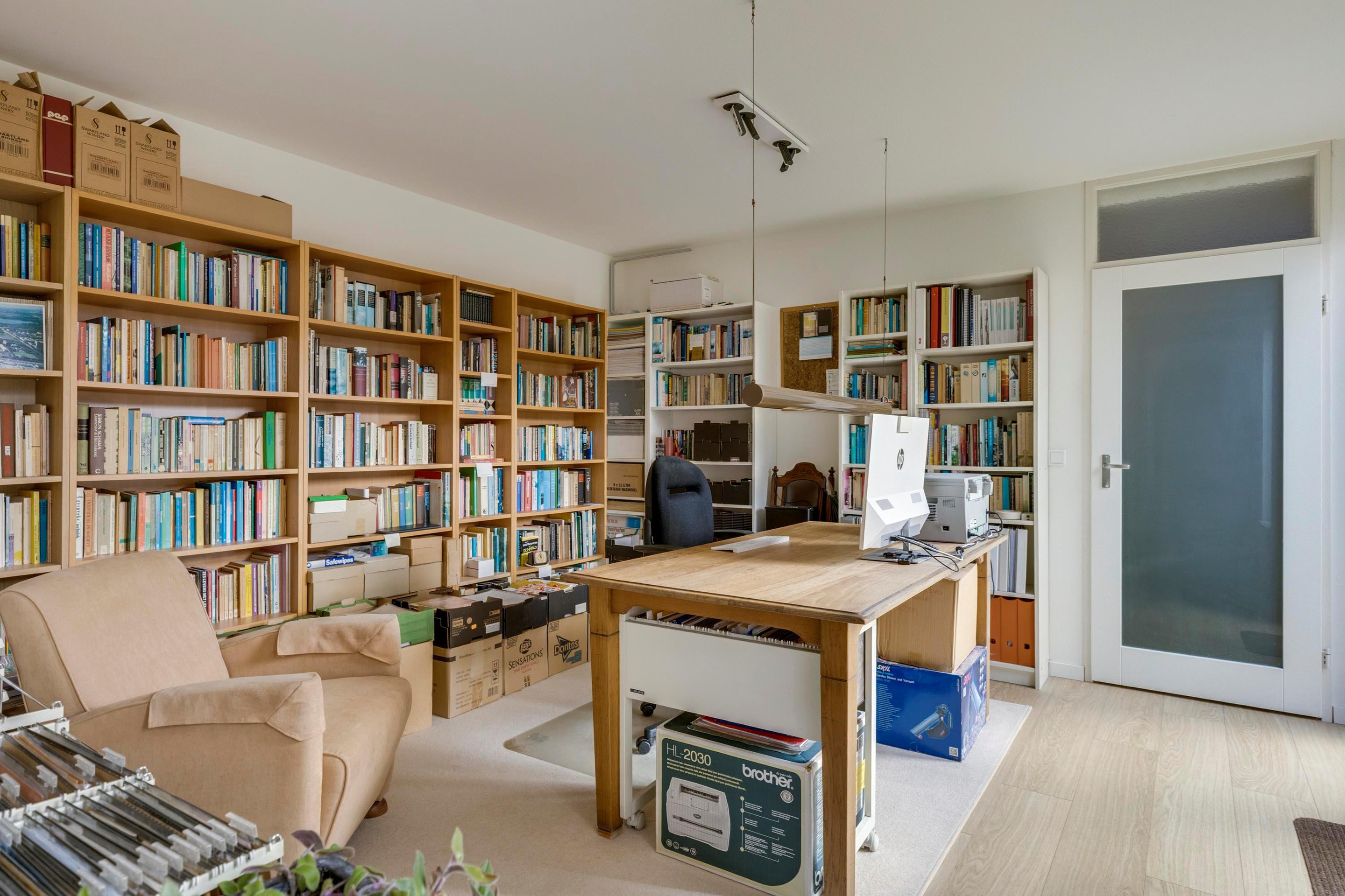 Via een schuifdeur bereikt u de werkkamer, die dankzij de openslaande tuindeuren een fijne verbinding met buiten heeft. Uiteraard kan deze kamer ook dienst doen als slaapkamer.