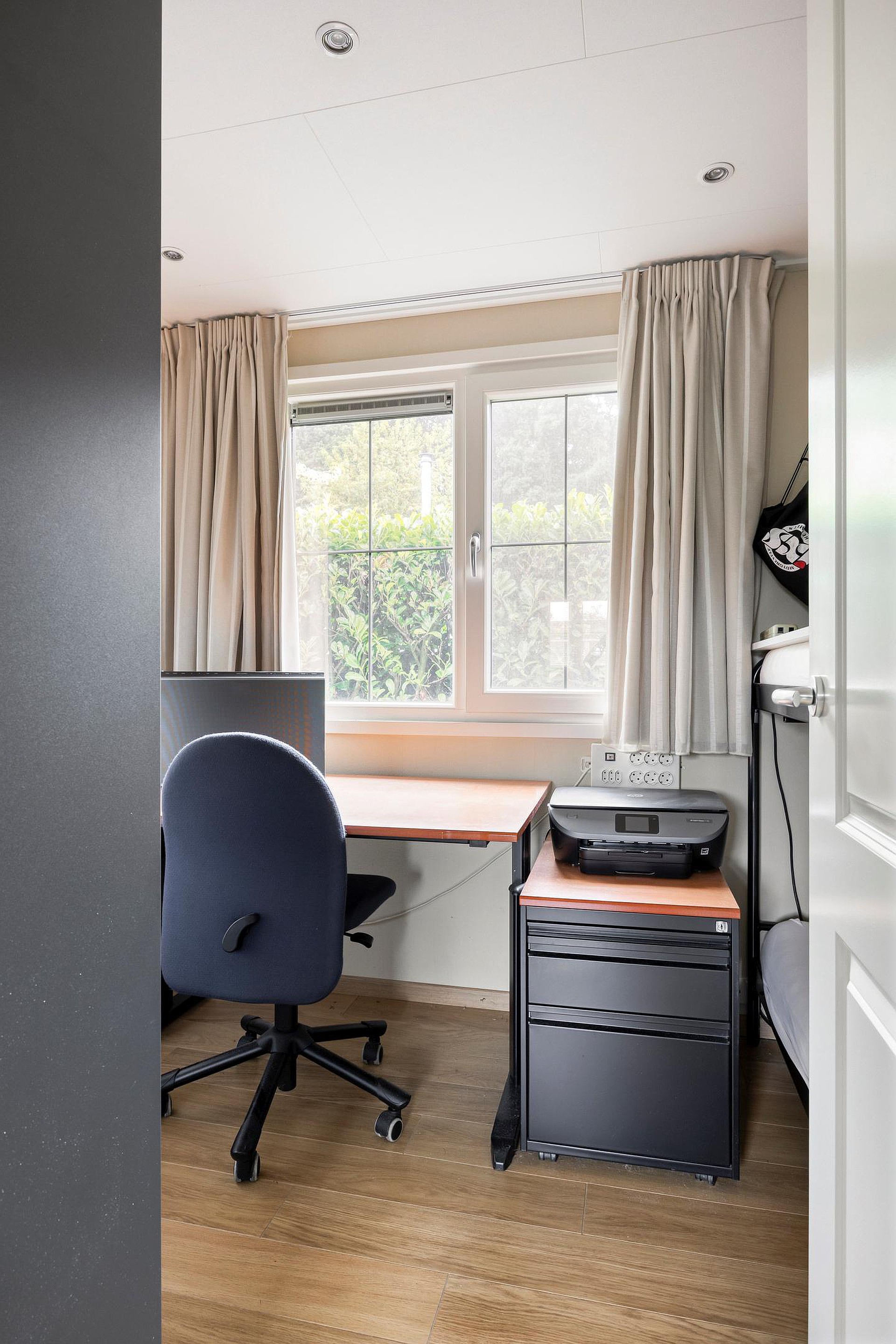 Of je nu een escaperoom zoekt voor in het weekend, een plek voor de schoolvakanties, of juist een retraite wilt in alle seizoenen: deze vrijstaande bungalow biedt alles wat een recreant verlangen kan. De bouwstijl is praktisch en aantrekkelijk; binnen stap je in een lichte woonkamer met open keuken, die uitkijkt op het eigen gazon en het weidse groen daarachter.