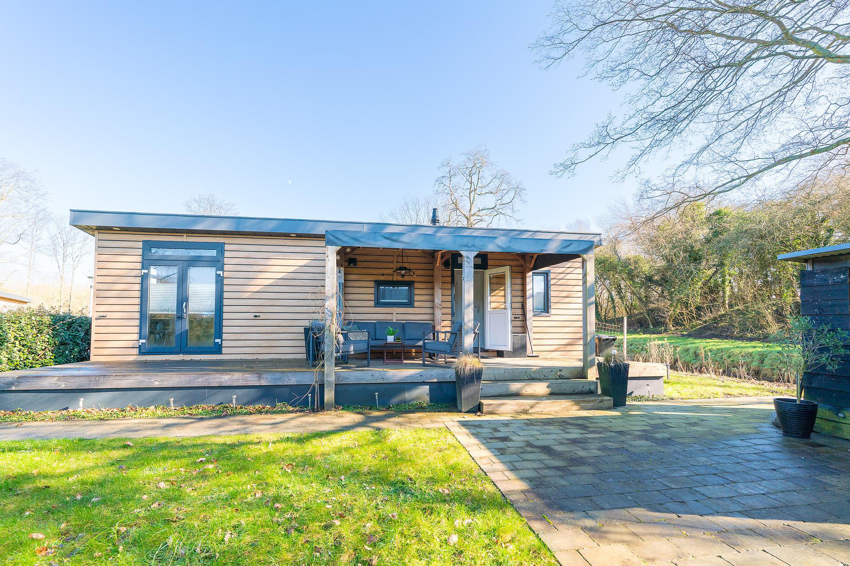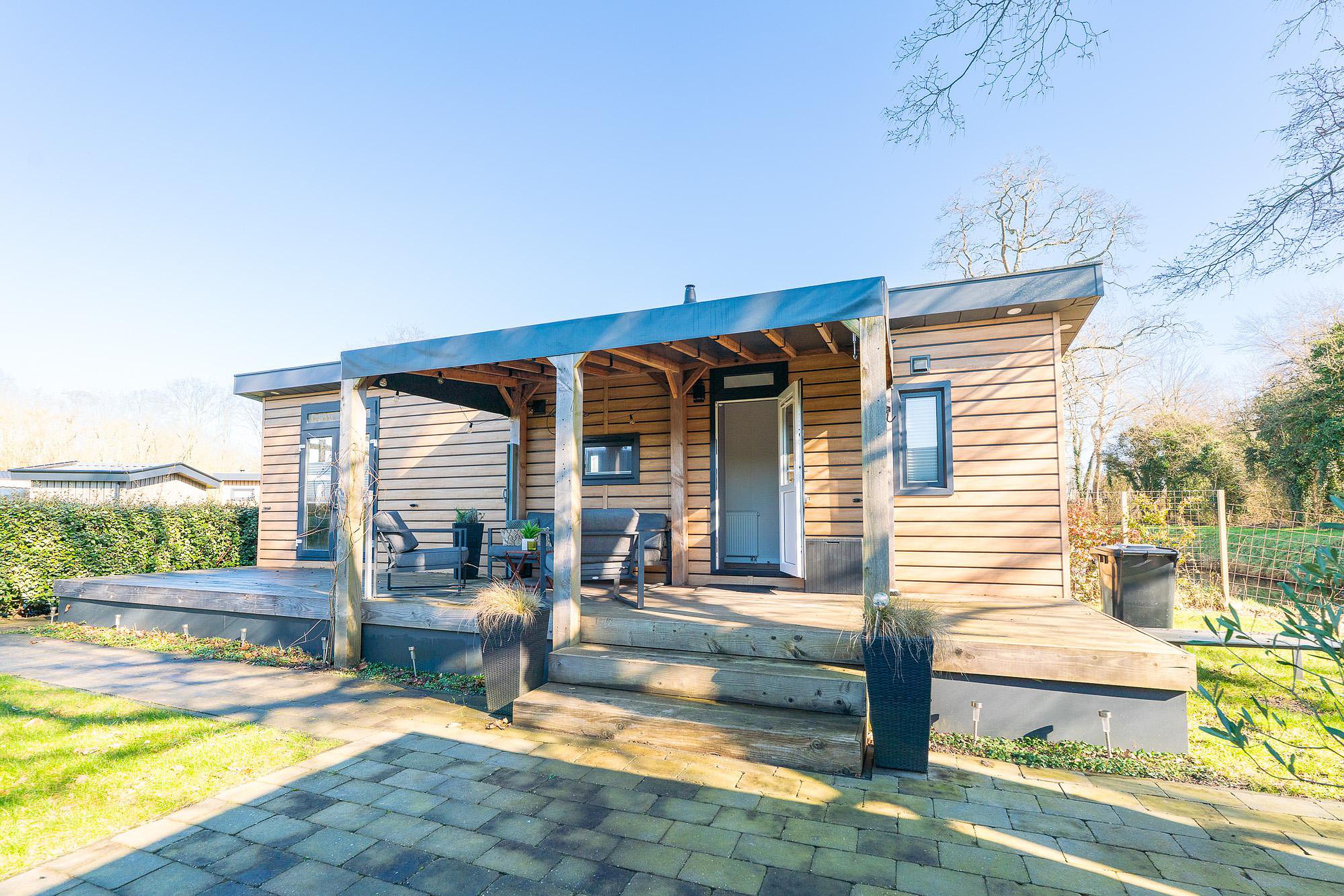 Dit moderne recreatiechalet heeft een woonoppervlakte van circa 40,5 m2 en is slim ingedeeld om elke vierkante meter optimaal te benutten. De buitenmaten van de chalet zijn 11 x 4 meter. De lichte kleurstellingen en de vele raampartijen zorgen voor een ruimtelijk gevoel en een prettige verbinding met de omliggende tuin. Een van de absolute kwaliteiten van dit object is het terras over de volledige breedte van de chalet waarvan 12 m2 overdekt. Dit fungeert als een verlengstuk van uw woonkamer, waardoor u ook tijdens een zomerse regenbui of op koelere avonden heerlijk buiten kunt verblijven.