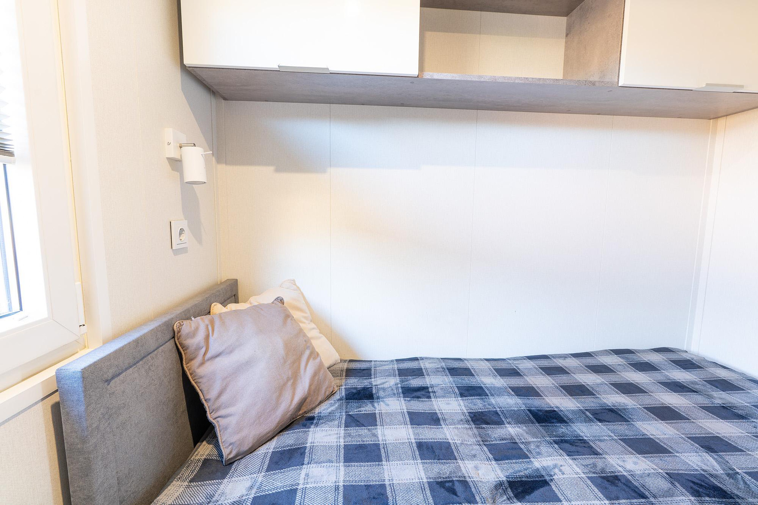 - Slaapkamers: 2 kamers met slimme opbergoplossingen boven de bedden.