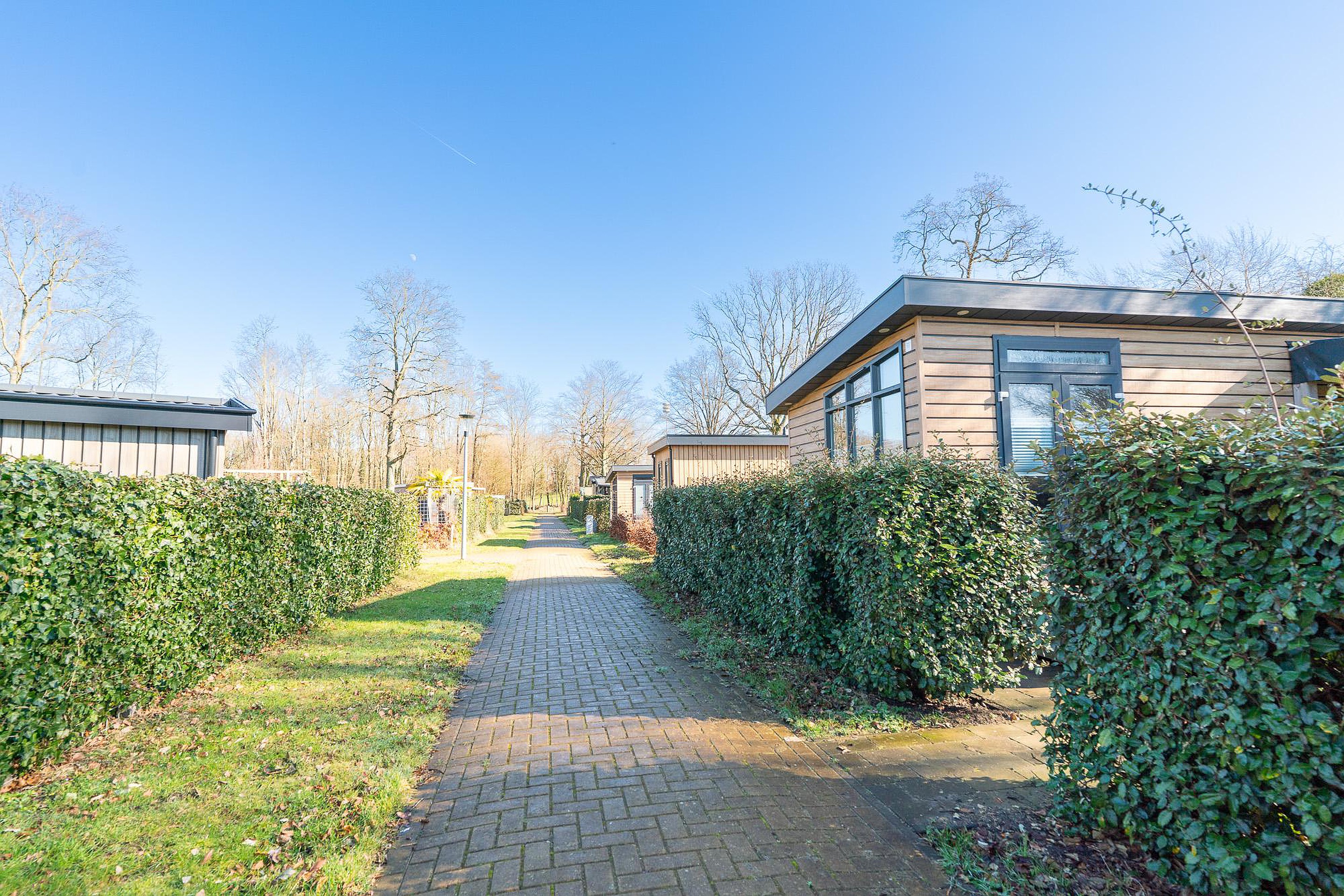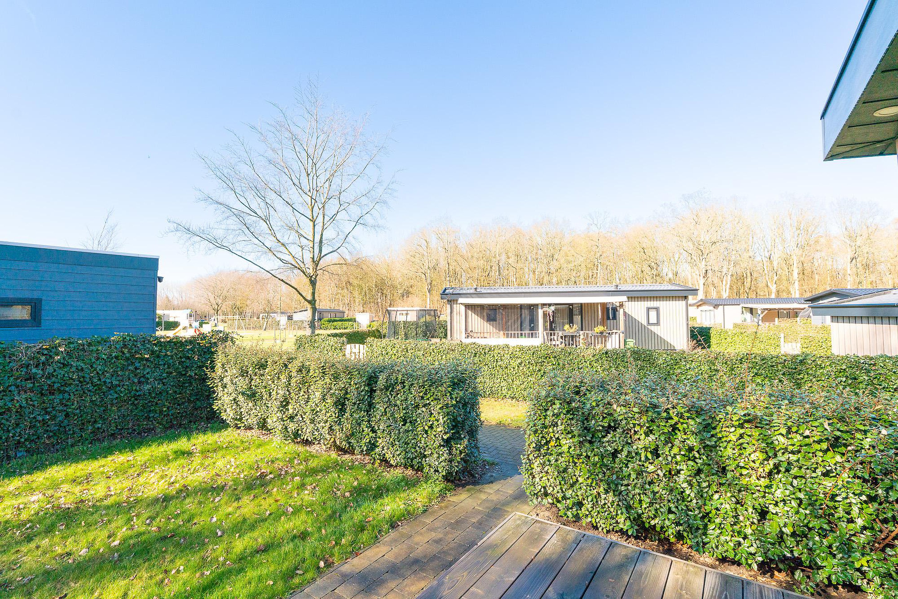De ligging op het park is zeer gunstig te noemen. Het chalet bevindt zich op een zonnige plek, waardoor u de hele dag door van de zon kunt genieten. Bovendien ligt de kavel op korte afstand van een kleinschalige parkeervoorziening, wat het in- en uitladen van uw bagage zeer eenvoudig maakt. Voor de jongere bezoekers zijn er speelmogelijkheden in de directe nabijheid, terwijl u op uw eigen perceel geniet van volledige privacy dankzij de zorgvuldig aangelegde haag.