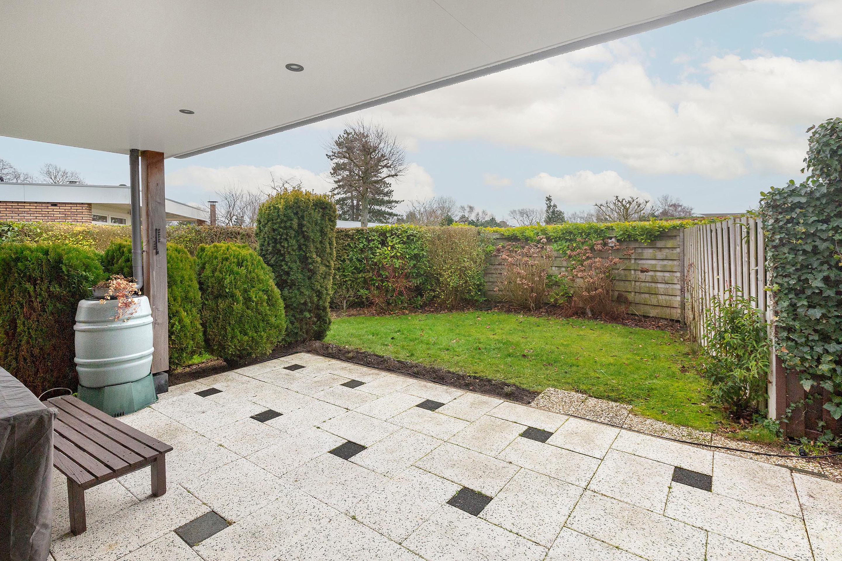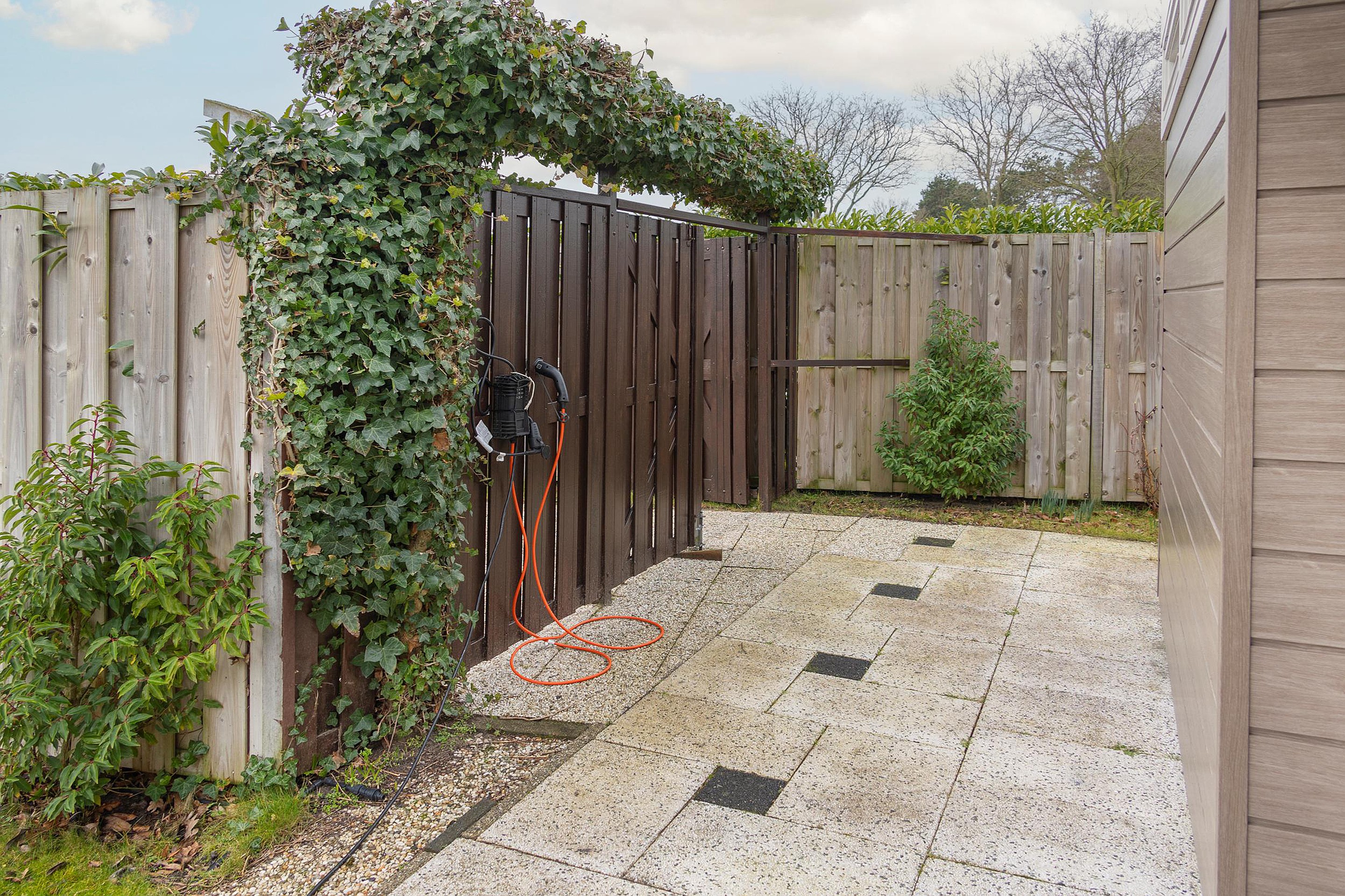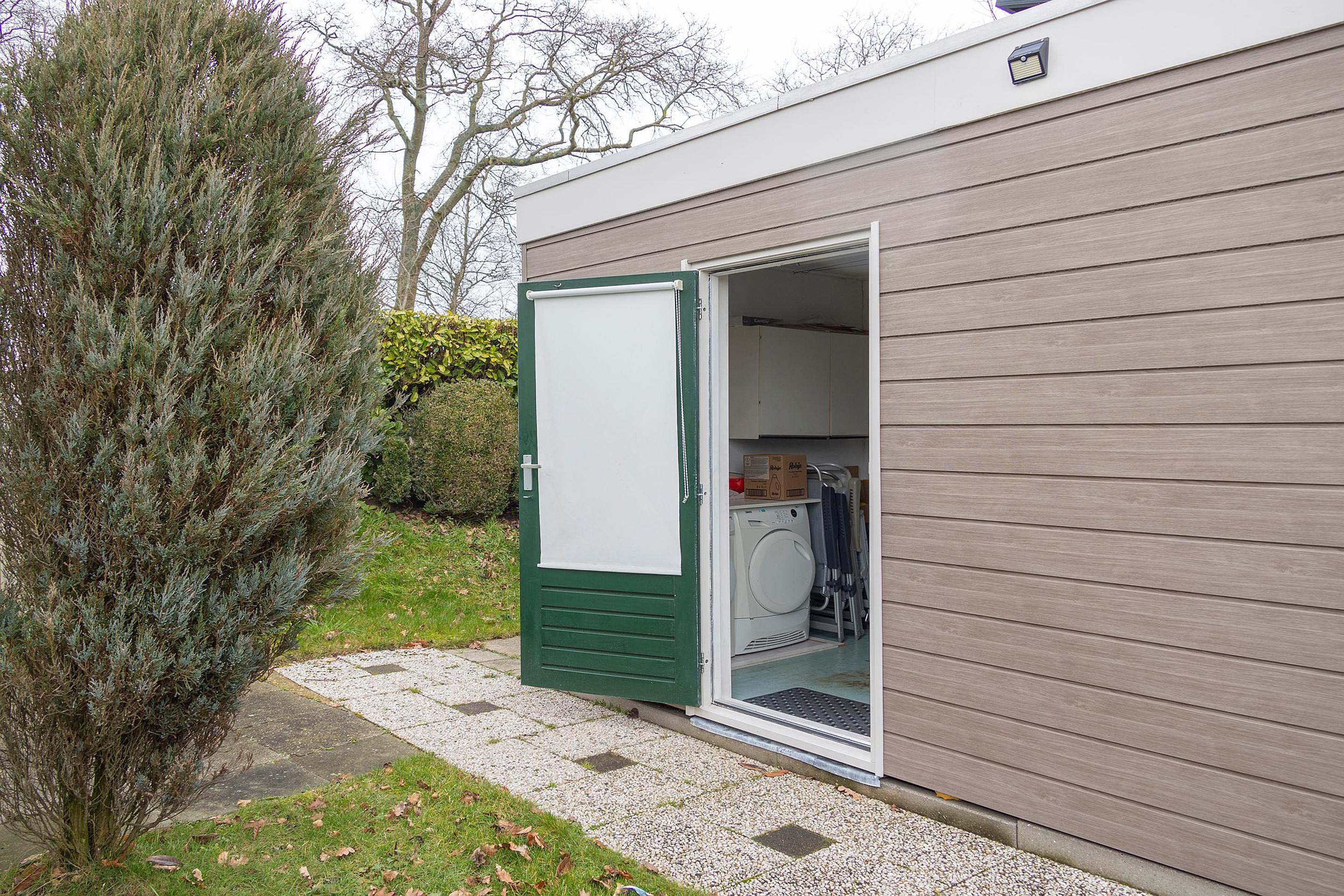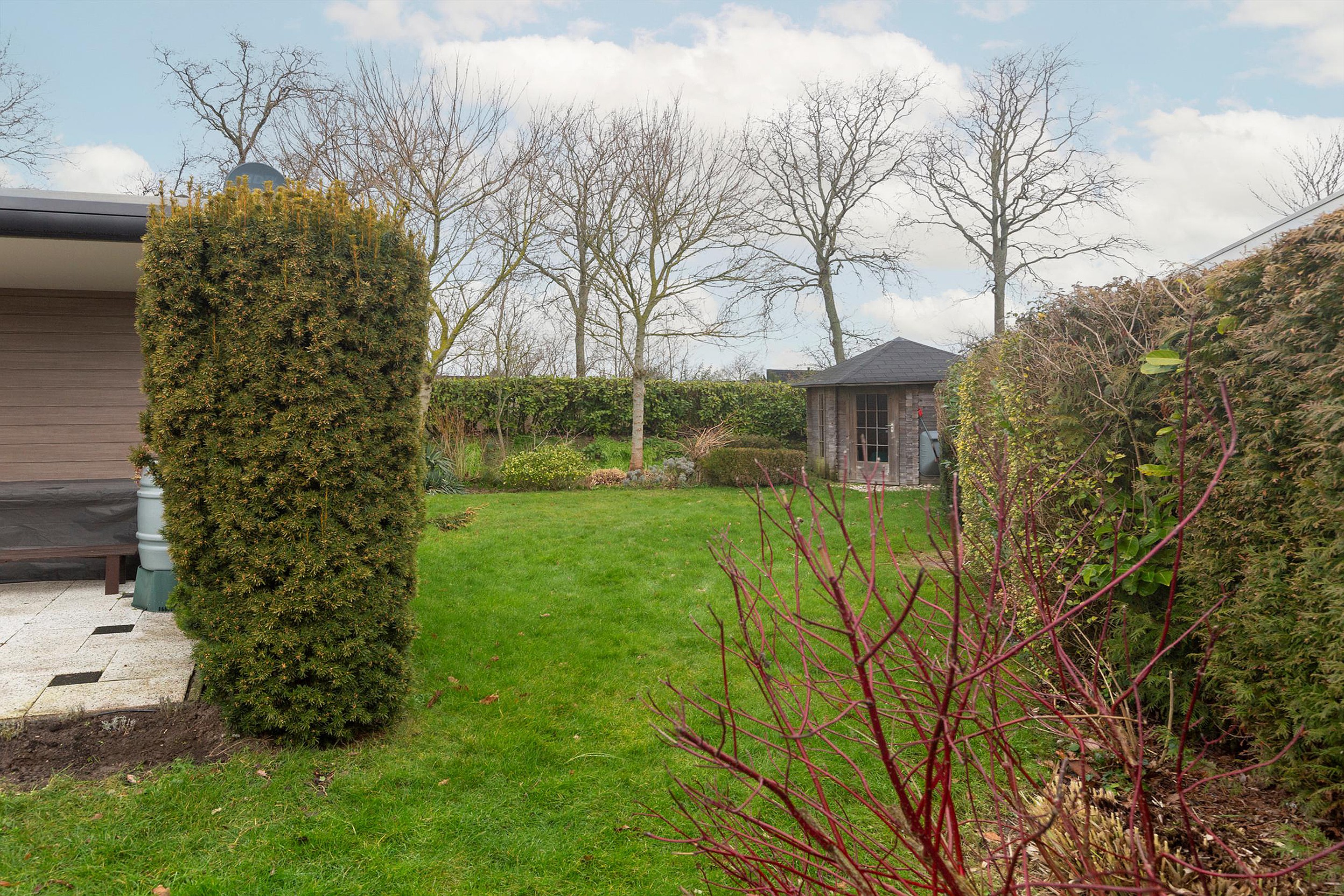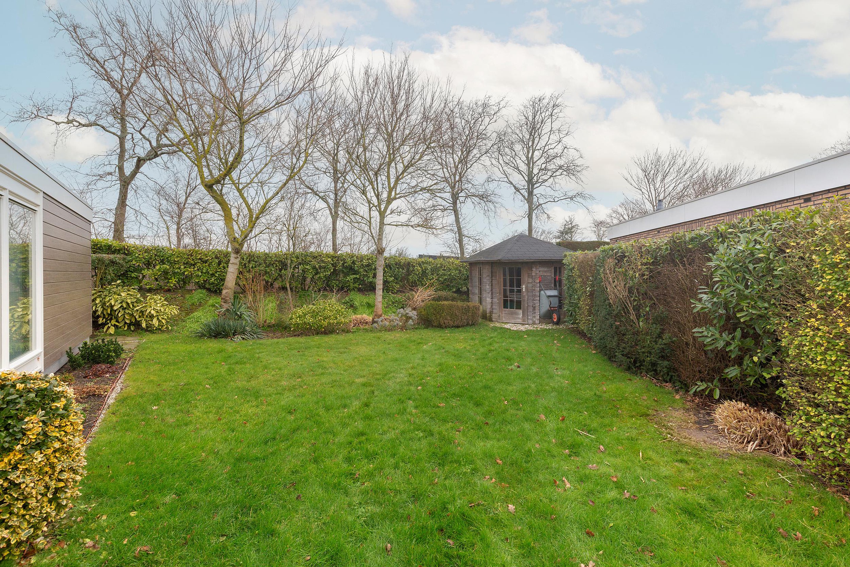 Tuin Via de openslaande deuren stapt u op het zonneterras, op het zuiden gericht. Dit zonneterras is voorzien van een groot elektrisch aangedreven zonnescherm. Door de situering op de kavel is er rondom de woning eigenlijk op ieder moment van de dag een zonnnige plek te vinden. De tuin is verzorgd en vooral voorzien van gazon. De inpandige berging is buitenom te bereiken, hier zijn de witgoedaansluitingen gesitueerd en is voldoende ruimte voor het stallen van uw fietsen. In de hoek van het perceel staat een vrijstaande, houten tuinberging.