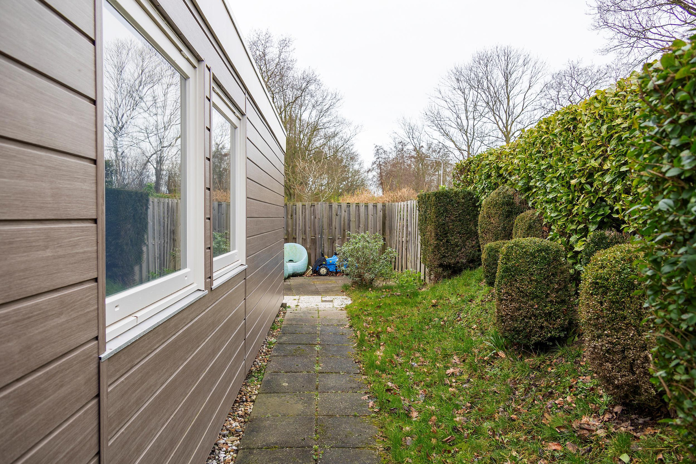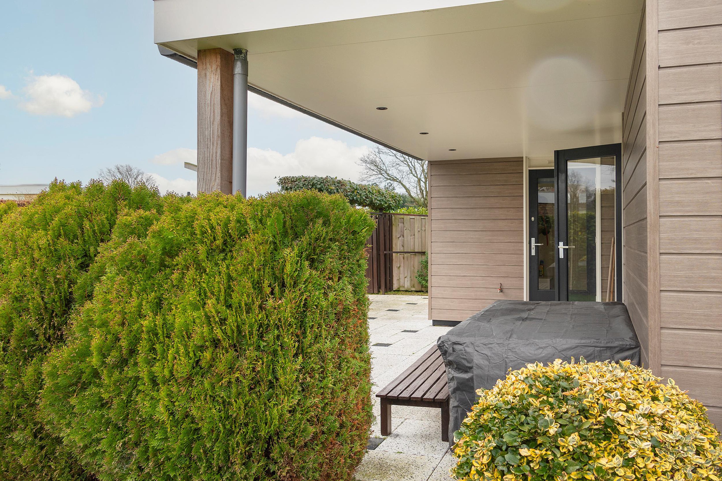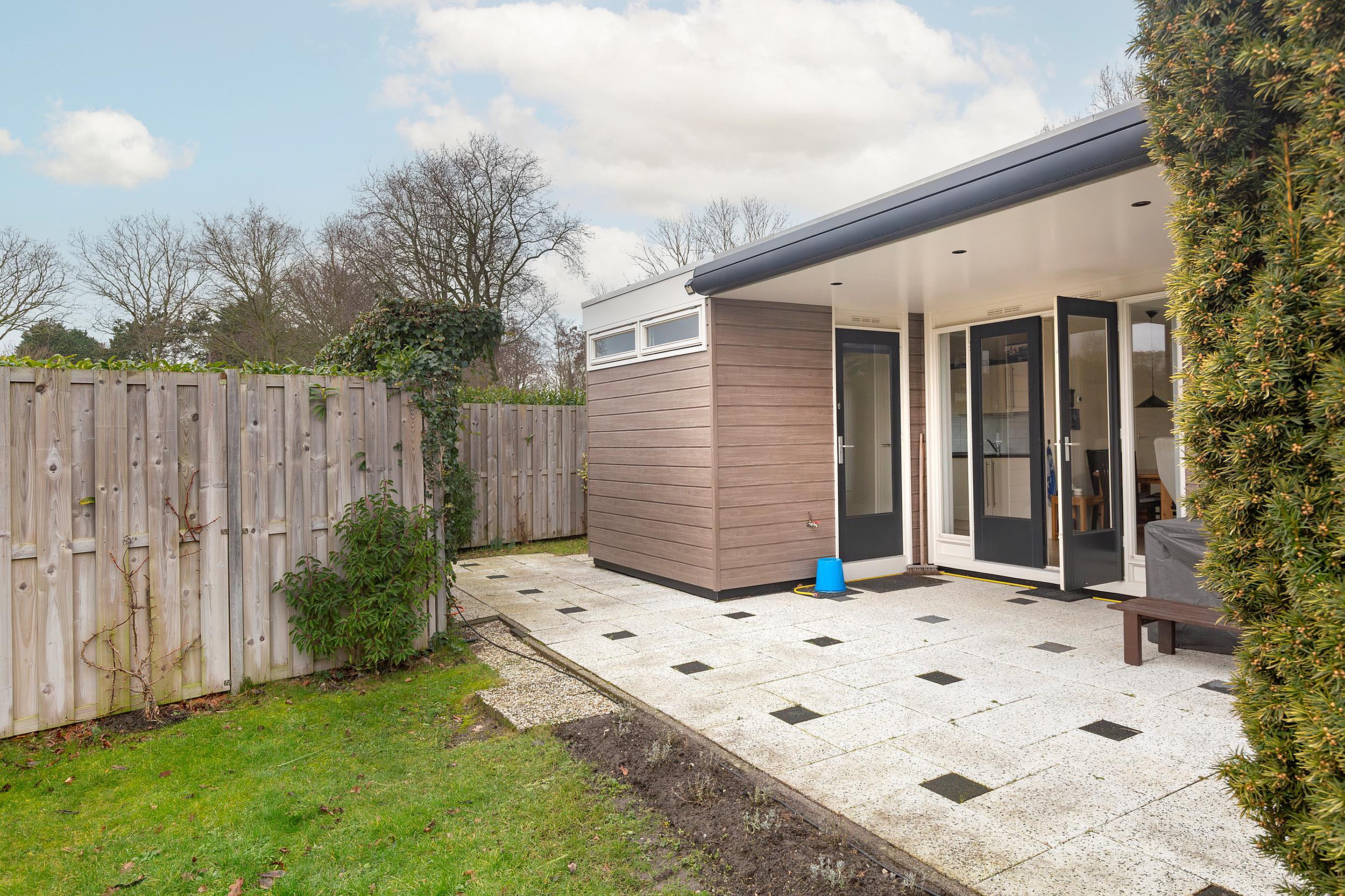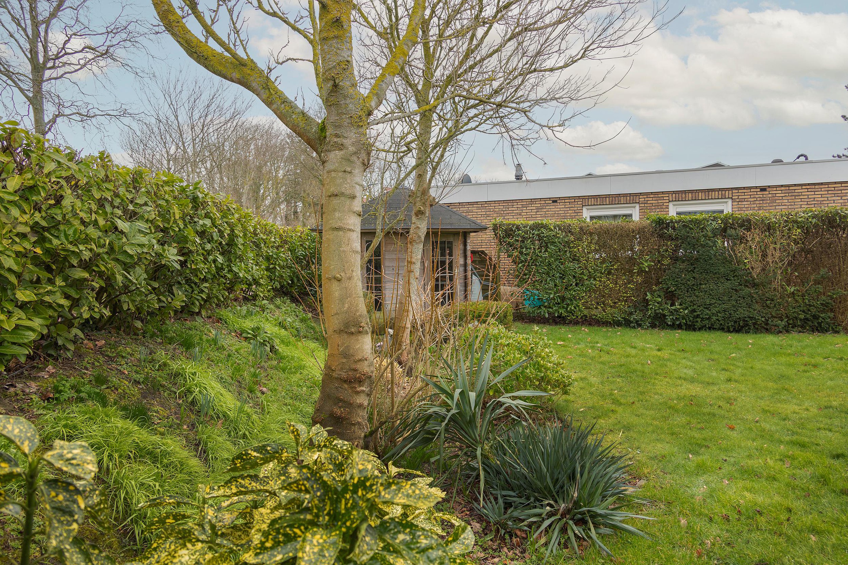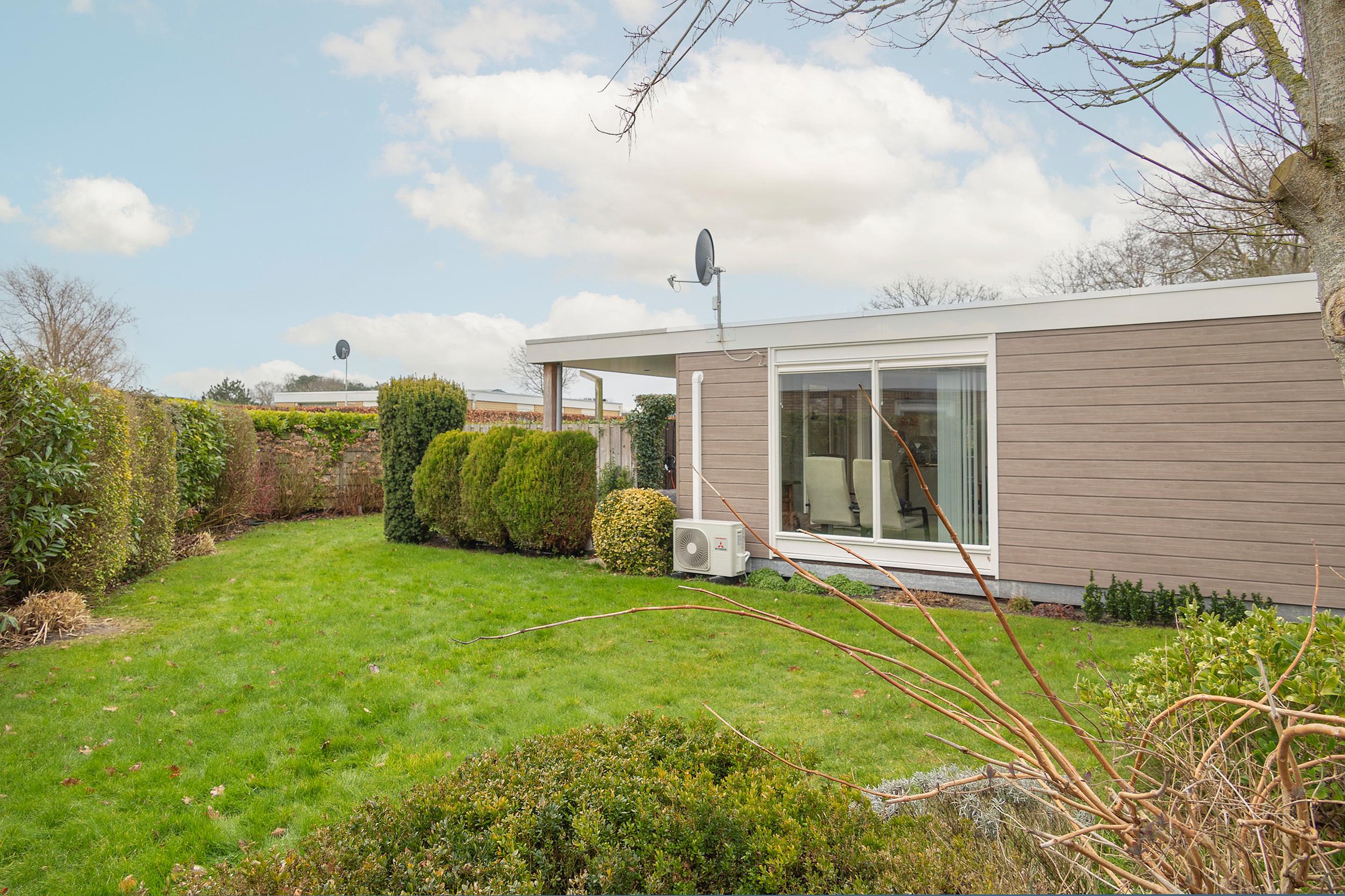 Tuin Via de openslaande deuren stapt u op het zonneterras, op het zuiden gericht. Dit zonneterras is voorzien van een groot elektrisch aangedreven zonnescherm. Door de situering op de kavel is er rondom de woning eigenlijk op ieder moment van de dag een zonnnige plek te vinden. De tuin is verzorgd en vooral voorzien van gazon. De inpandige berging is buitenom te bereiken, hier zijn de witgoedaansluitingen gesitueerd en is voldoende ruimte voor het stallen van uw fietsen. In de hoek van het perceel staat een vrijstaande, houten tuinberging.