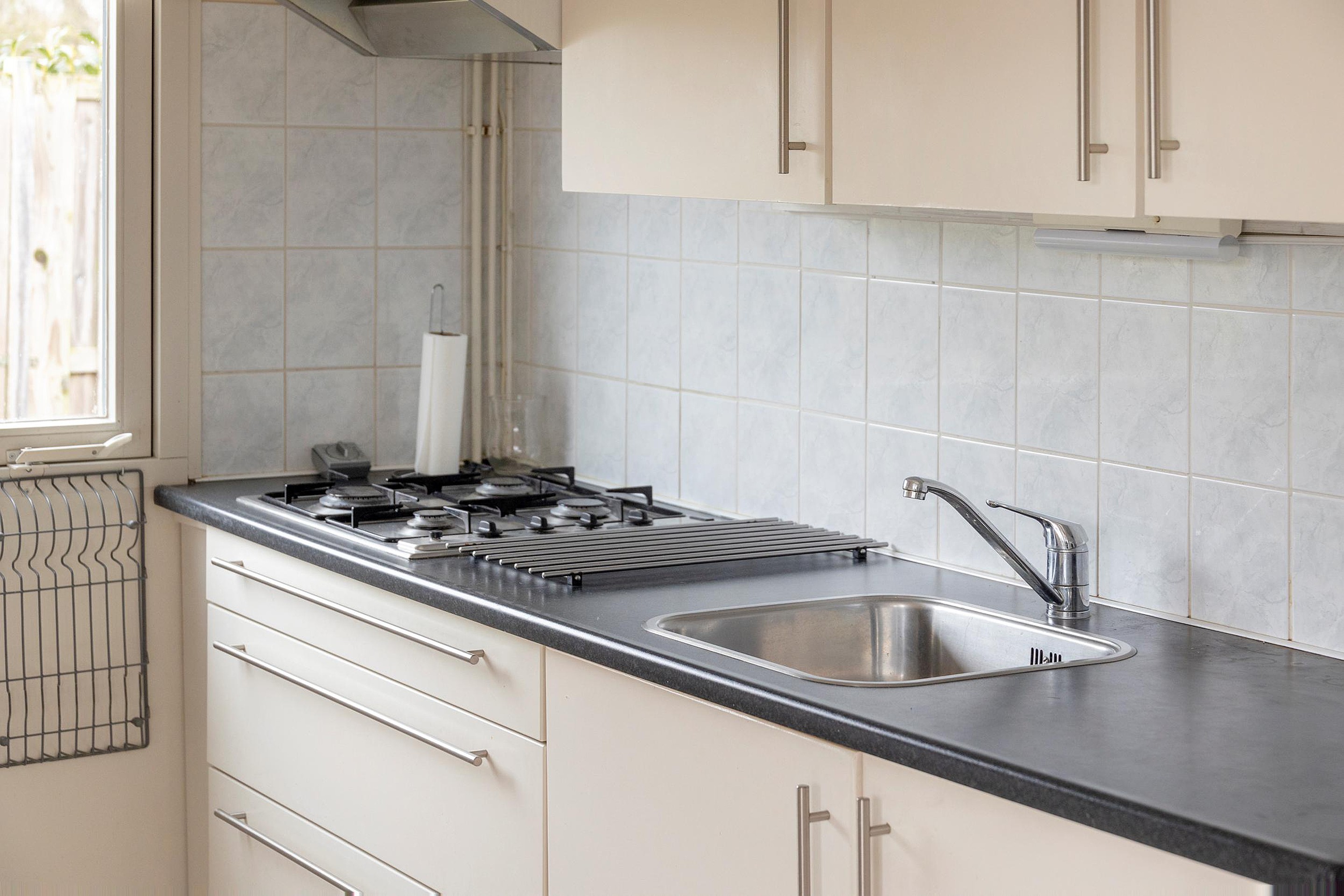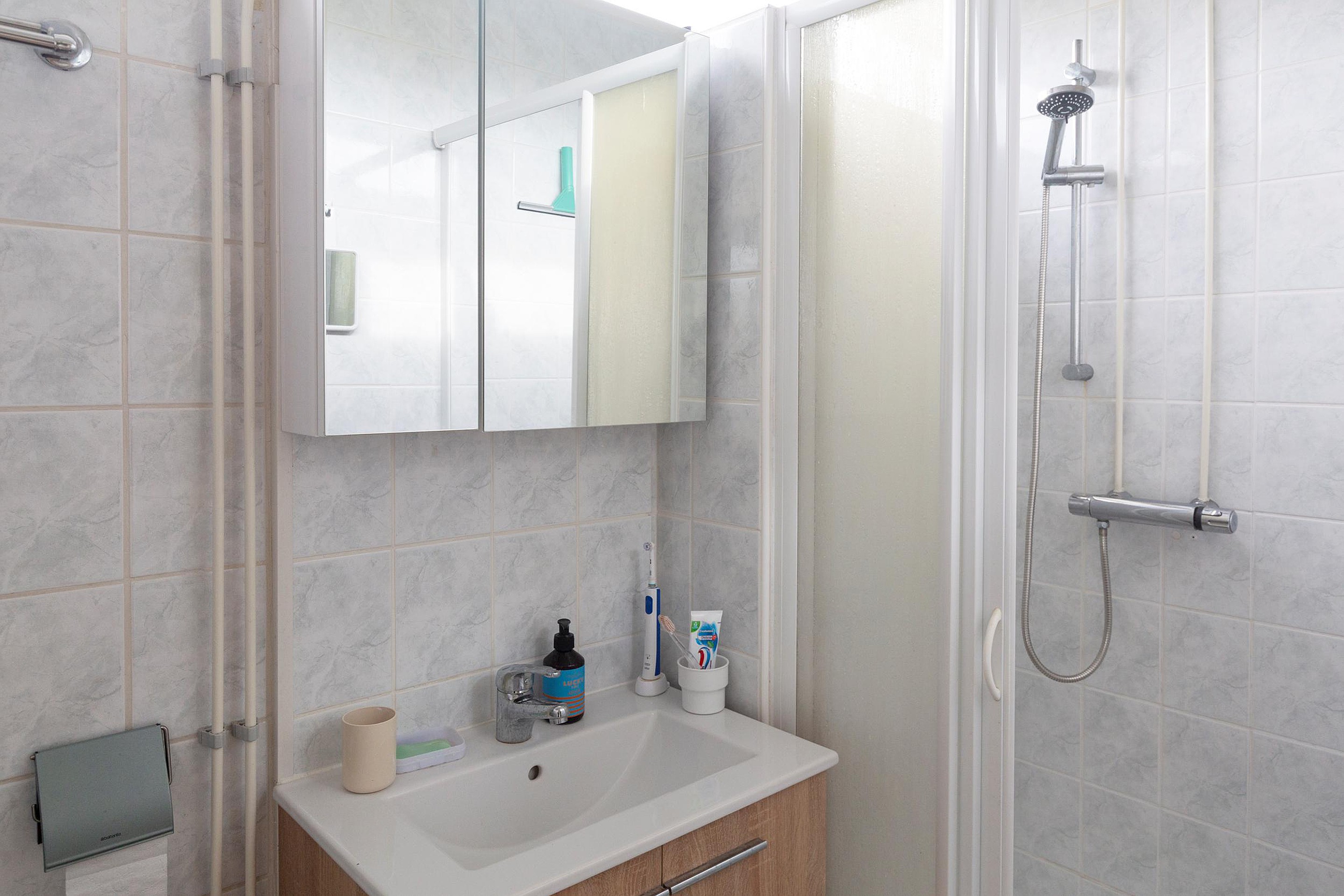 Begane grond U parkeert uw auto op de eigen parkeerplaats, vervolgens geeft de (af te sluiten) poort toegang tot de – op het zuiden gelegen – tuin. Entree in de hal met hier de meterkast en opstelplaats van de cv-ketel, toegang tot de badkamer en de woonkamer. De badkamer is voorzien van een toilet, een wastafelmeubel en een douche.