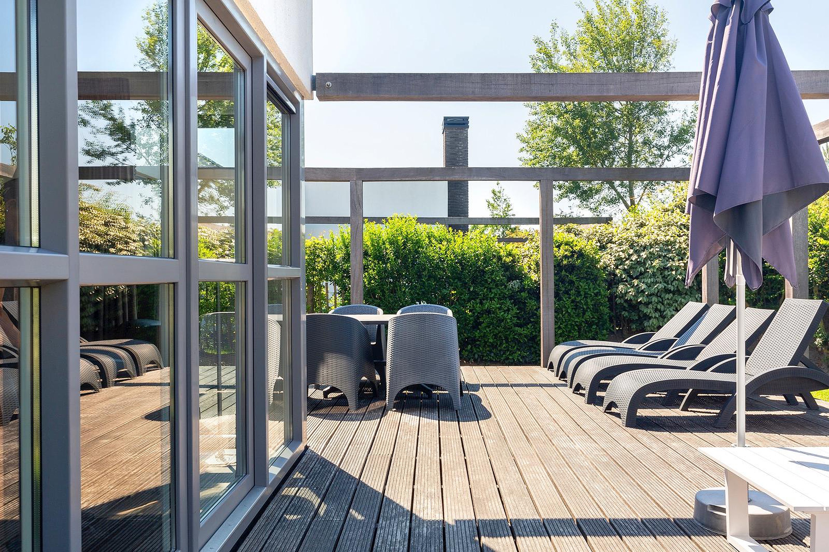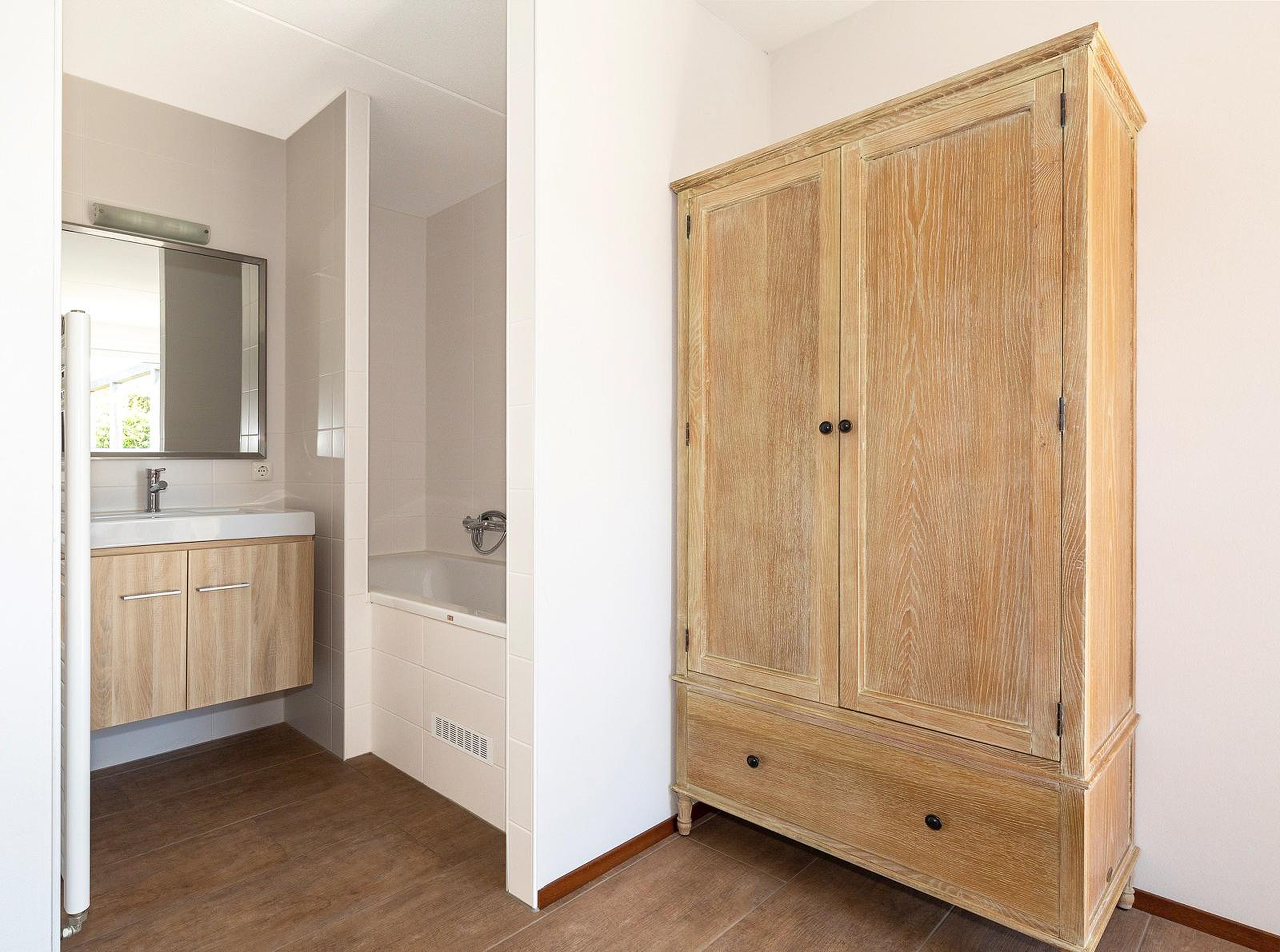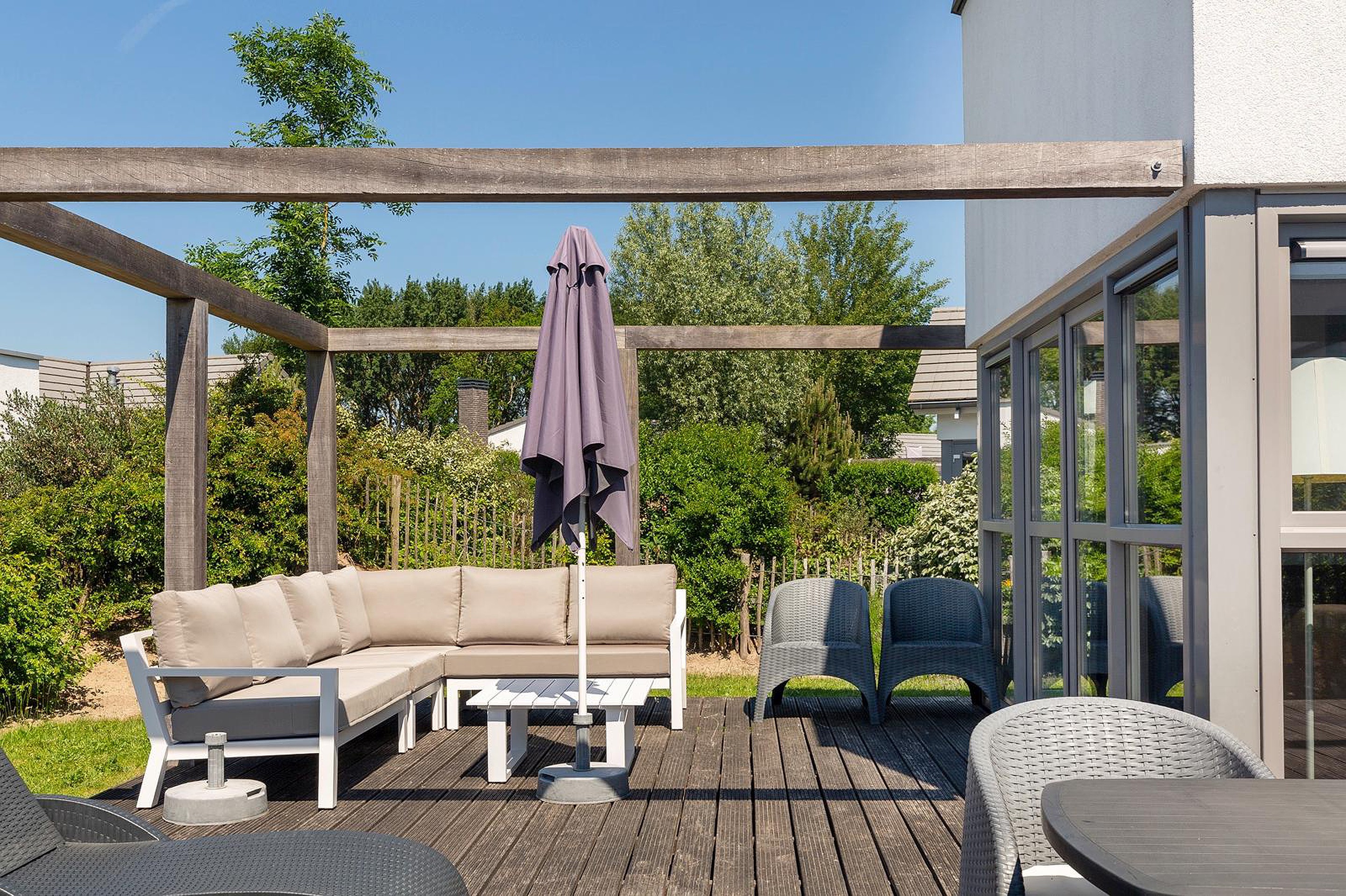 Vanuit de living loopt u direct het ruime vlonderterras op, rondom het terras treft u de keurig onderhouden en sfeervol aangelegde tuin aan. Op eigen terrein zijn twee parkeerplaatsen en door de ligging aan het parkje heeft u vrij zicht.