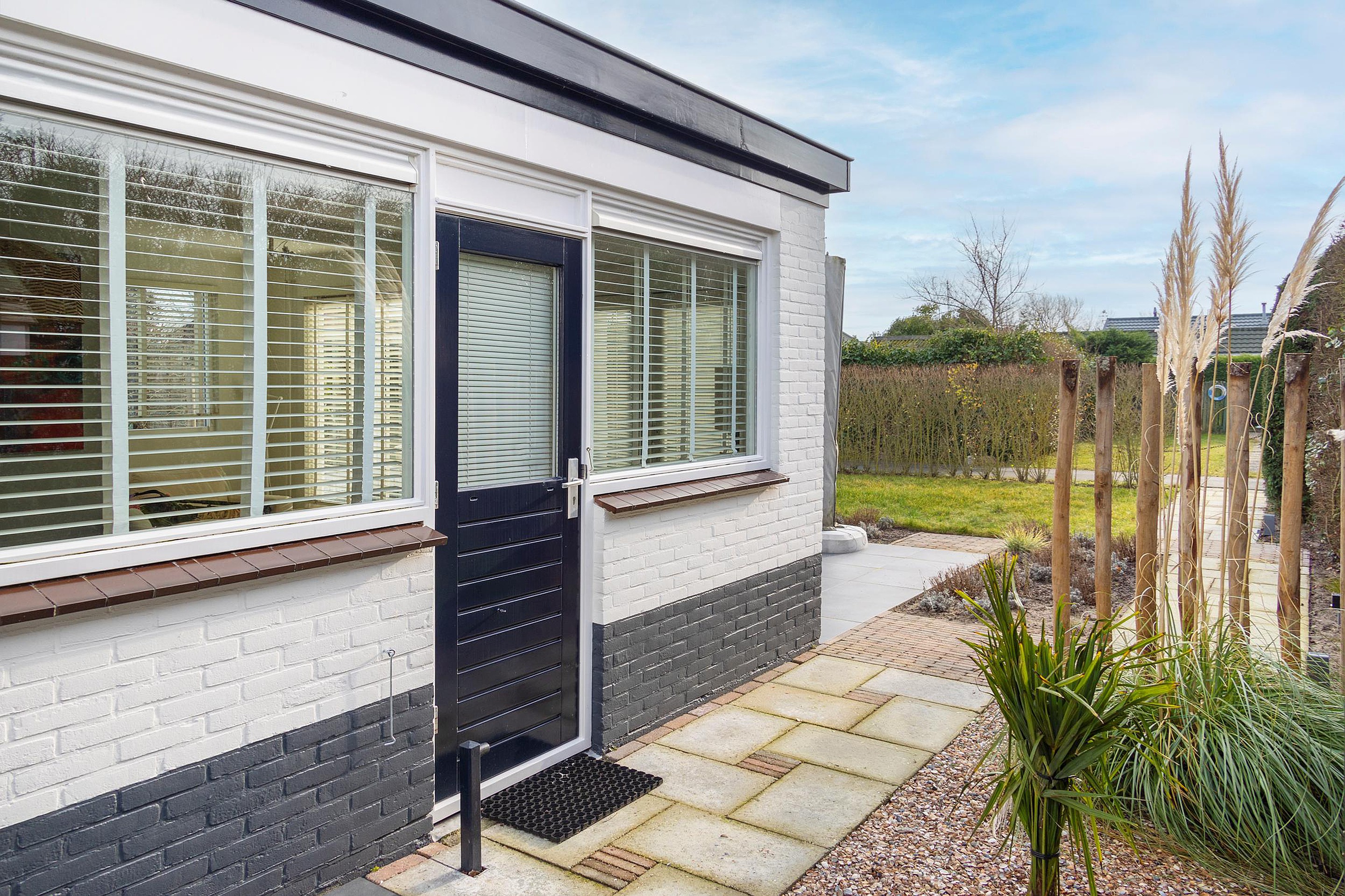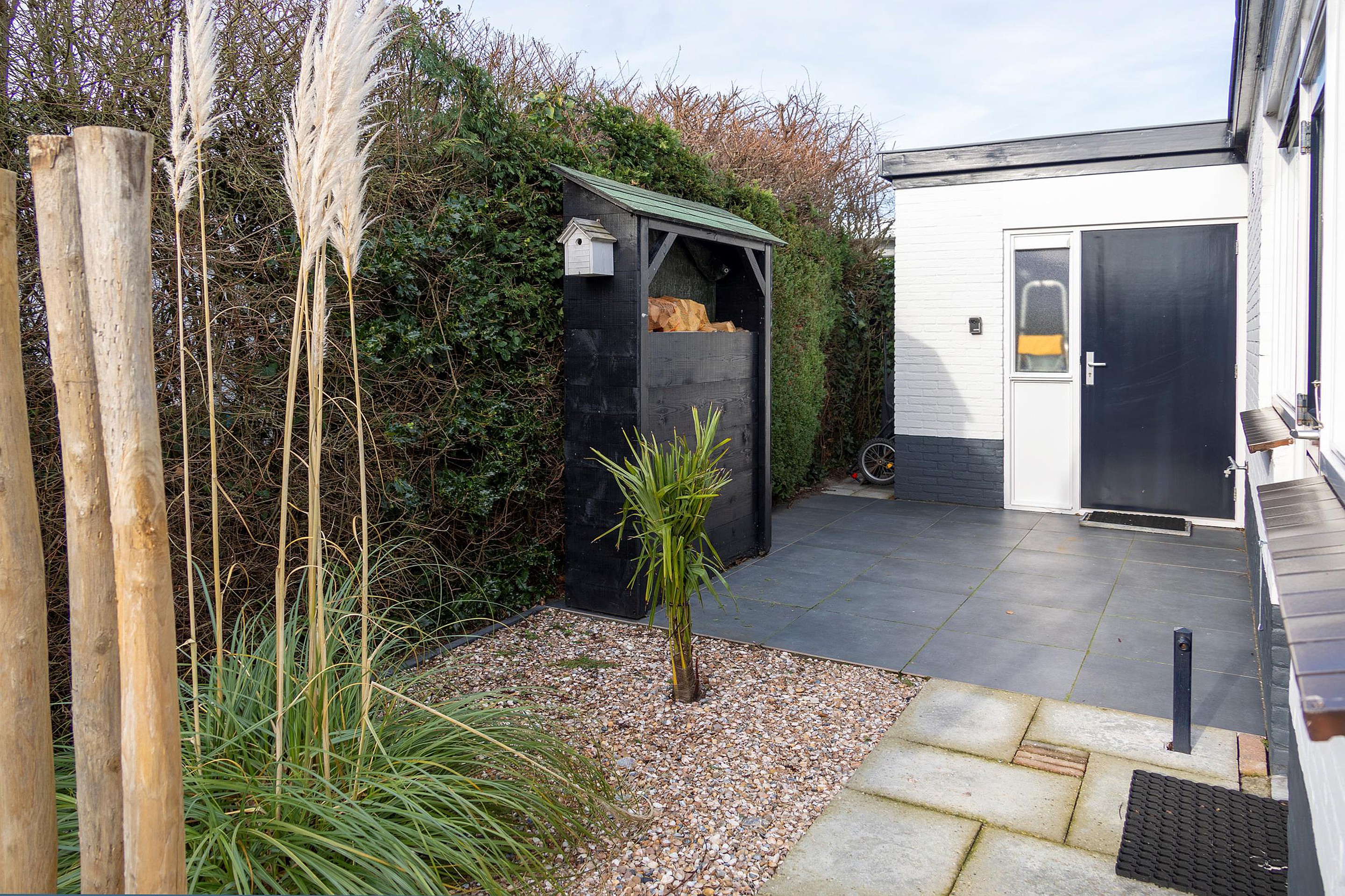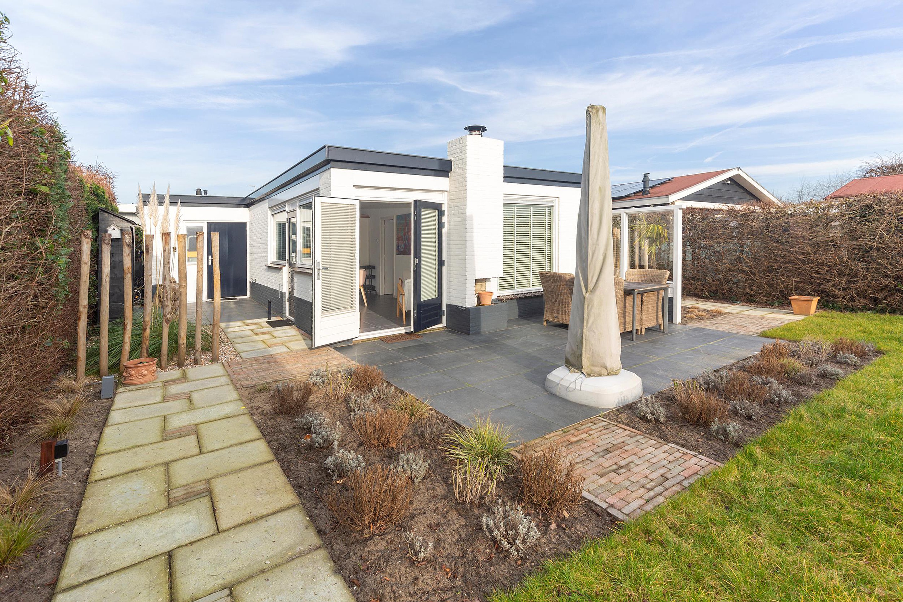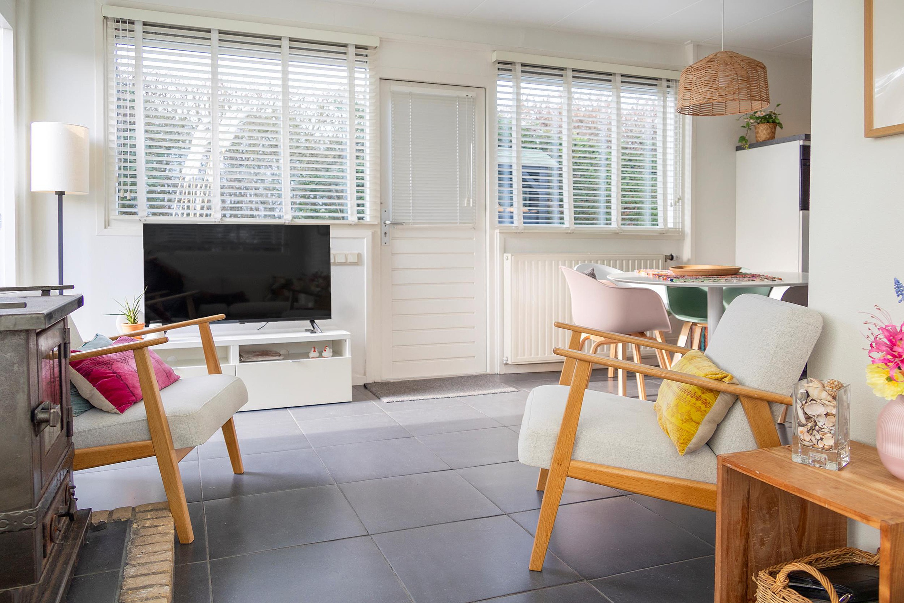 Begane grond Via het tuinpad loopt u naar de toegangsdeur. Entree in de knusse woonkamer, waar de sfeervolle houtkachel ervoor zorgt dat het op koude en druilige dagen helemaal niet erg is om binnen te zitten. De grote ramen halen samen met de openslaande tuindeuren de zon in huis en zorgen voor een prettige lichtinval. De open keuken is voorzien van een L-vormige inbouwkeuken in witte kleurstelling met een zwart gemêleerd kunststof aanrechtblad. Deze moderne keuken uit 2024 is uitgerust met een koelkast, combimagnetron/oven, vaatwasmachine, spoelbak, inductiekookplaat en schouwafzuigkap. De 2 slaapkamers zijn met 12 en 9m2 prettig ruim en de grootste slaapkamer is voorzien van airconditioning en openslaande tuindeuren. De badkamer is in 2024 volledig vernieuwd en voorzien van een wastafelmeubel, wandcloset, een inloopdouche en handdoekenradiator. Tevens beschikt de badkamer over een mechanisch afzuigsysteem. De berging c.q. bijkeuken is zowel van binnenuit als van buitenaf te bereiken. Deze praktische ruimte is voorzien van een meterkast en een aansluiting voor de wasmachine, ook bevindt zich hier de cv-ketel (2024). De gehele bungalow is voorzien van een antracietkleurige plavuizenvloer.