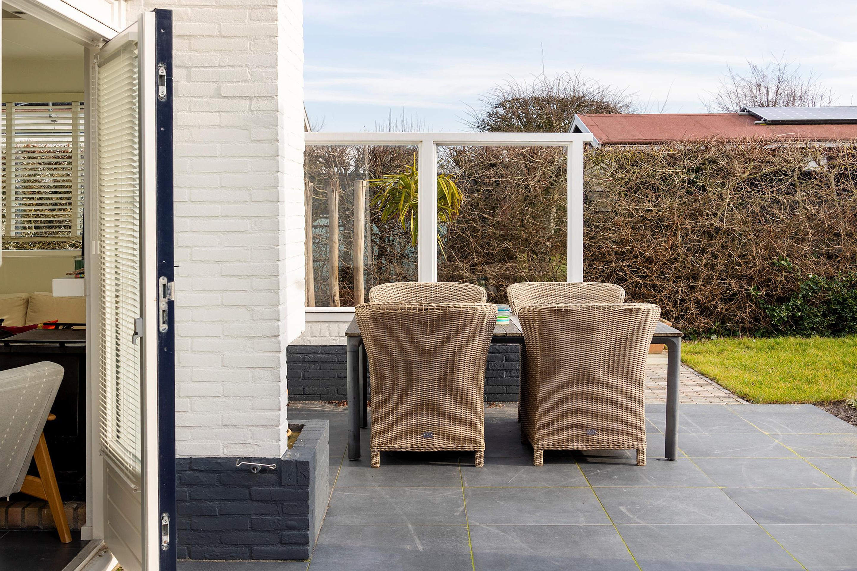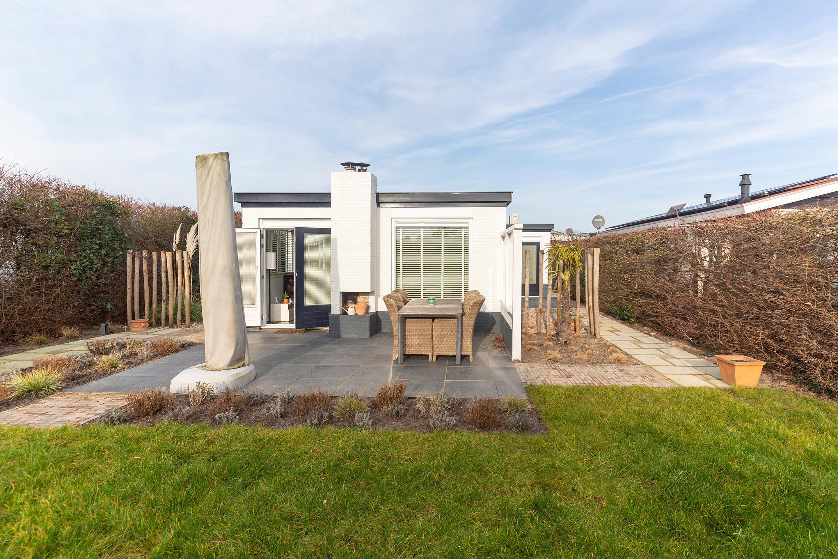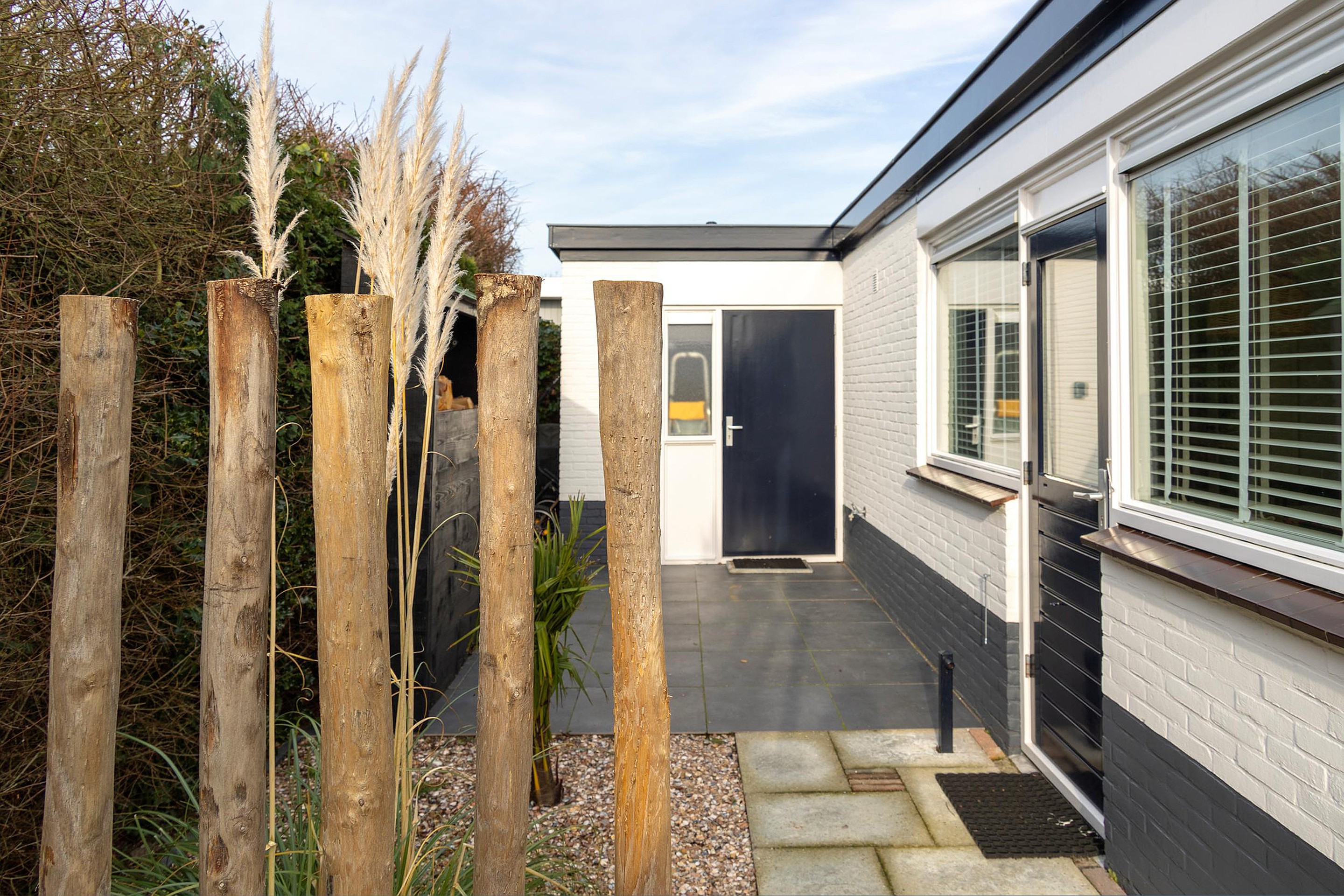 Begane grond Via het tuinpad loopt u naar de toegangsdeur. Entree in de knusse woonkamer, waar de sfeervolle houtkachel ervoor zorgt dat het op koude en druilige dagen helemaal niet erg is om binnen te zitten. De grote ramen halen samen met de openslaande tuindeuren de zon in huis en zorgen voor een prettige lichtinval. De open keuken is voorzien van een L-vormige inbouwkeuken in witte kleurstelling met een zwart gemêleerd kunststof aanrechtblad. Deze moderne keuken uit 2024 is uitgerust met een koelkast, combimagnetron/oven, vaatwasmachine, spoelbak, inductiekookplaat en schouwafzuigkap. De 2 slaapkamers zijn met 12 en 9m2 prettig ruim en de grootste slaapkamer is voorzien van airconditioning en openslaande tuindeuren. De badkamer is in 2024 volledig vernieuwd en voorzien van een wastafelmeubel, wandcloset, een inloopdouche en handdoekenradiator. Tevens beschikt de badkamer over een mechanisch afzuigsysteem. De berging c.q. bijkeuken is zowel van binnenuit als van buitenaf te bereiken. Deze praktische ruimte is voorzien van een meterkast en een aansluiting voor de wasmachine, ook bevindt zich hier de cv-ketel (2024). De gehele bungalow is voorzien van een antracietkleurige plavuizenvloer.