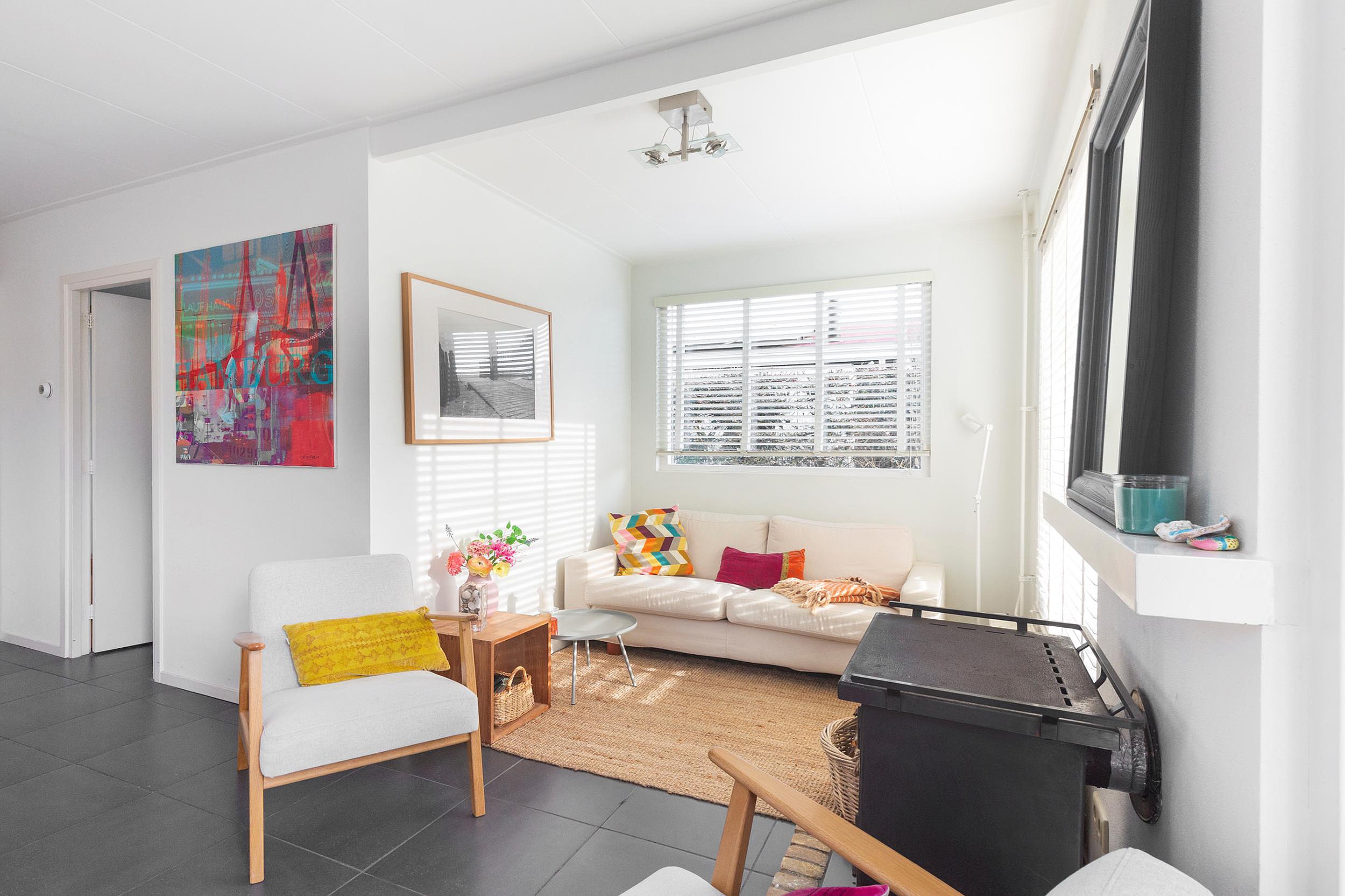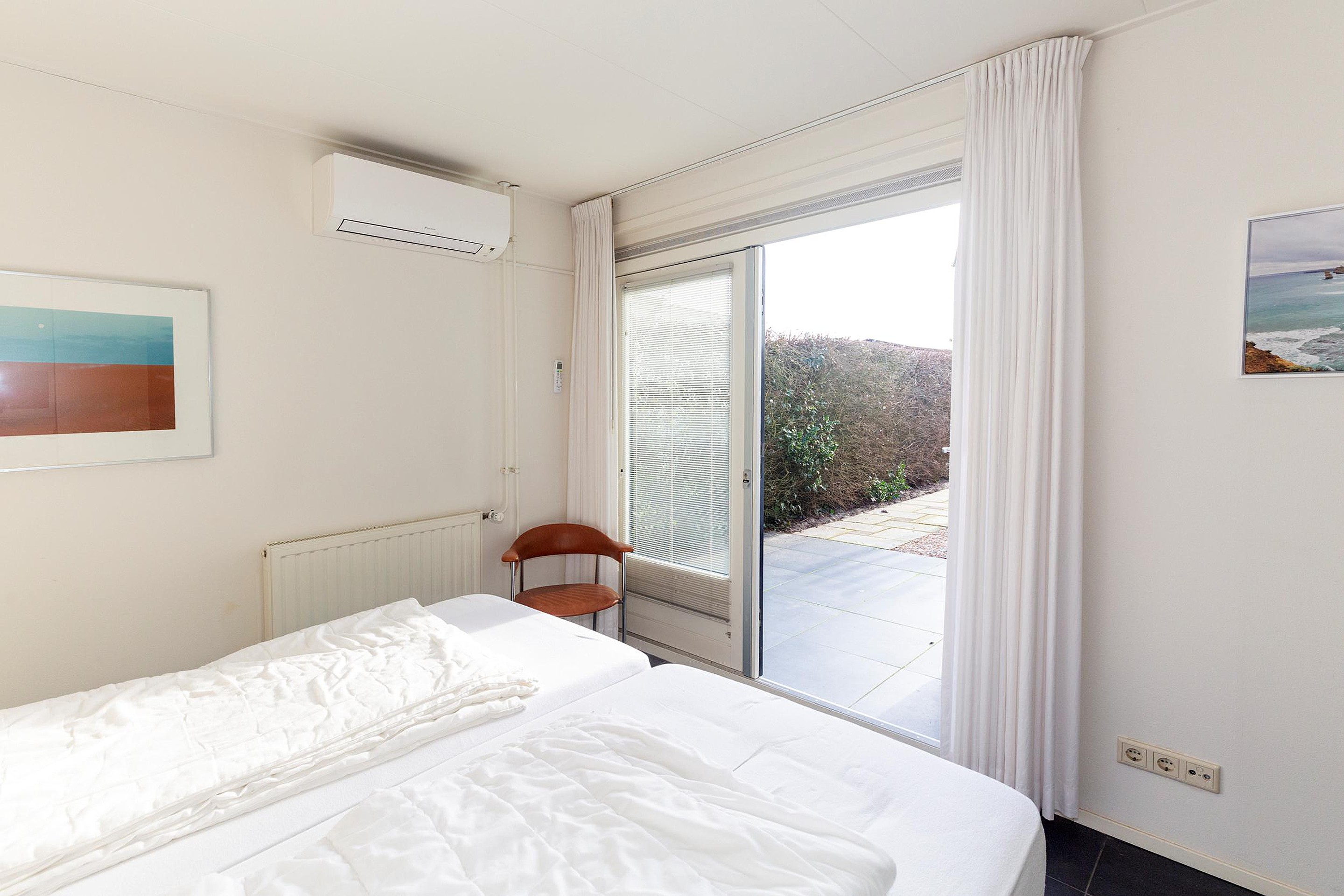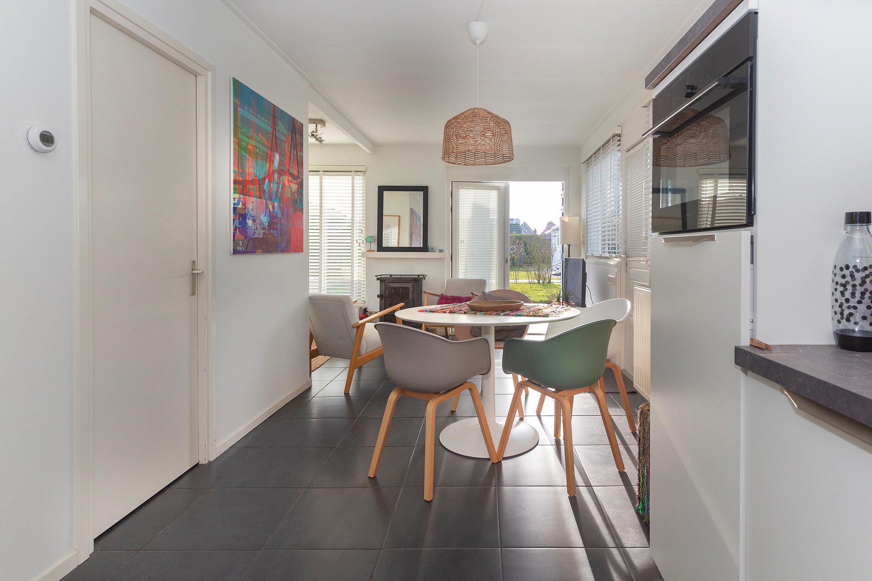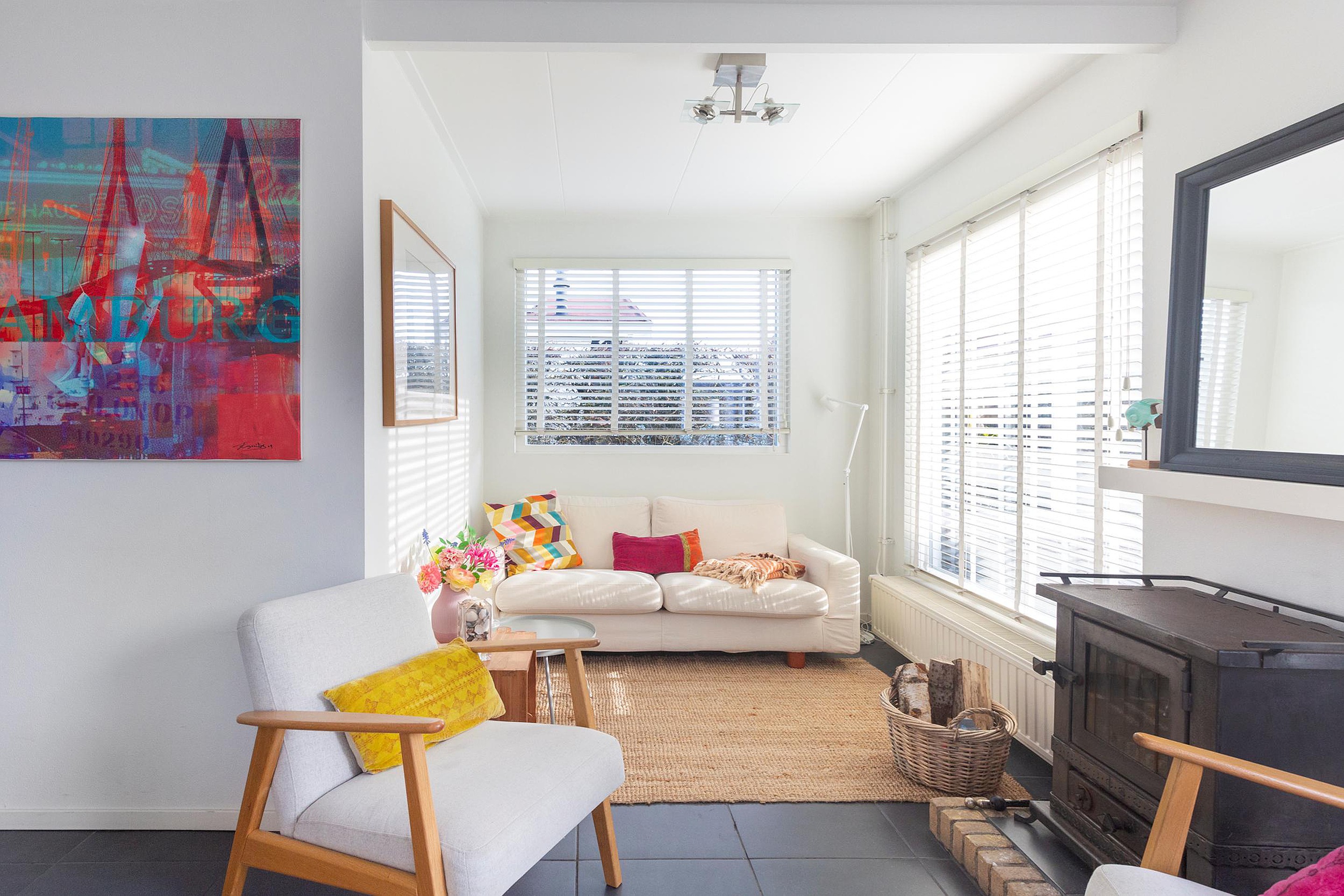 Begane grond Via het tuinpad loopt u naar de toegangsdeur. Entree in de knusse woonkamer, waar de sfeervolle houtkachel ervoor zorgt dat het op koude en druilige dagen helemaal niet erg is om binnen te zitten. De grote ramen halen samen met de openslaande tuindeuren de zon in huis en zorgen voor een prettige lichtinval. De open keuken is voorzien van een L-vormige inbouwkeuken in witte kleurstelling met een zwart gemêleerd kunststof aanrechtblad. Deze moderne keuken uit 2024 is uitgerust met een koelkast, combimagnetron/oven, vaatwasmachine, spoelbak, inductiekookplaat en schouwafzuigkap. De 2 slaapkamers zijn met 12 en 9m2 prettig ruim en de grootste slaapkamer is voorzien van airconditioning en openslaande tuindeuren. De badkamer is in 2024 volledig vernieuwd en voorzien van een wastafelmeubel, wandcloset, een inloopdouche en handdoekenradiator. Tevens beschikt de badkamer over een mechanisch afzuigsysteem. De berging c.q. bijkeuken is zowel van binnenuit als van buitenaf te bereiken. Deze praktische ruimte is voorzien van een meterkast en een aansluiting voor de wasmachine, ook bevindt zich hier de cv-ketel (2024). De gehele bungalow is voorzien van een antracietkleurige plavuizenvloer.