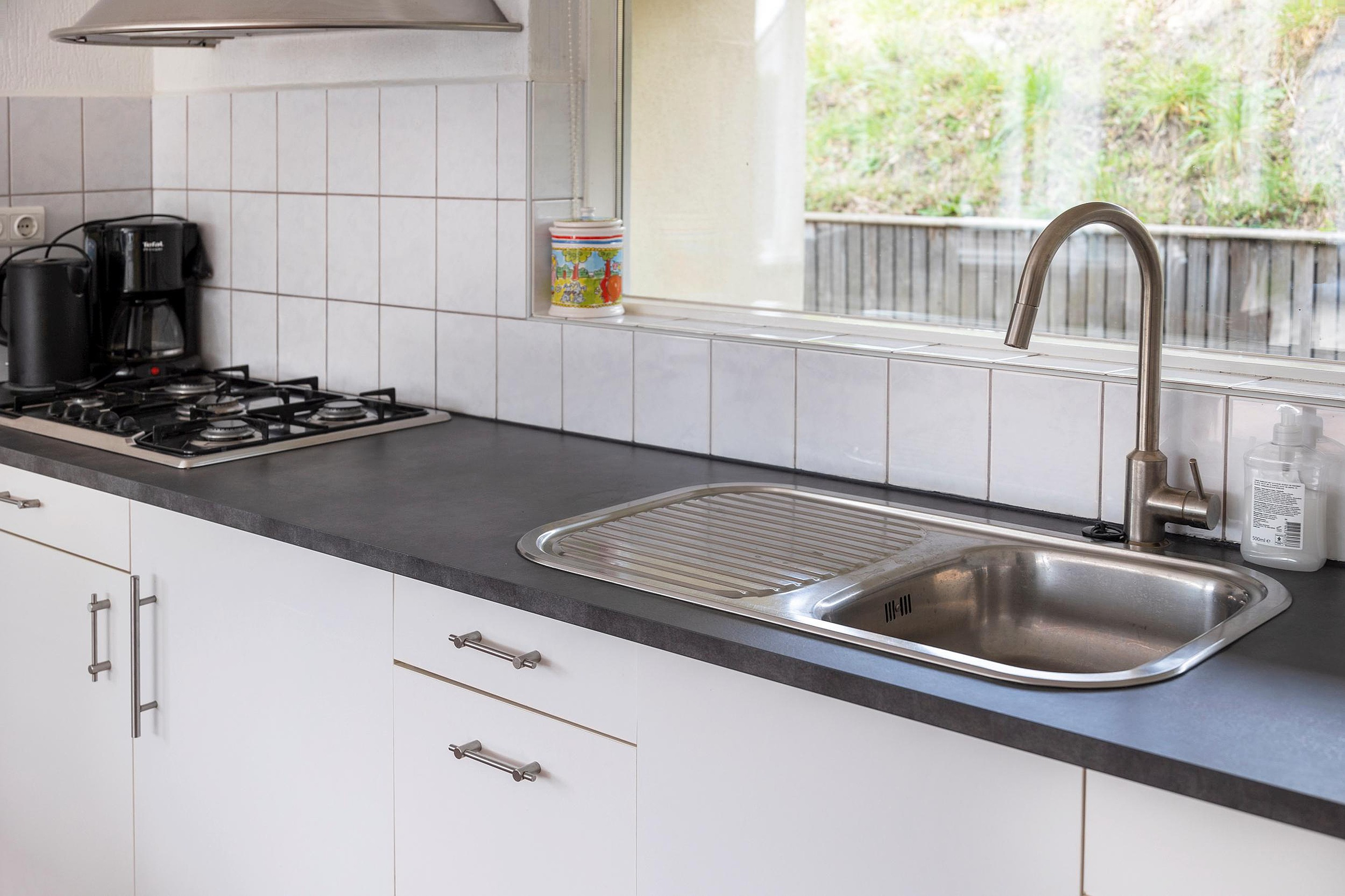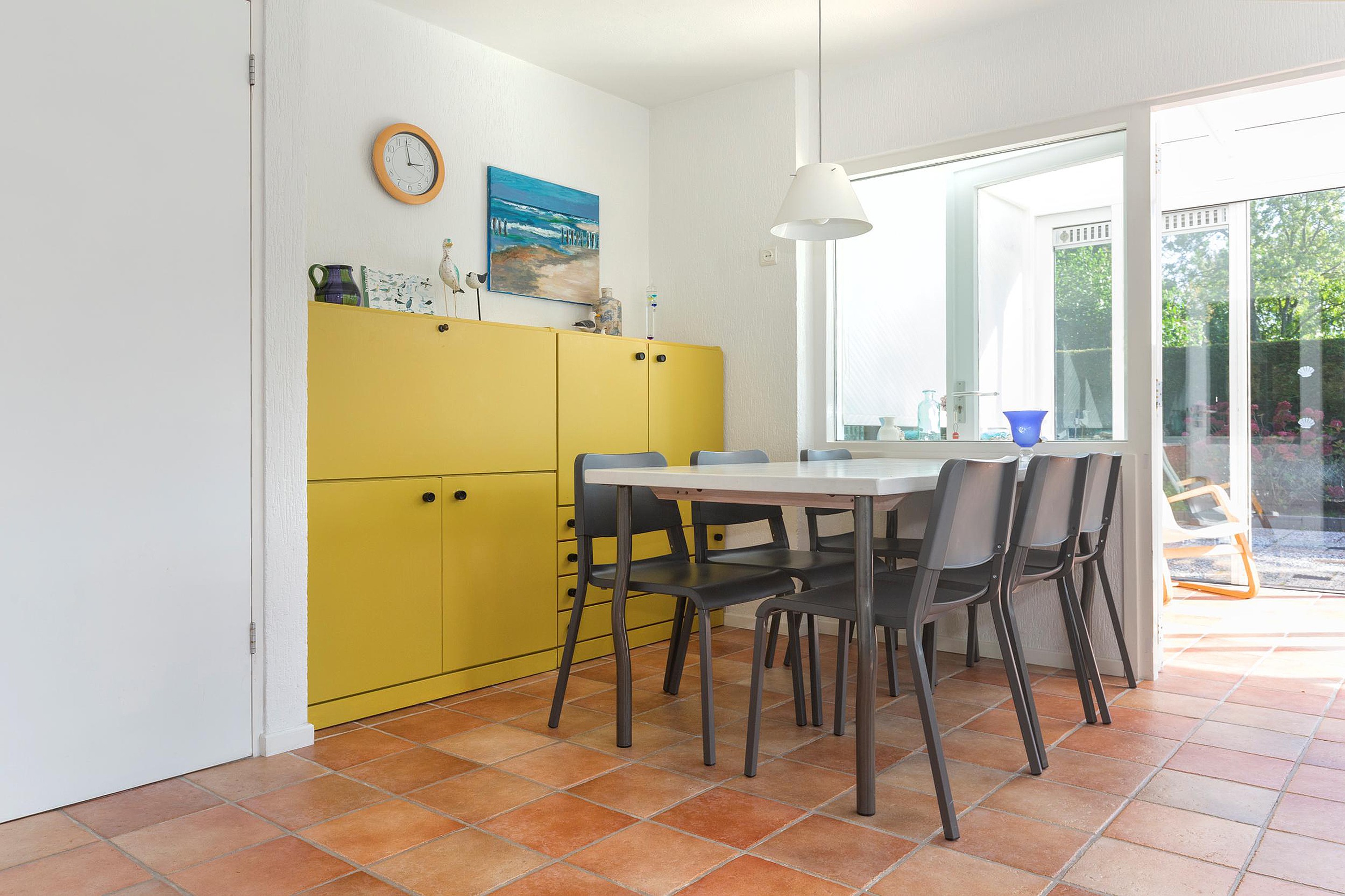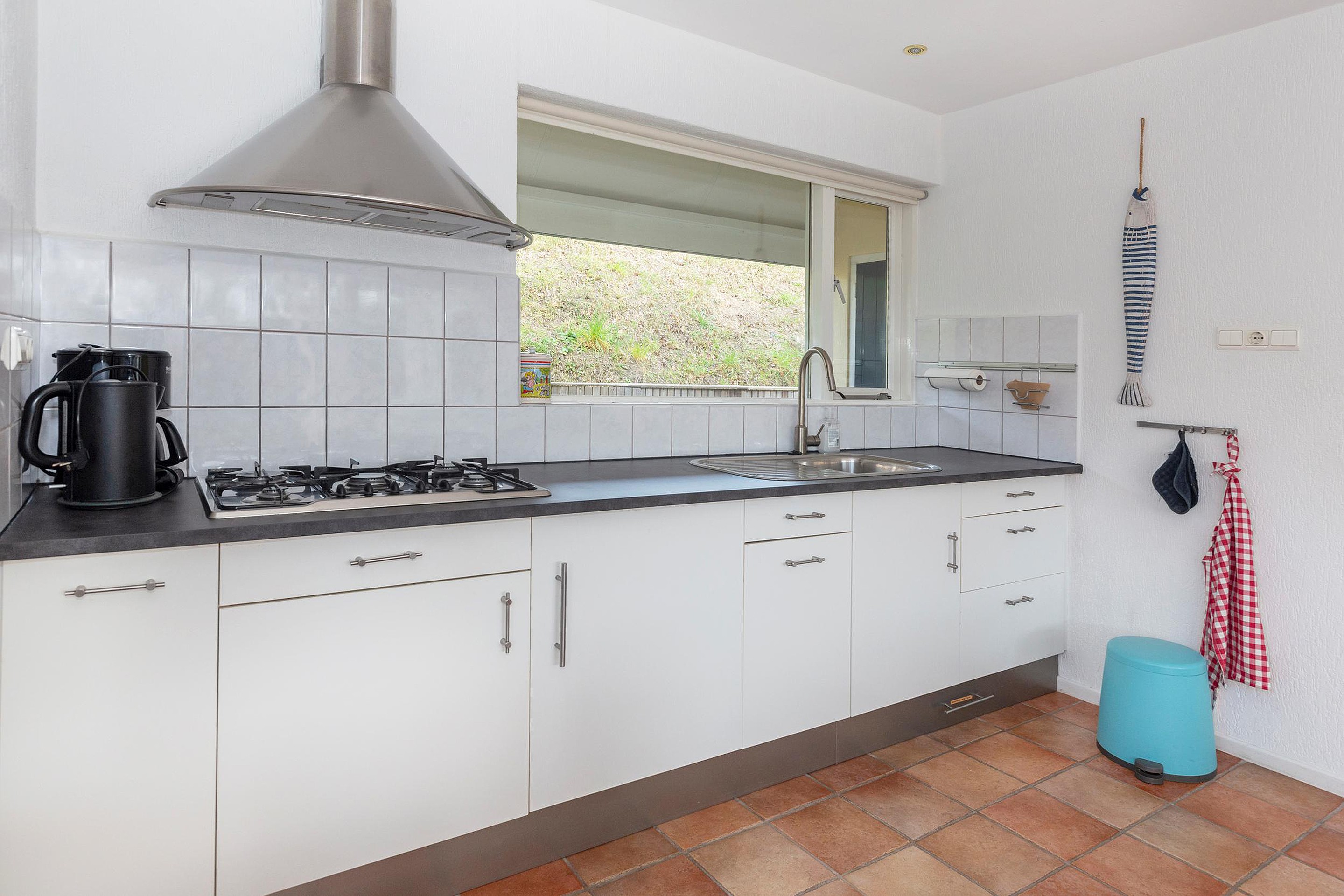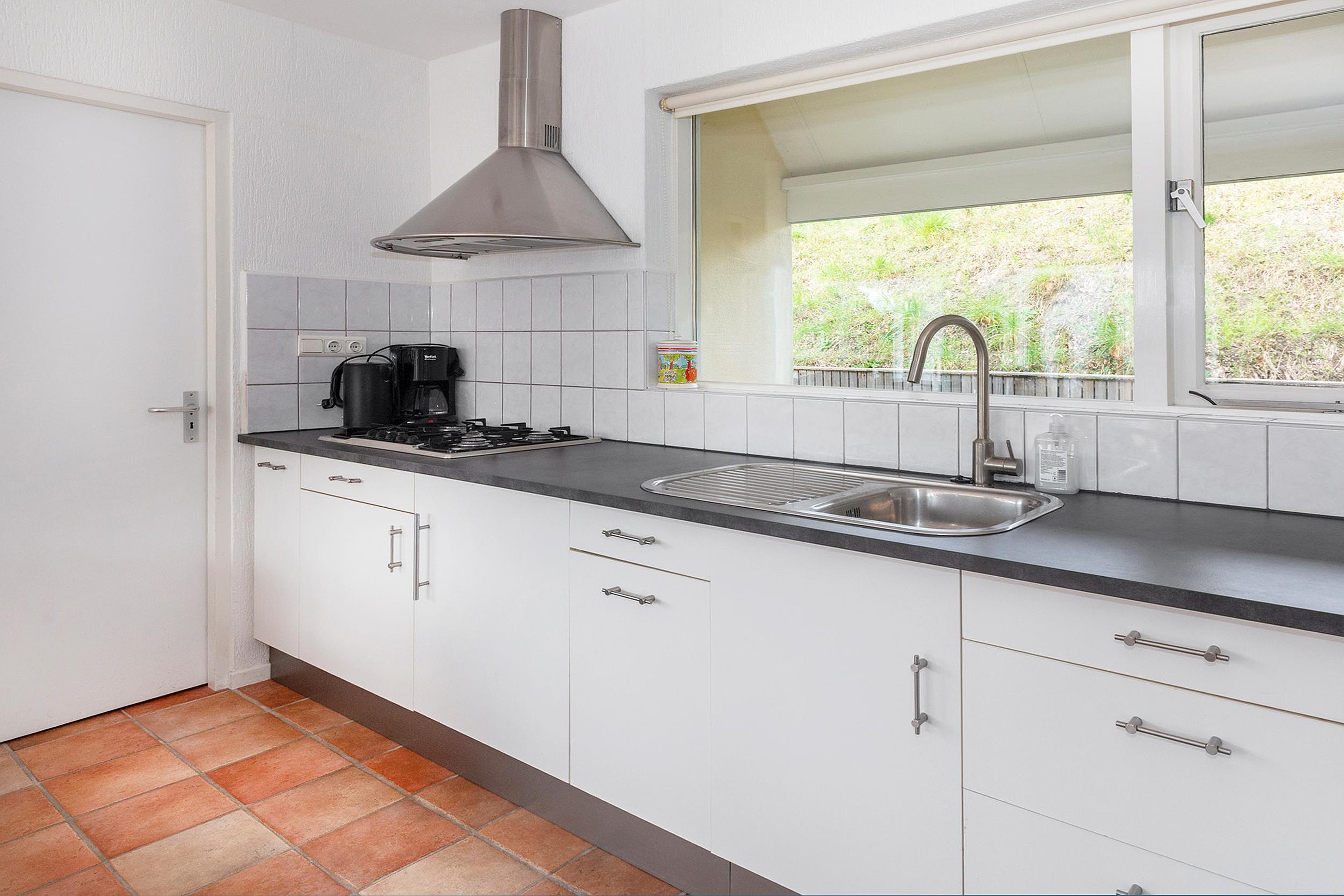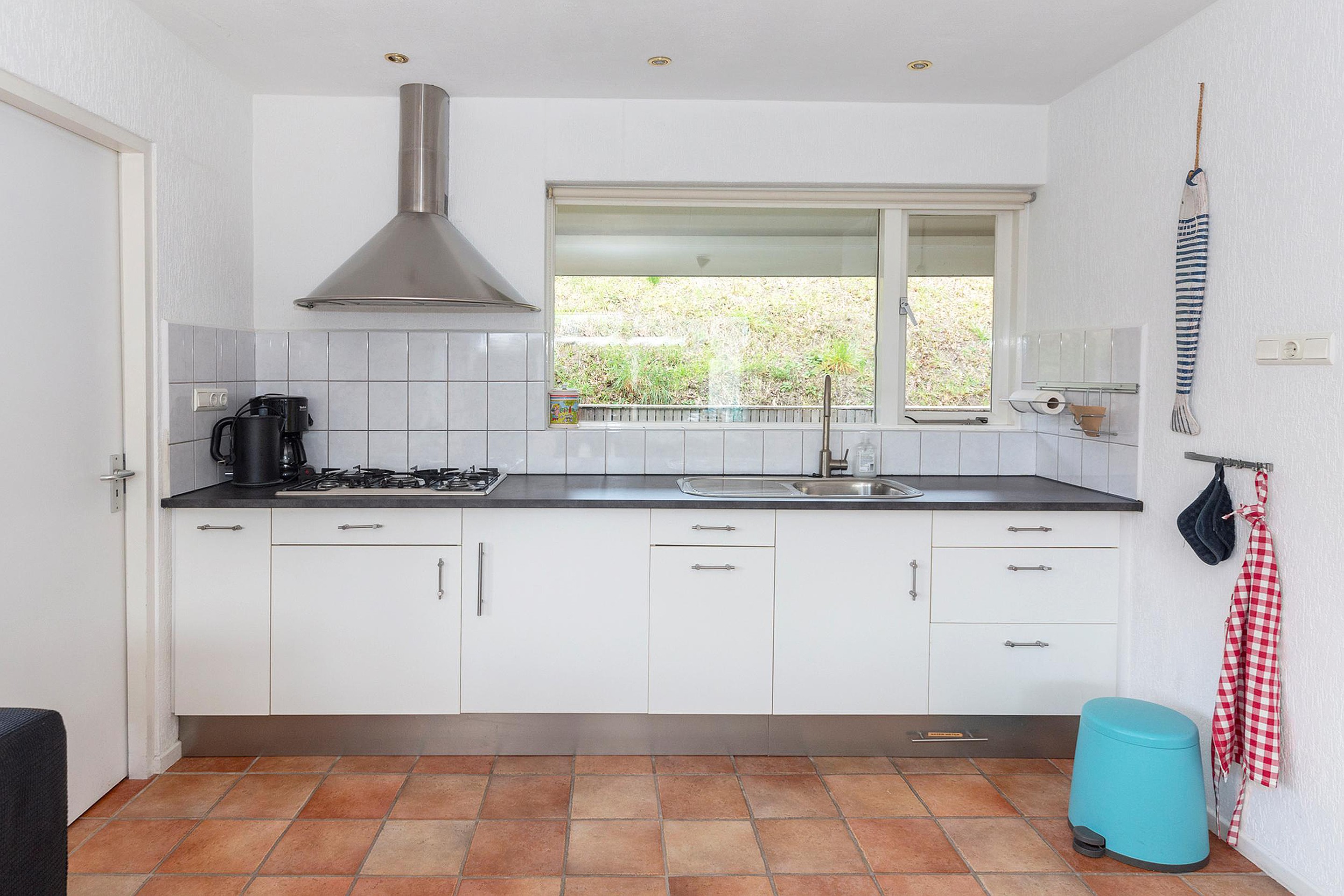 Begane grond De woning zelf heeft een praktische indeling. Bij binnenkomst bevindt u zich in de hal, waar direct aan uw linkerhand de eerste slaapkamer en de meterkast zijn. Aan de overkant van de hal bevindt zich een toilet. Vervolgens betreedt u de ruime woonkamer, die tuingericht is en toegang biedt tot een van de zonnige terrassen. De keuken, voorzien van een gaskookplaat met afzuigkap en een koelkast, grenst aan de woonkamer. Aan de zijkant van de keuken bevindt zich een bijkeuken, waar de magnetron, wasmachine en huishoudelijk gereedschap zijn geplaatst. Momenteel zijn de woonkamer en serre met elkaar verbonden door een deur, maar er bestaat de mogelijkheid om deze als geheel te integreren, waardoor de gebruiksoppervlakte groter wordt. Dankzij de aangebouwde serre is de woonkamer zeer licht en biedt het toegang tot het ruime terras via een schuifpui.