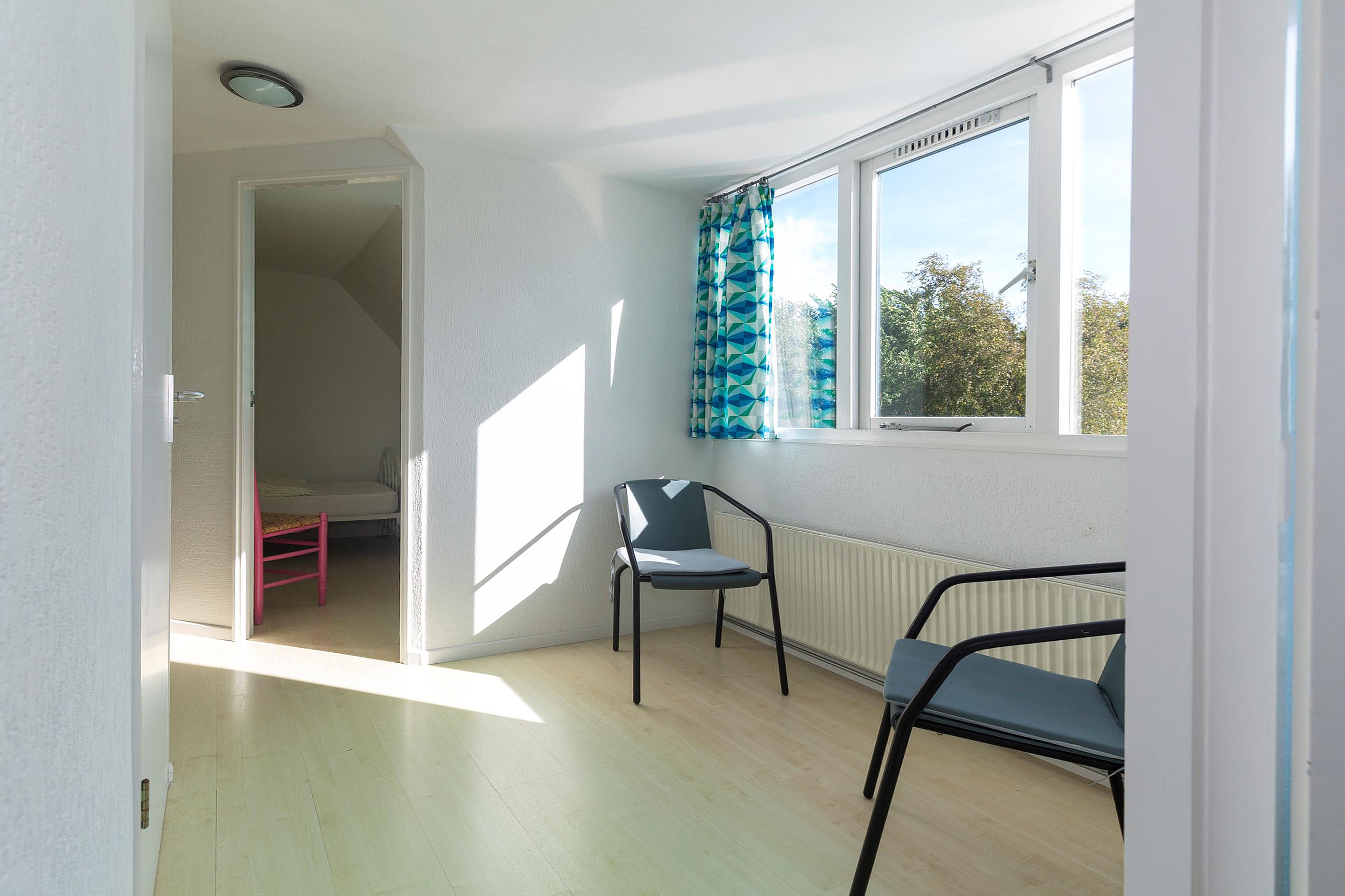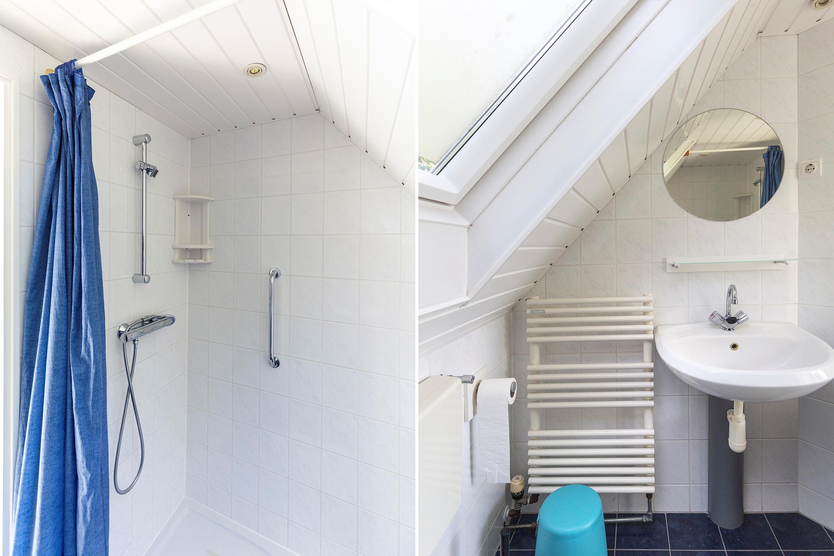 Eerste verdieping Op de verdieping bevinden zich twee ruime slaapkamers, waarvan de hoofdslaapkamer is uitgerust met een wastafel. De hele verdieping is voorzien van laminaatvloeren. Tussen de slaapkamers bevindt zich een ruime overloop, die toegang biedt tot de doucheruimte. Deze hal biedt voldoende ruimte voor comfortabel gebruik en zorgt voor een goede scheiding tussen de slaapvertrekken en de doucheruimte.