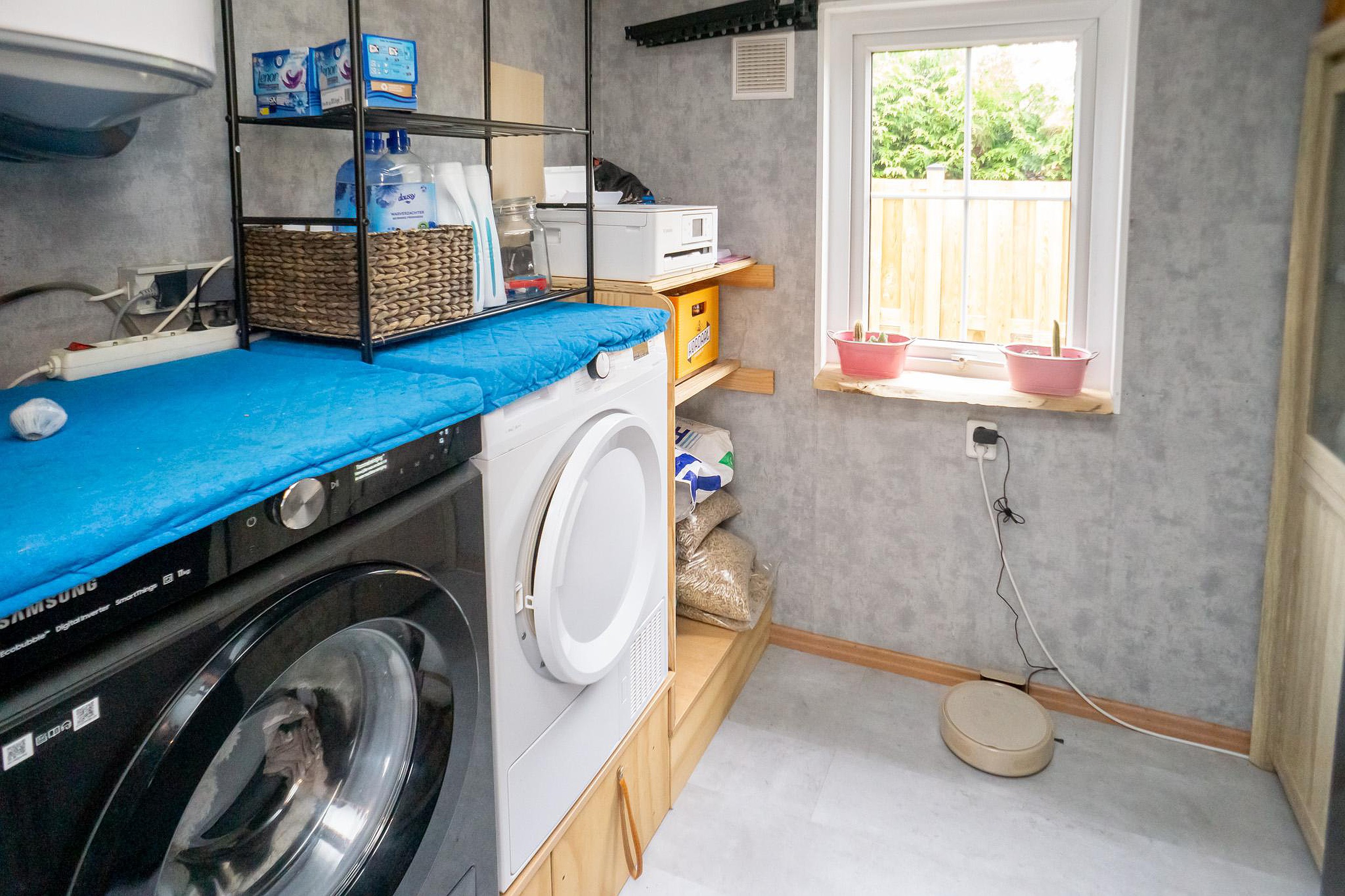 - Wasruimte: Praktische ruimte voor wasmachine, droger en extra bergruimte.
