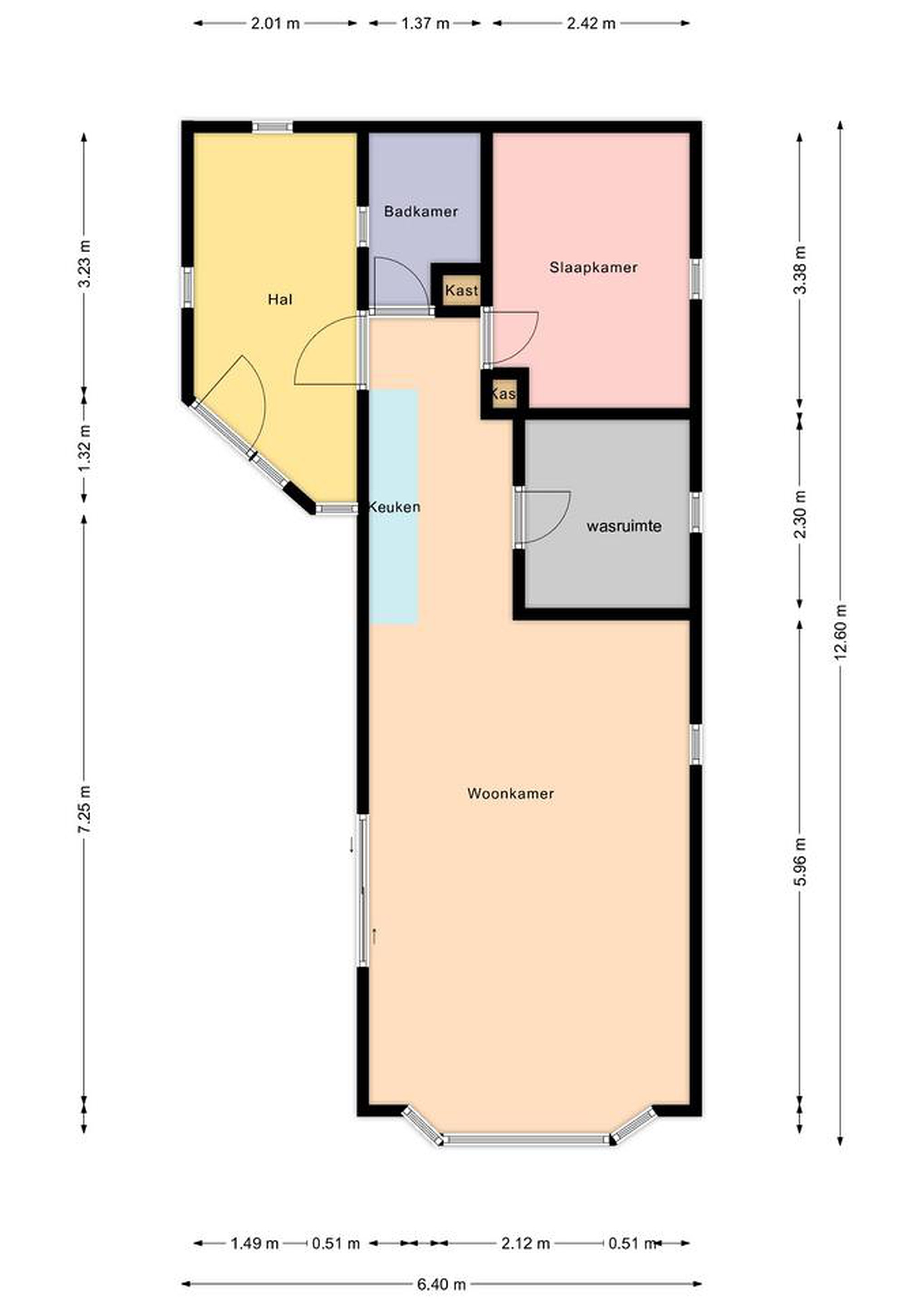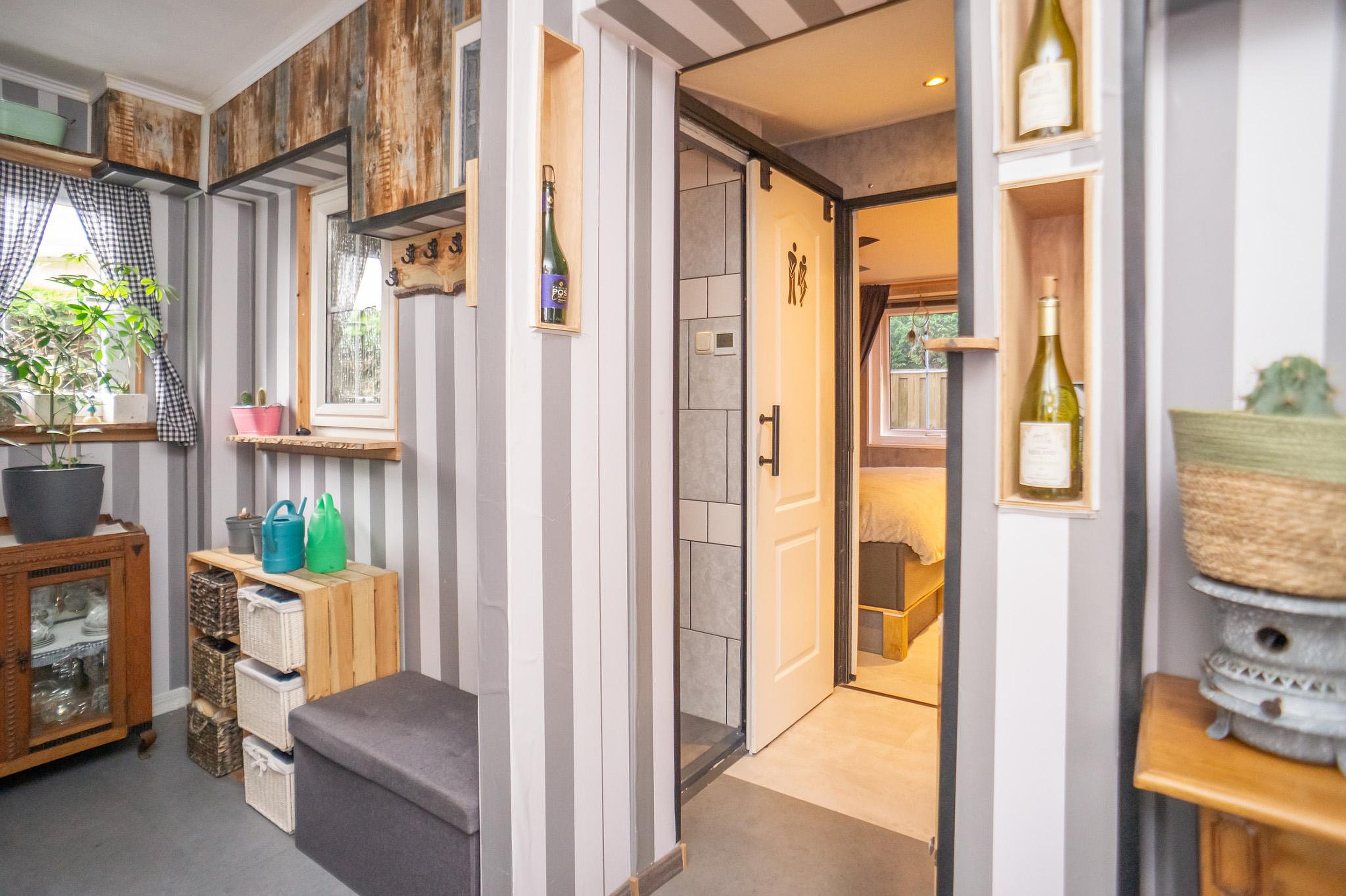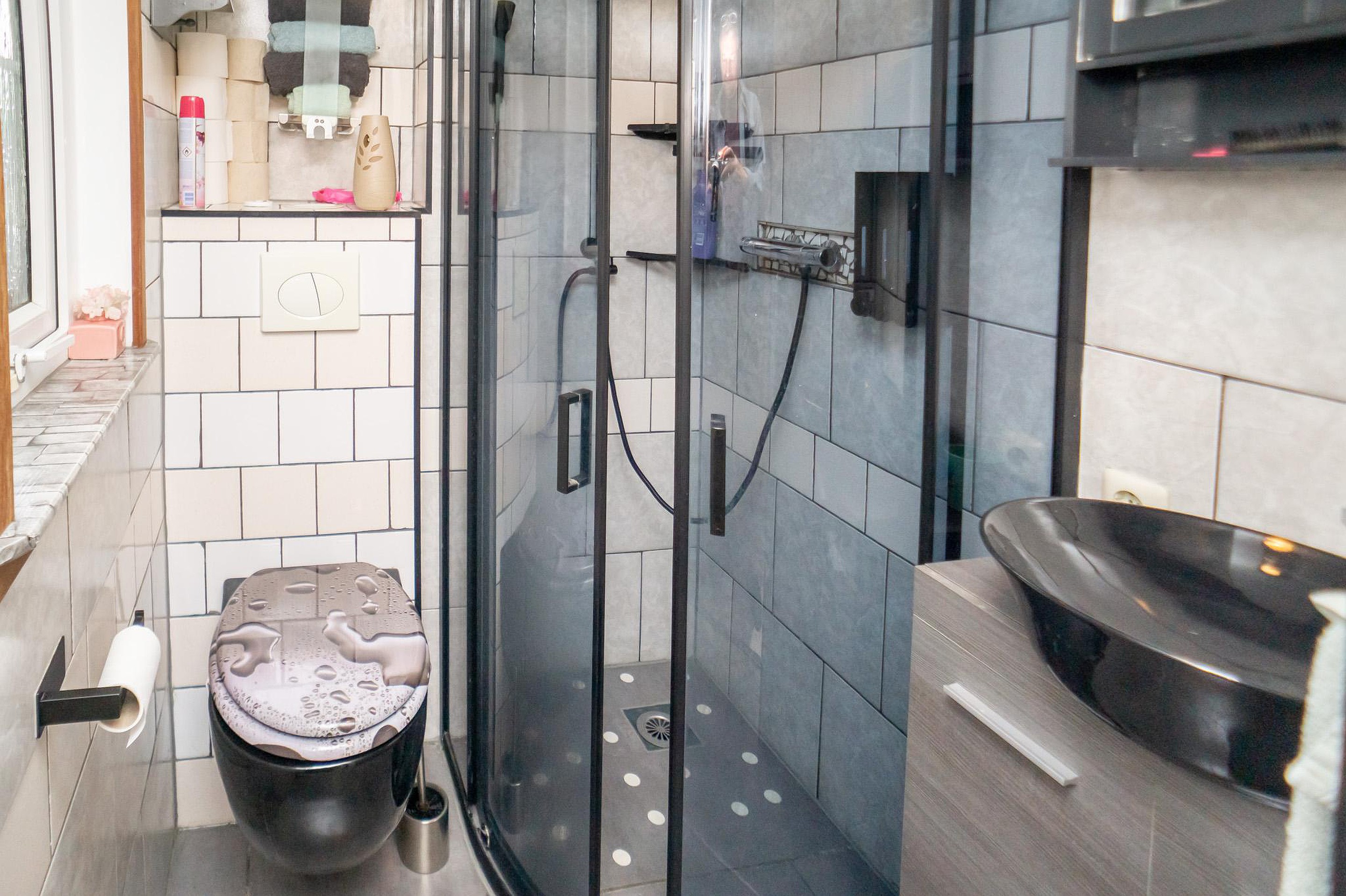 - Badkamer: Voorzien van douche, wastafel en toilet.