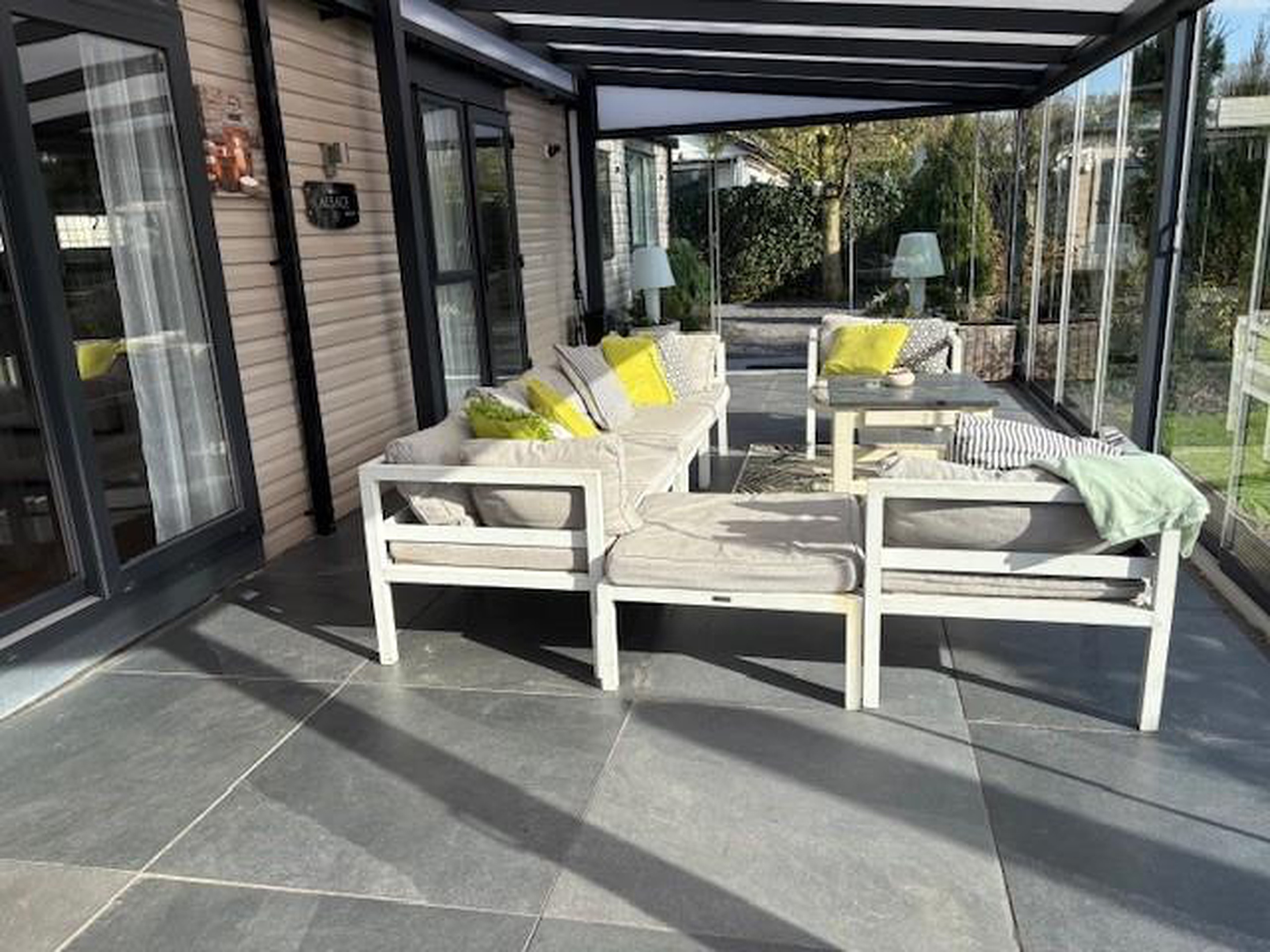 De zeer ruime serre maakt het geheel tot een idyllisch plekje.