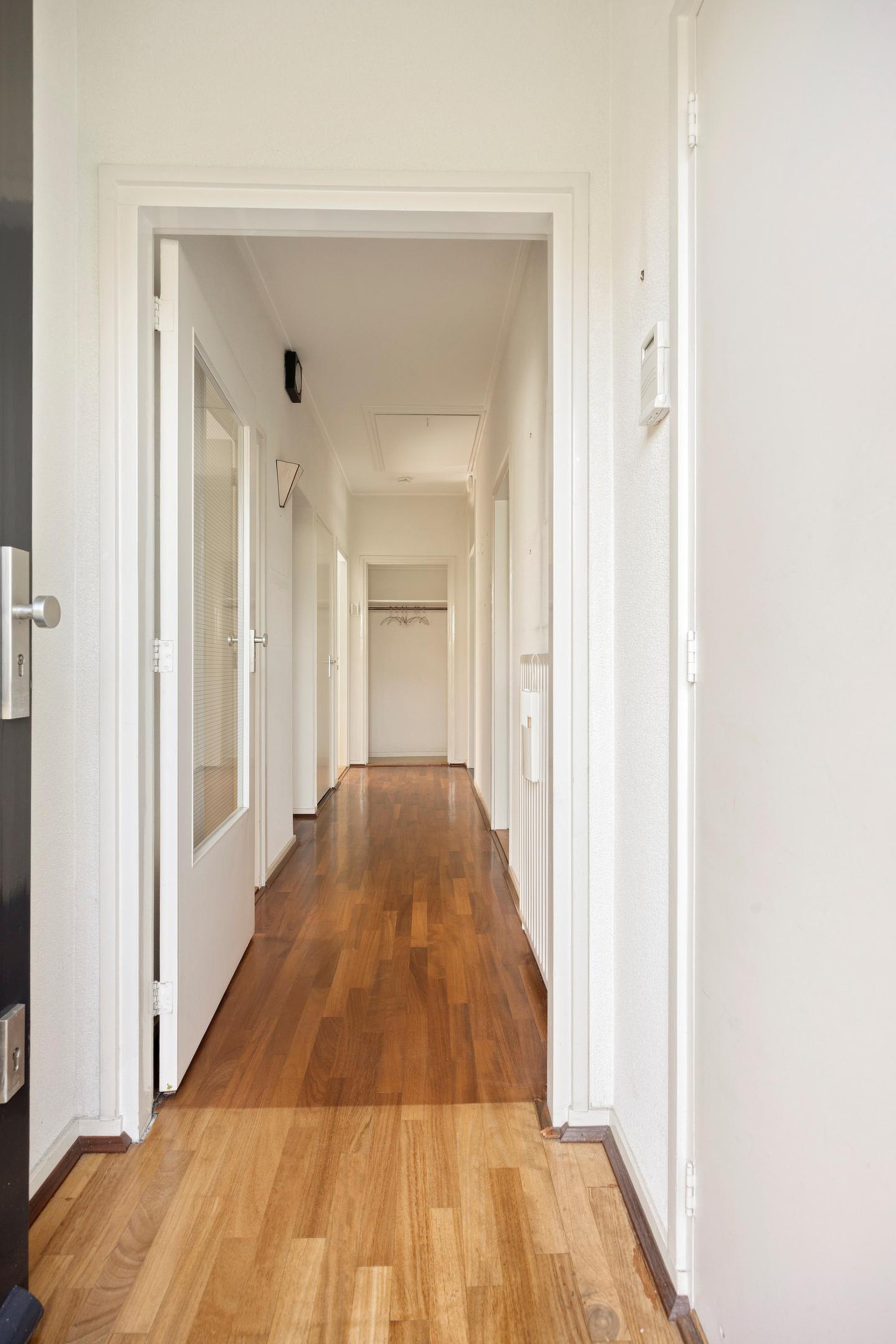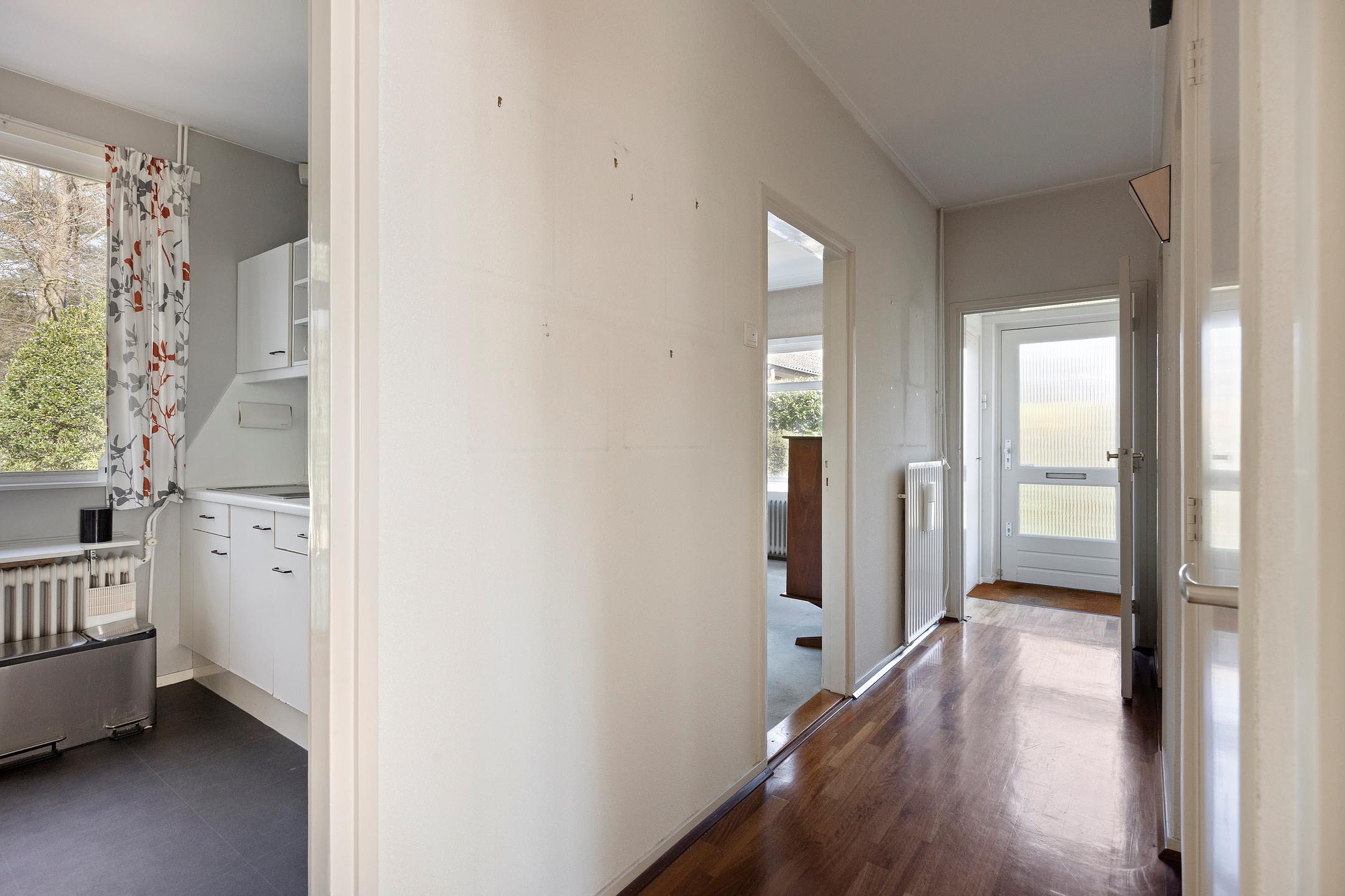 Via de verzorgde voortuin en uw eigen oprit, waar u voldoende ruimte heeft voor het parkeren van meerdere auto’s, bereikt u de woning. De oprit leidt tevens naar de garage, wat zorgt voor extra gemak. Bij binnenkomst arriveert u in de hal, vanuit hier heeft u toegang tot alle vertrekken op de begane grond, waaronder de twee slaapkamers, de badkamer, de keuken en de woonkamer. De hal fungeert als een centraal en verbindend element in de woning.