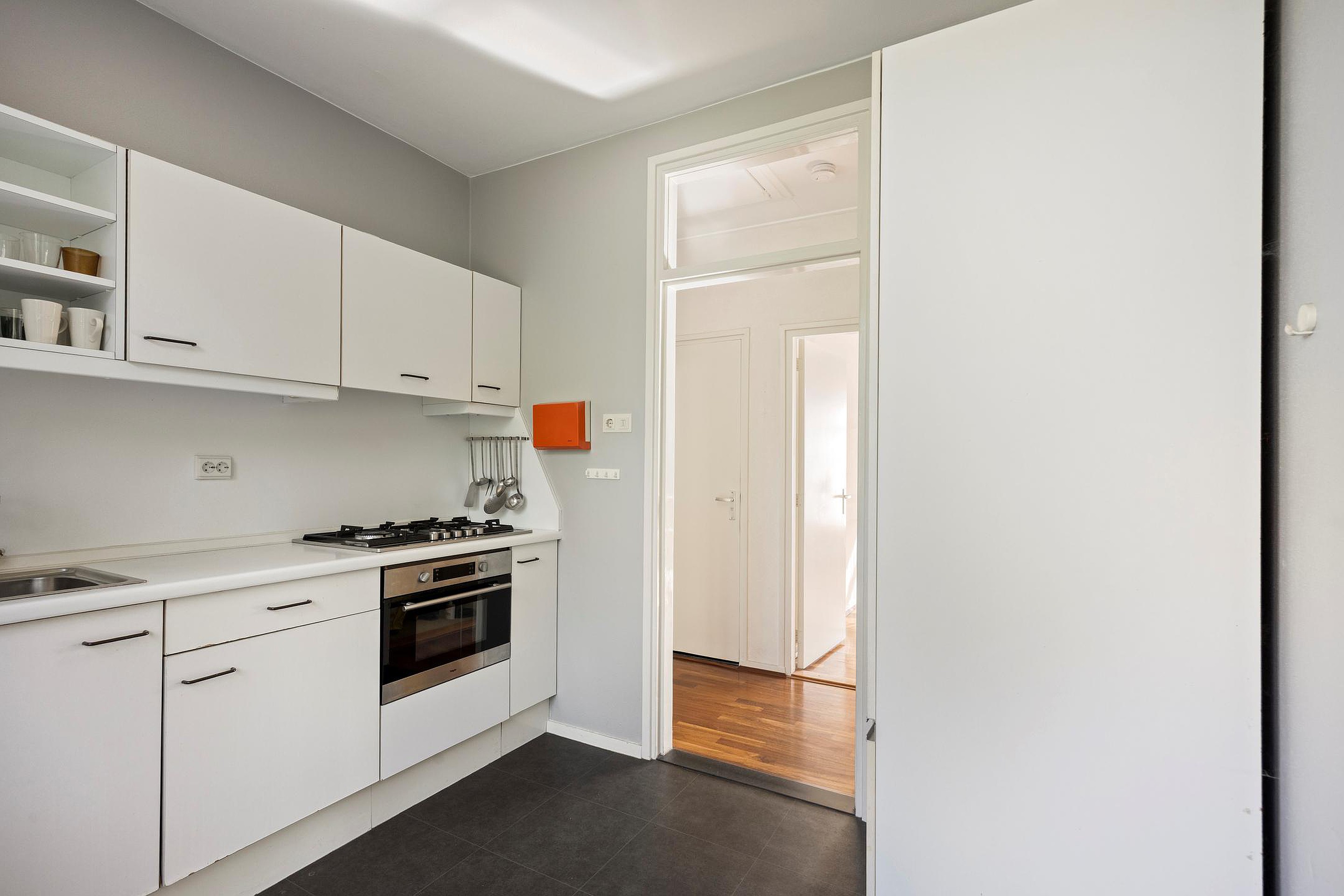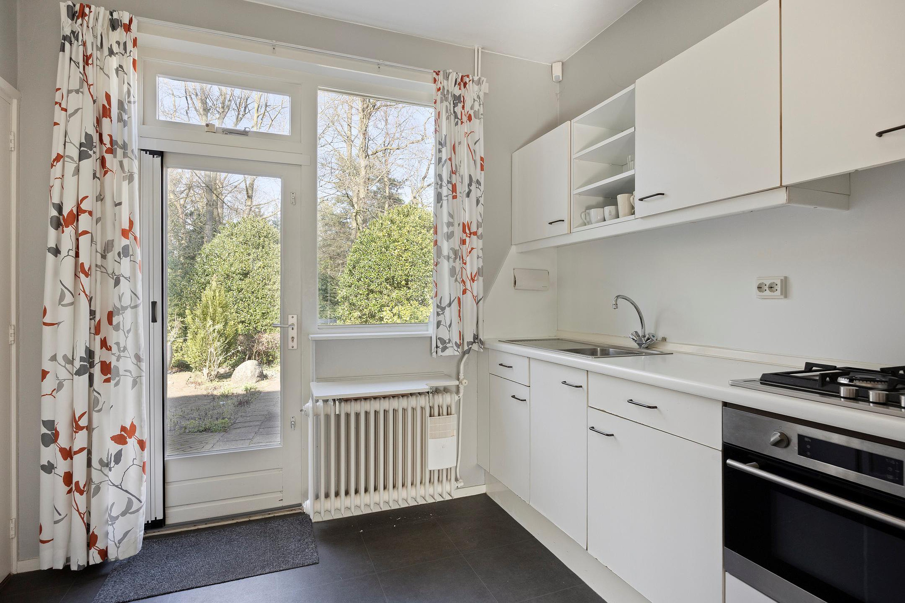 De afgesloten keuken grenst aan de hal en is praktisch ingericht met diverse inbouwapparatuur. U beschikt hier over een gasfornuis met afzuigkap, een spoelbak met kraan en voldoende werk- en opbergruimte. Daarnaast is de keuken voorzien van een ingebouwde ovencombinatie. De keuken biedt een fijne basis om naar wens verder te moderniseren. Eventueel is middels een verbouwing en/of aanbouw ook een grote open woonkeuken te realiseren.