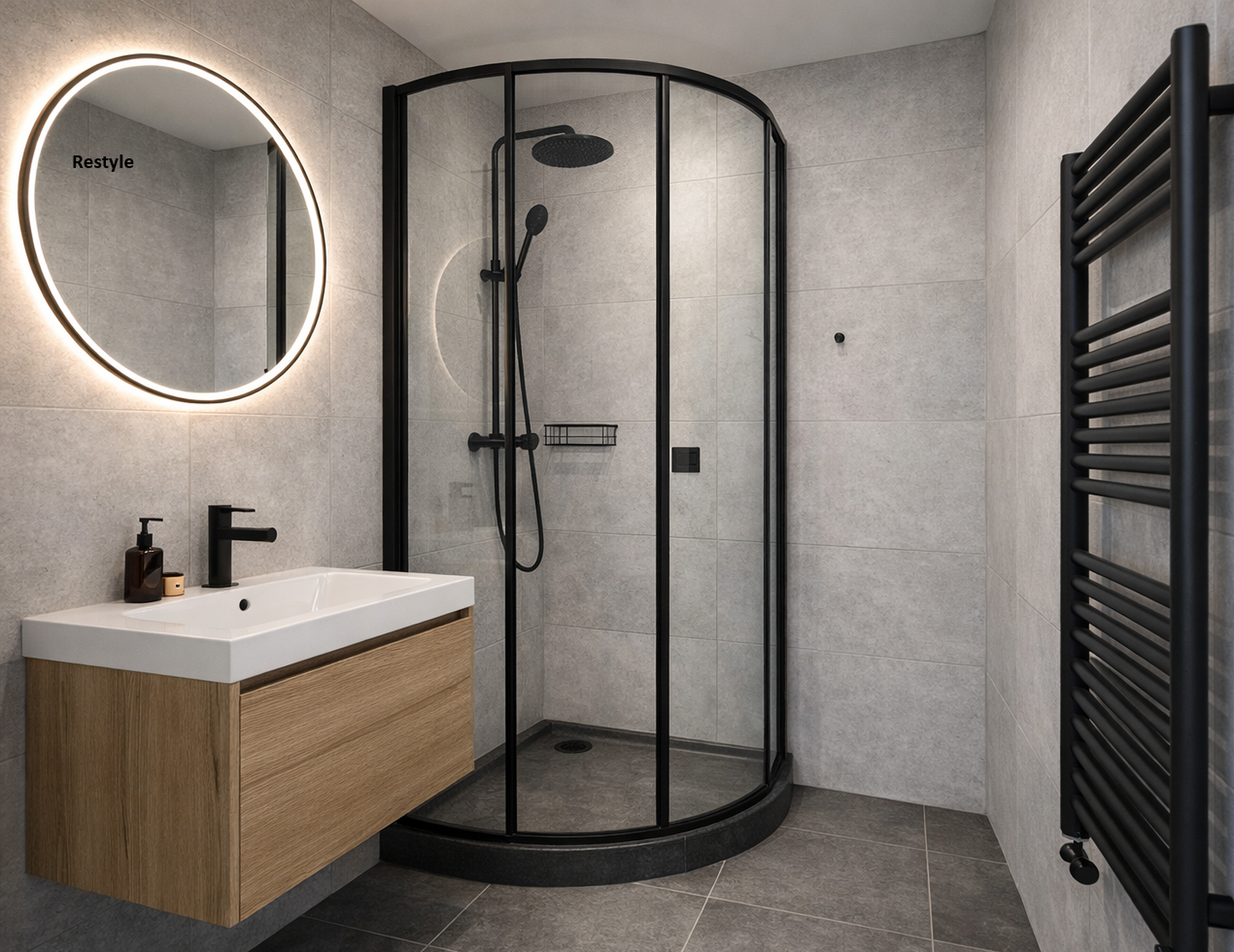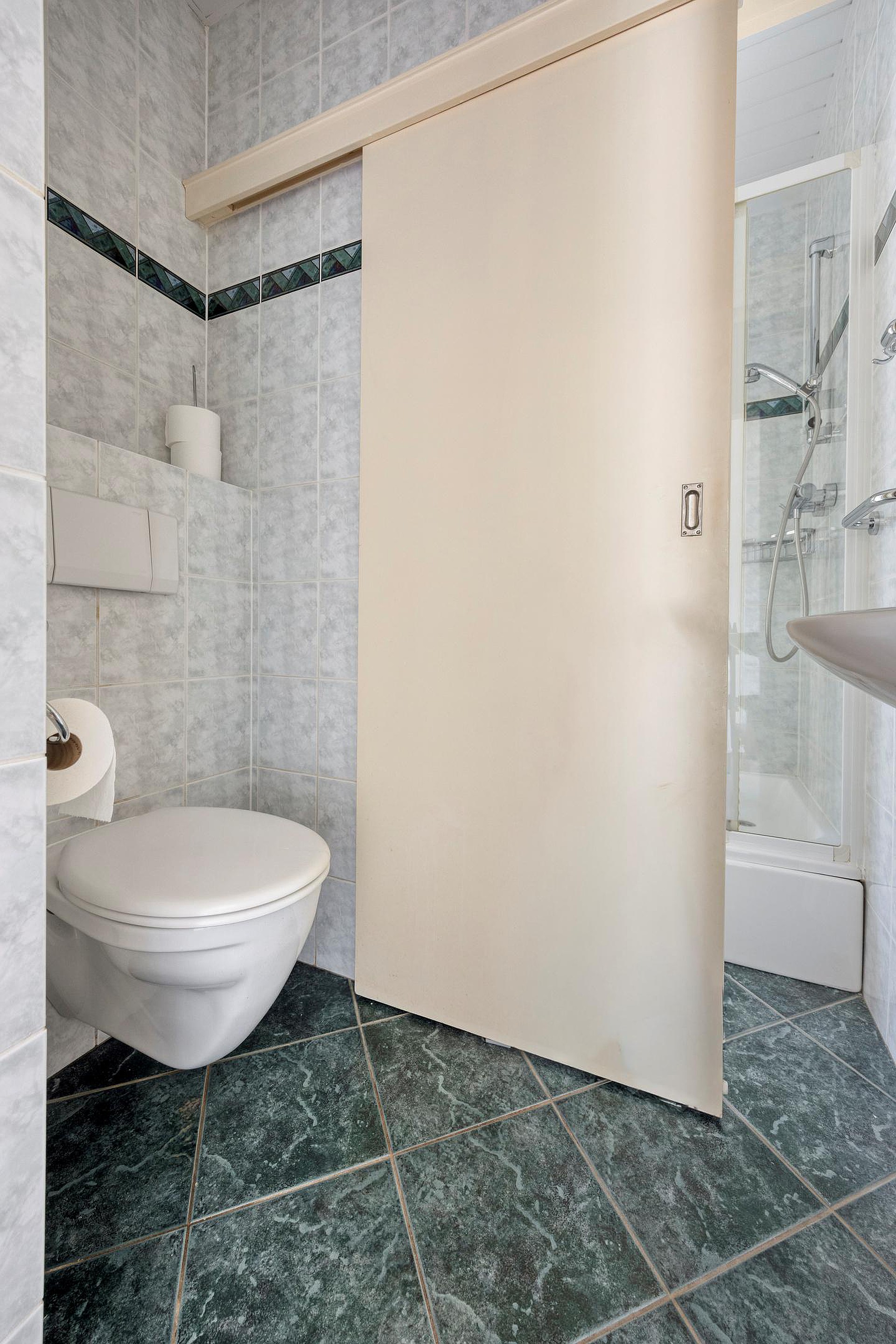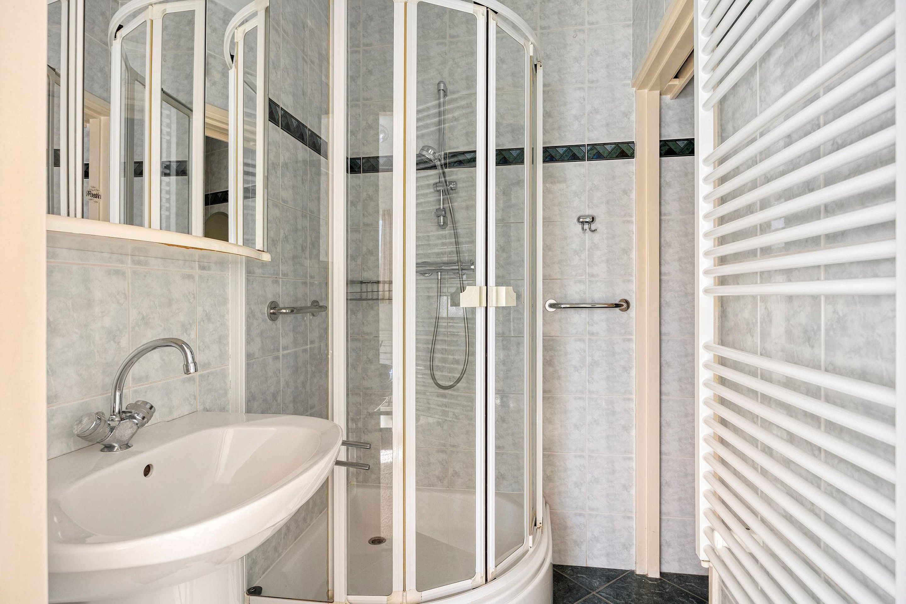 De badkamer is volledig betegeld en praktisch ingericht. U vindt hier een douchecabine, een wastafel met opbergmeubel, een handdoekradiator en een zwevend toilet. De ruimte verkeert in goede staat, maar biedt tevens mogelijkheden om deze naar eigen smaak te moderniseren en zo volledig aan te laten sluiten op uw woonwensen.