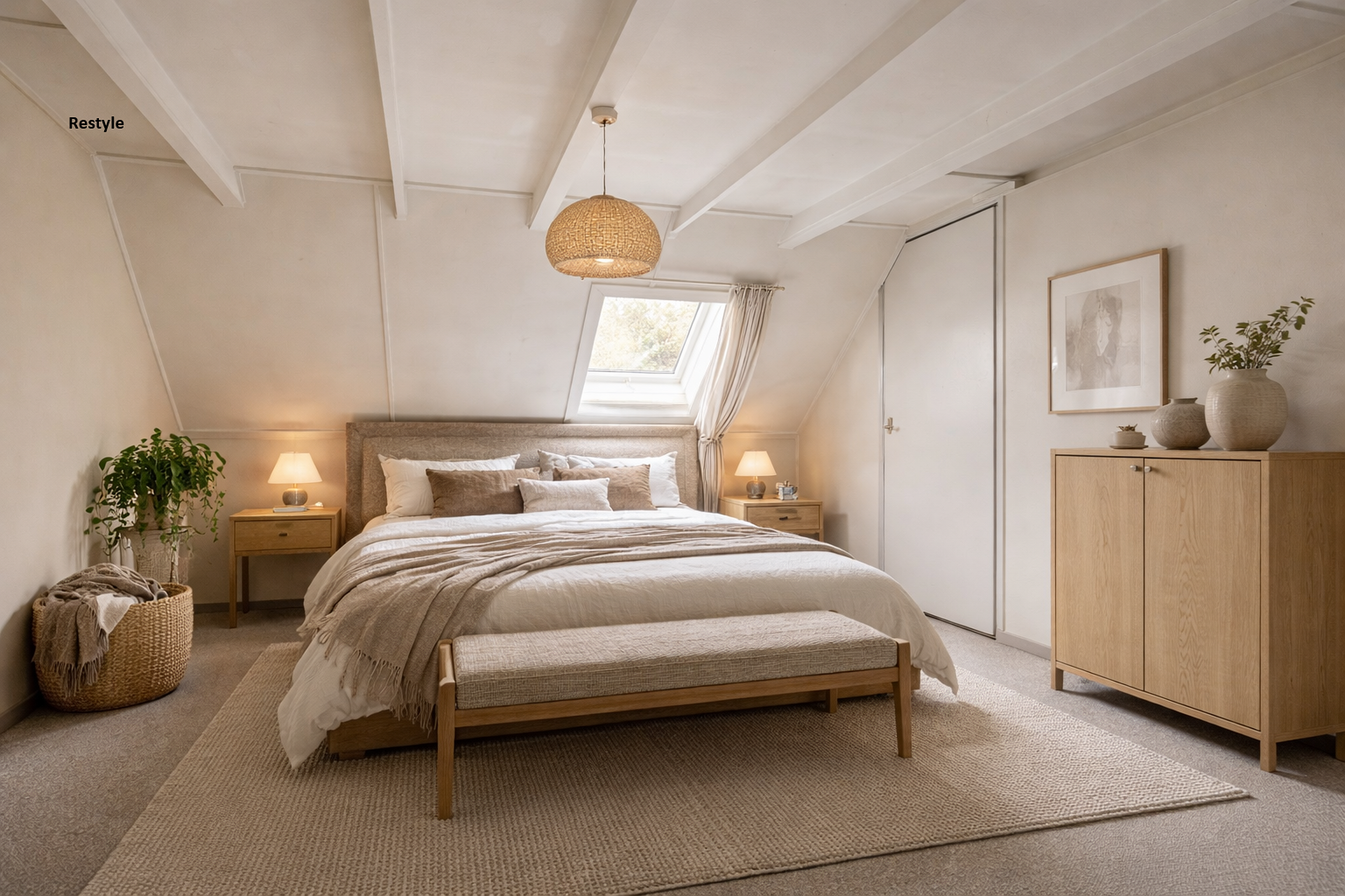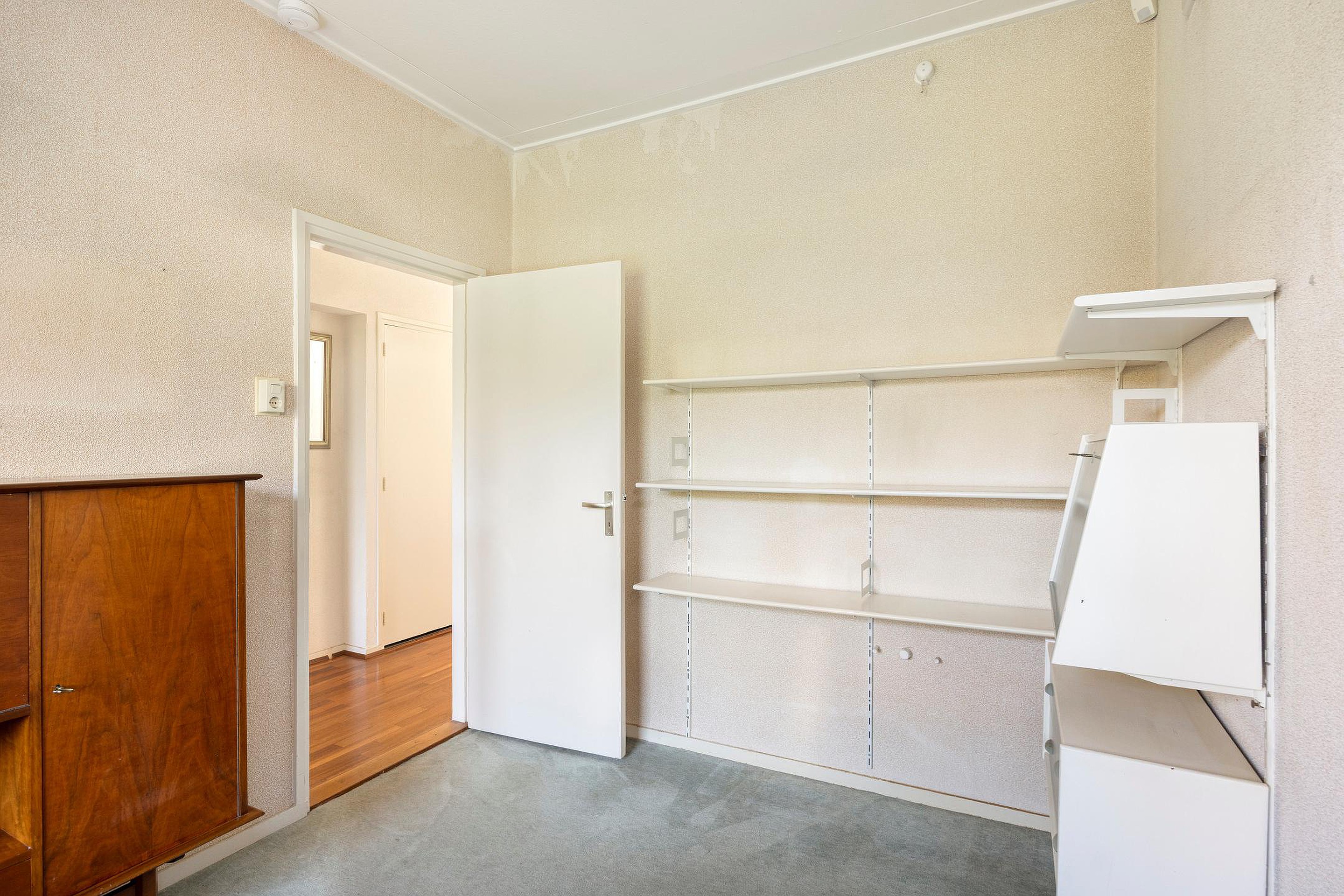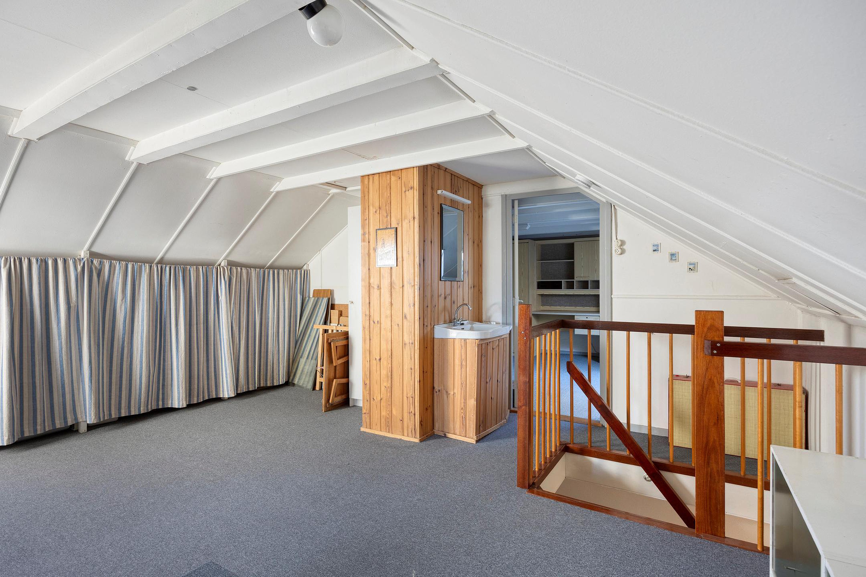 Op de eerste verdieping bevinden zich twee goed onderhouden slaapkamers die, ondanks de schuine wanden, verrassend ruim en praktisch zijn ingericht. Beide kamers bieden voldoende ruimte voor een bed, kast en bureau en zijn daarmee volwaardige leefruimtes. Of u nu extra slaapkamers nodig heeft of een werk- of hobbyruimte wenst, deze kamers bieden u alle mogelijkheden en vormen een prettige plek om te ontspannen.