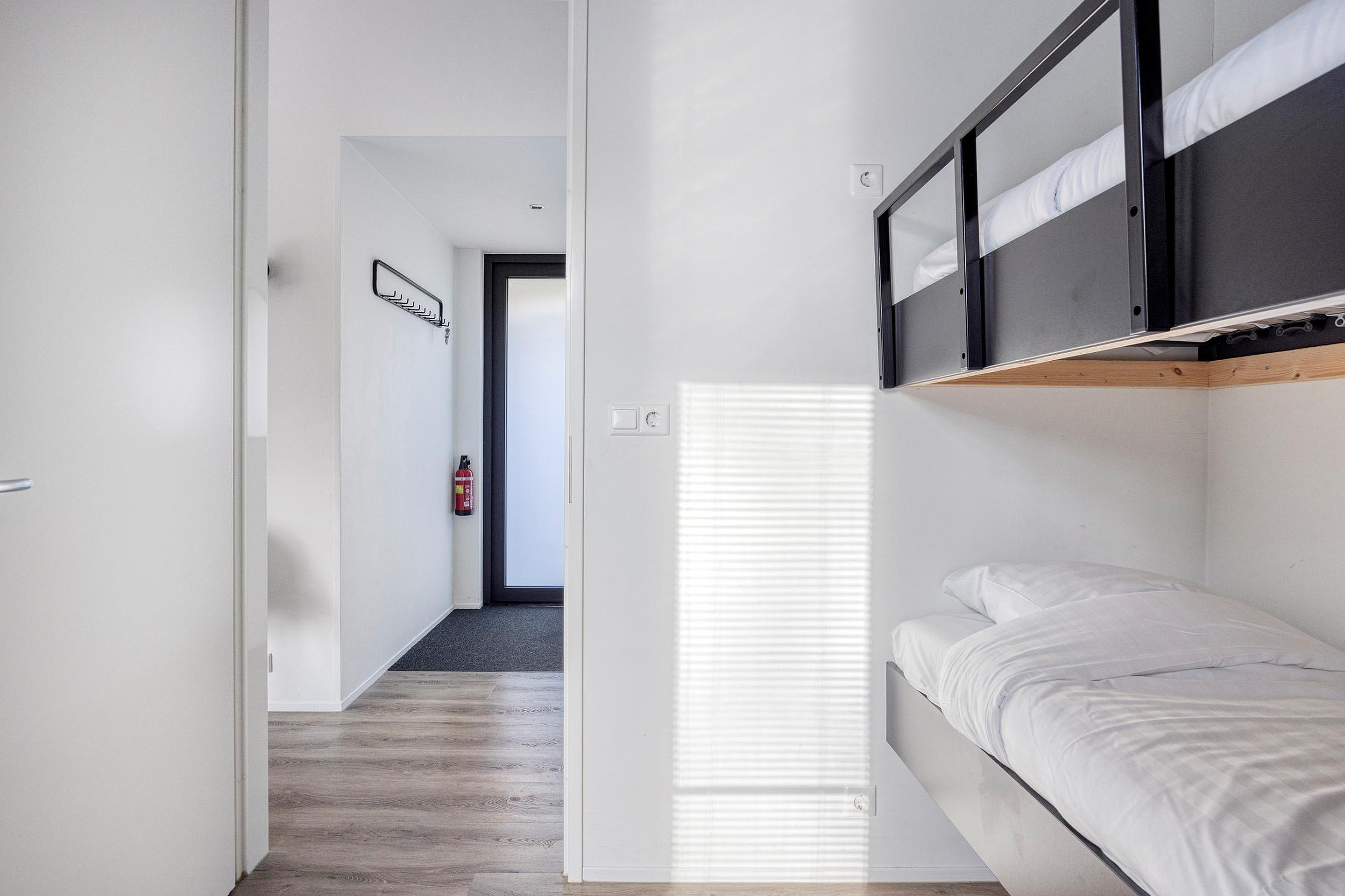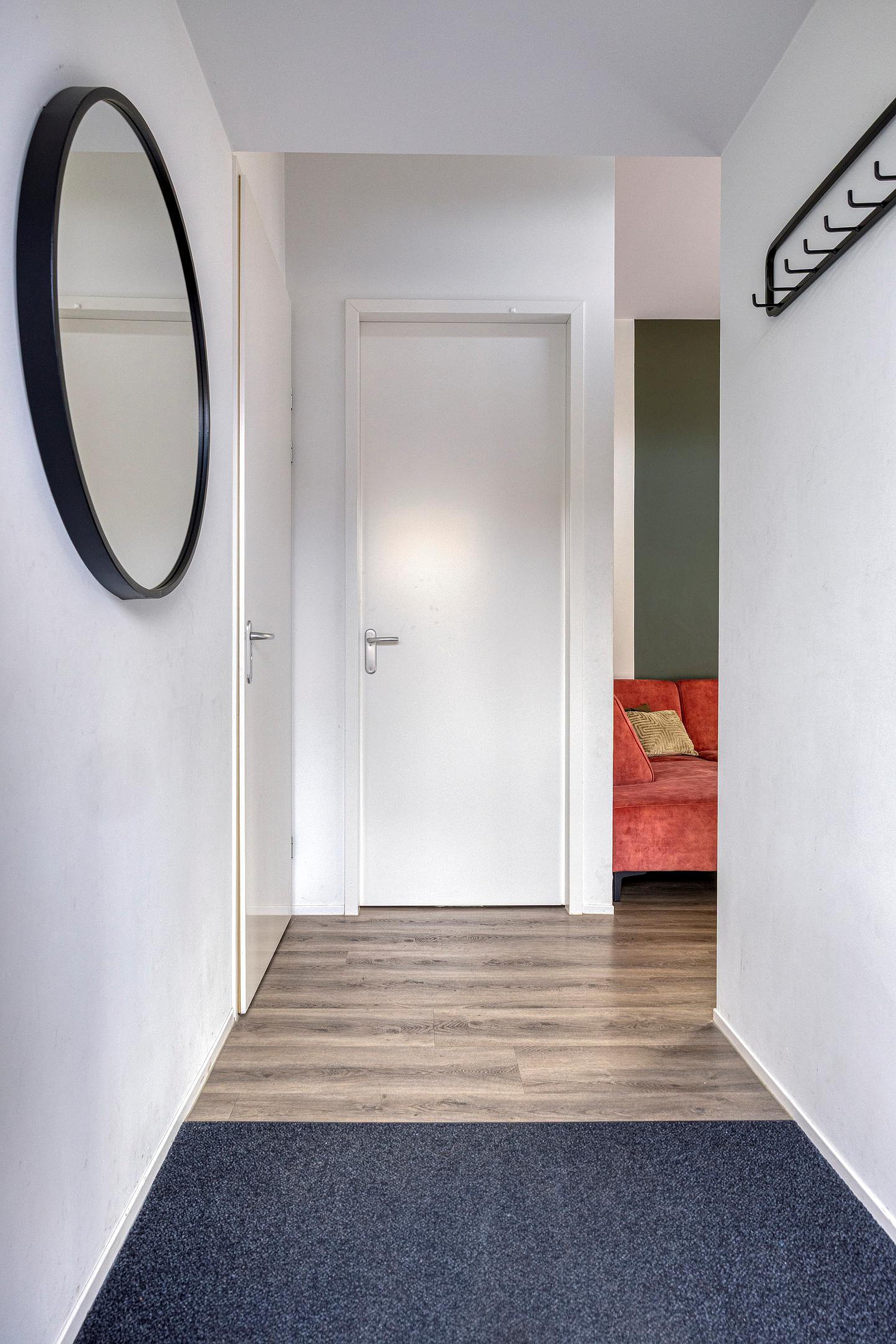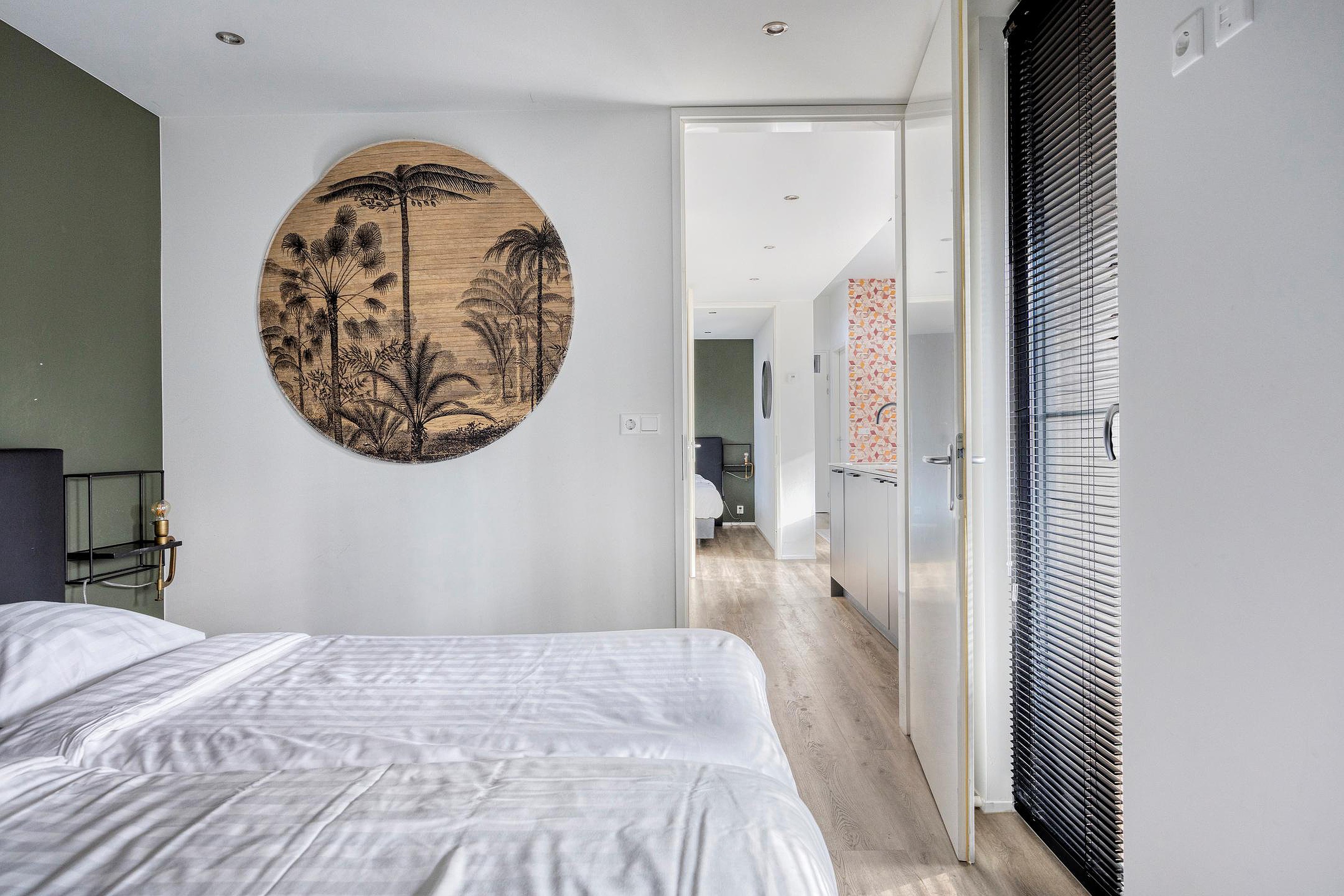 De drie slaapkamers zijn verdeeld over de woning, wat zorgt voor een prettige mate van privacy. Twee slaapkamers zijn voorzien van een ingebouwde wandkast, en alle kamers genieten van een nette afwerking. Centraal aan de rechterzijde ligt de badkamer, uitgevoerd met een inloop regendouche, een wastafelmeubel, wandcloset en een groot draai-kiepraam voor ventilatie en daglicht.