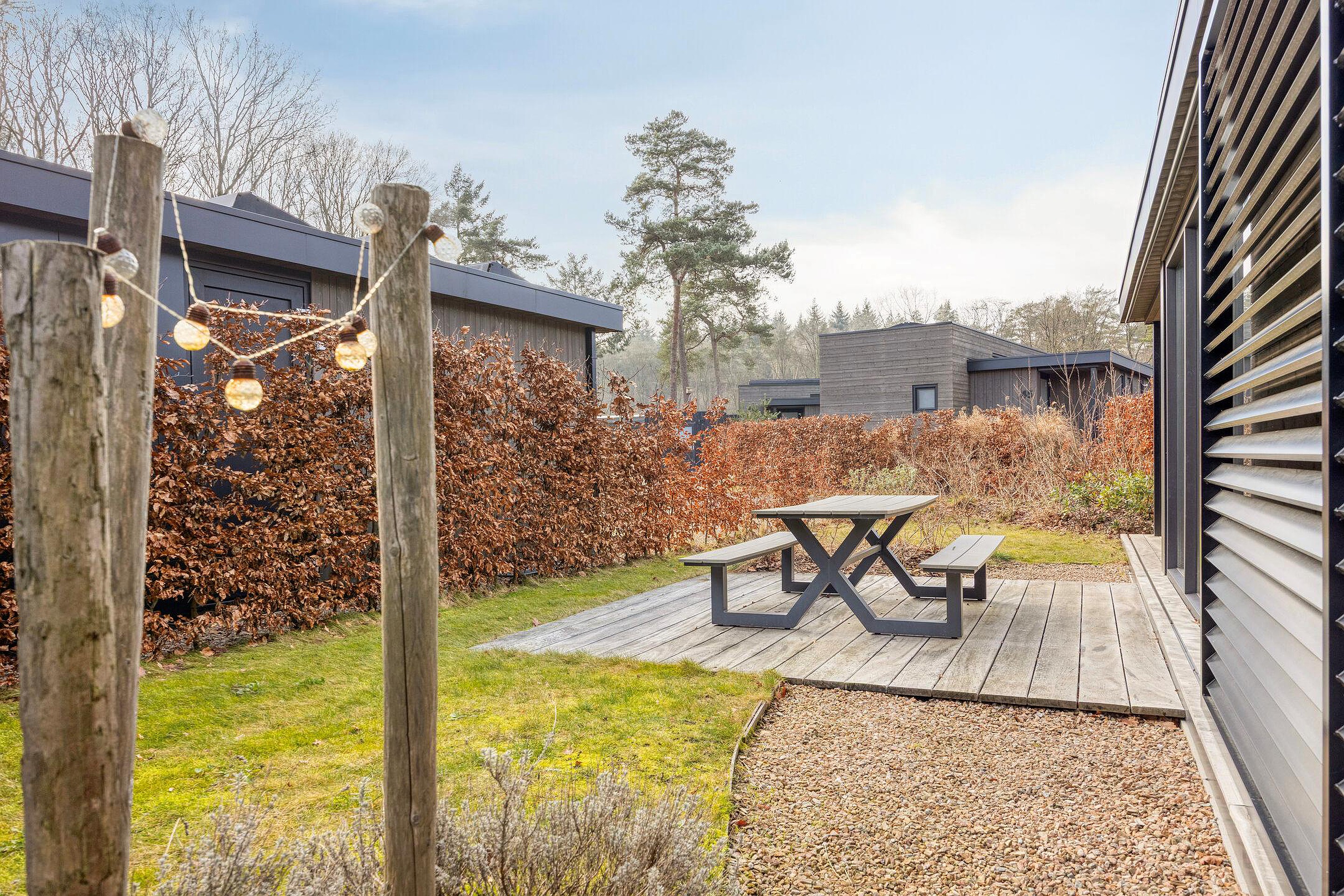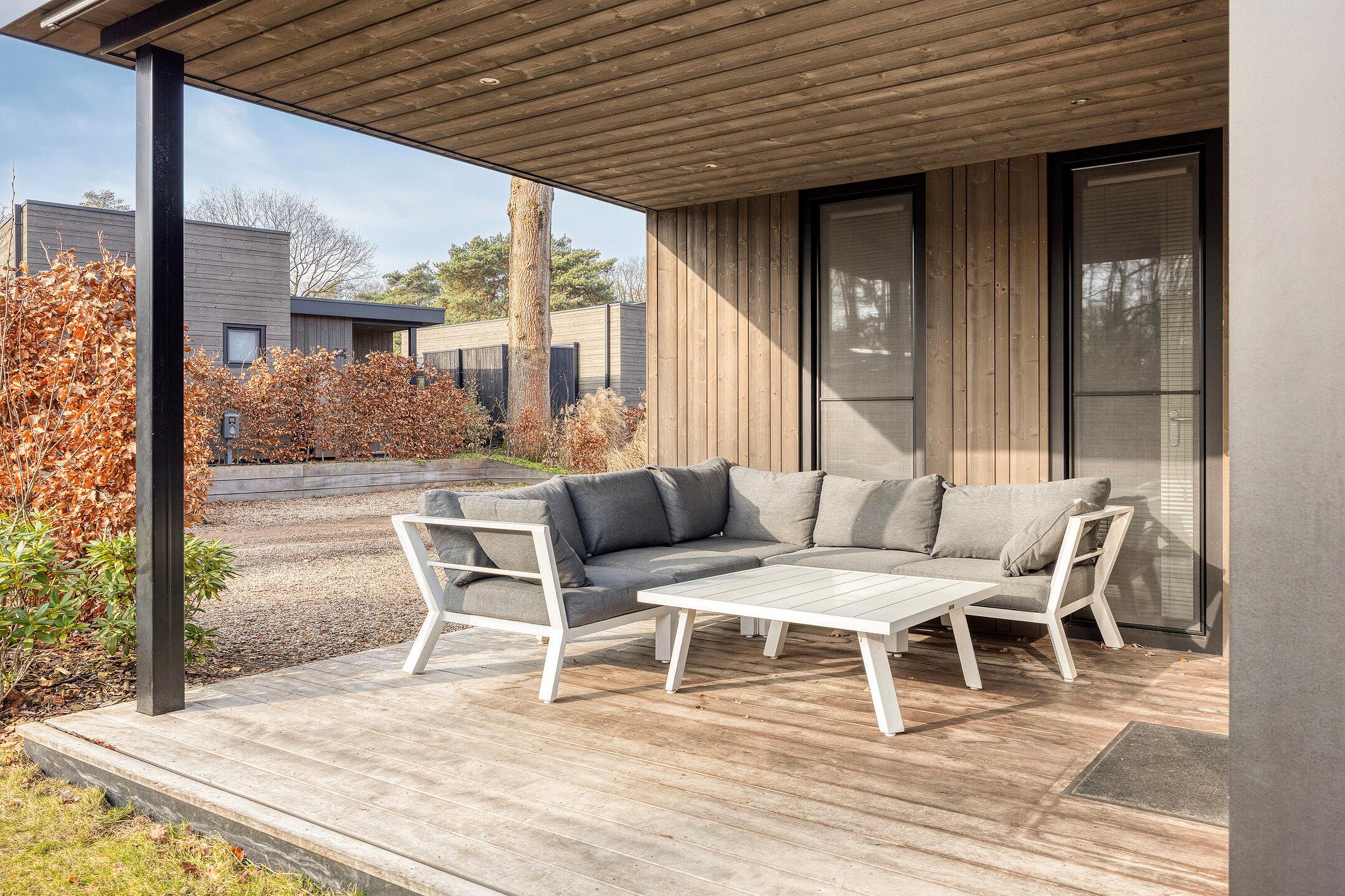 Verzorgde en moderne recreatiewoning, met een fijne tuin die veel privacy biedt