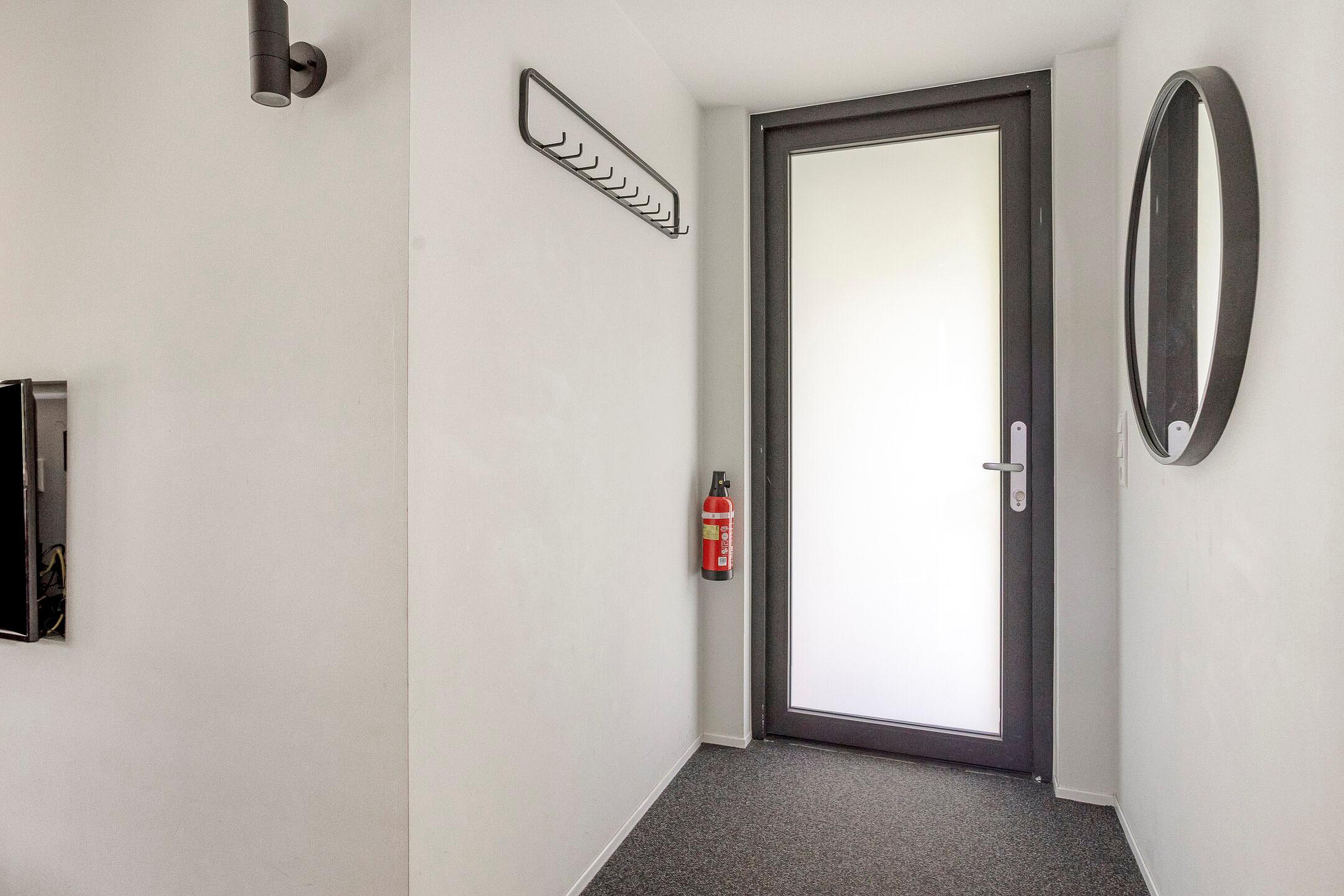 De woning is bereikbaar via de eigen oprit, geschikt voor zowel auto als fiets. Binnen stapt u de hal in, een praktische ruimte die toegang geeft tot alle vertrekken van de woning.