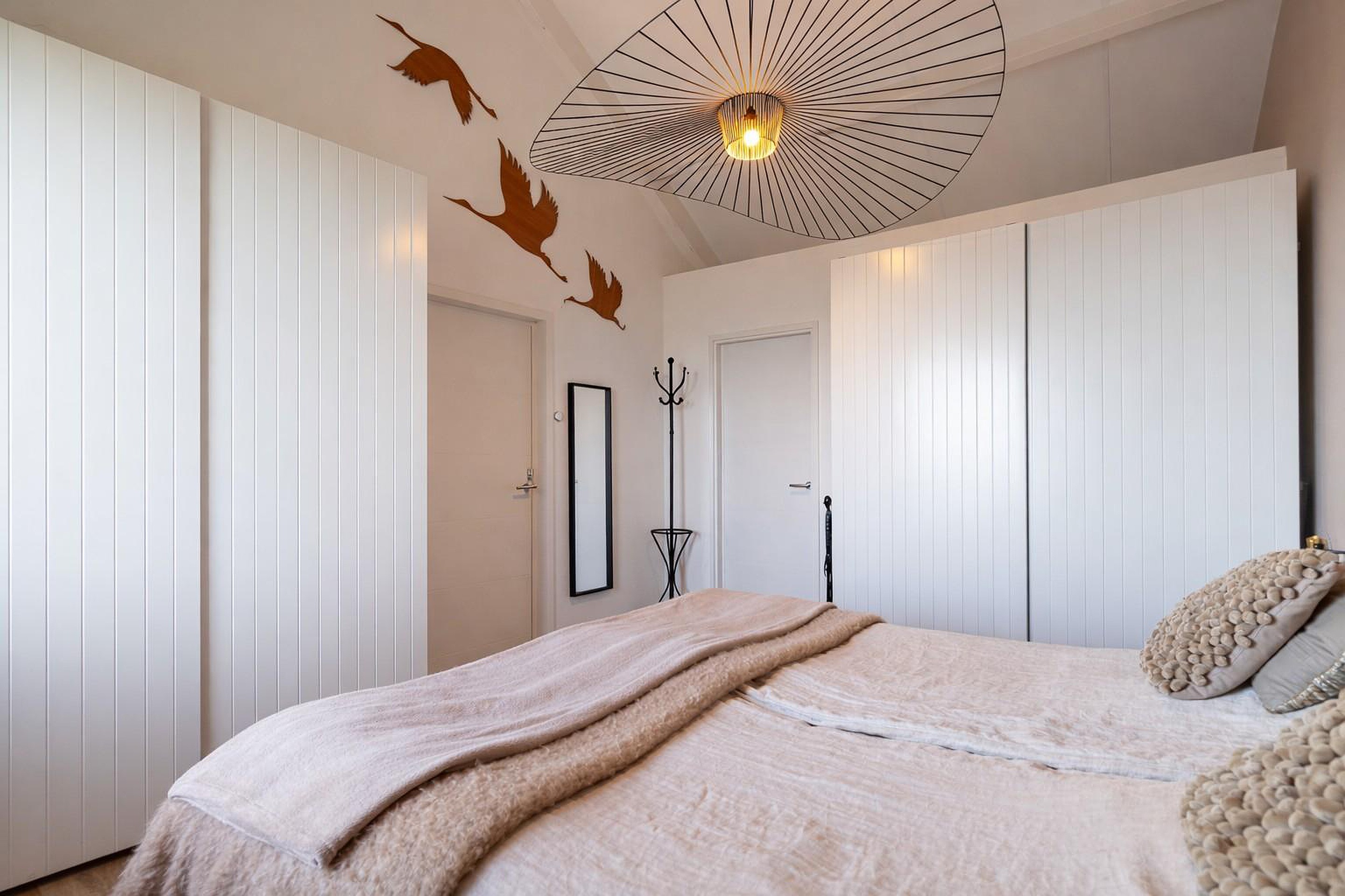 Eerste verdieping Via de vaste (design-)trap bereikt u de verrassend ruime eerste verdieping, die is ingericht als volwaardige derde slaapkamer. Deze sfeervolle ruimte strekt zich uit over de volledige lengte van de woning en wordt gekenmerkt door de zichtbare kapconstructie, de prettige hoogte (circa 1,93 m in het midden) en het aangename daglicht dankzij de dakramen.