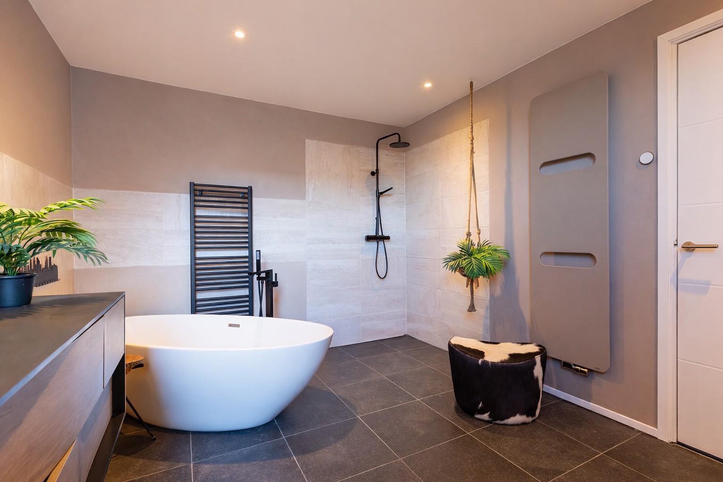 Verder vindt u op de begane grond twee ruime slaapkamers en twee badkamers. De stijlvolle, luxe badkamer (2019) is voorzien van een ligbad, inloopdouche, vrijhangend toilet en modern sanitair. De hoogwaardige materialen en rustige kleurstelling dragen bij aan de luxe uitstraling van de woning. Daarnaast beschikt de woning over een tweede badkamer (2013), ideaal voor logees, gezinssituaties of extra comfort. In totaal zijn er maar liefst drie toiletten in de woning (waarvan één in de luxe badkamer).