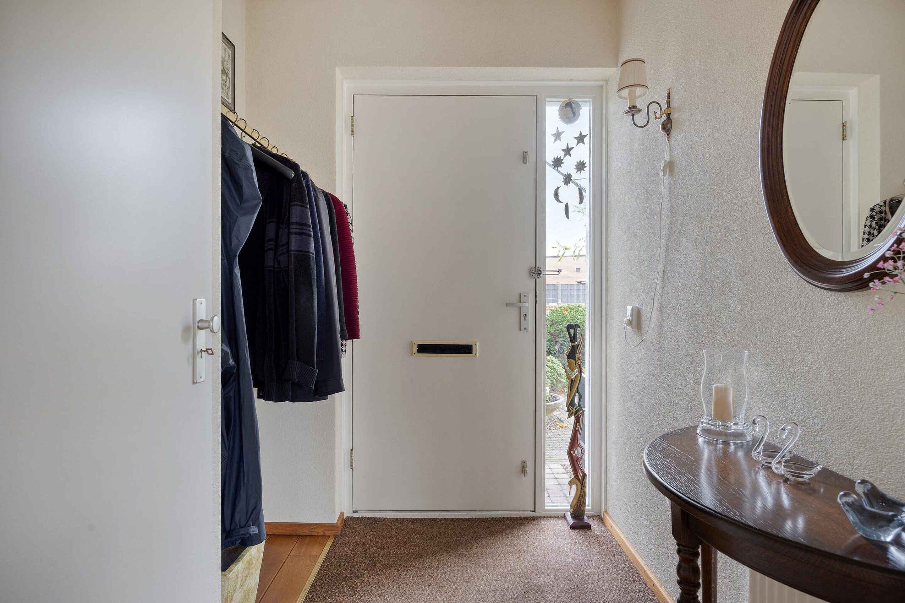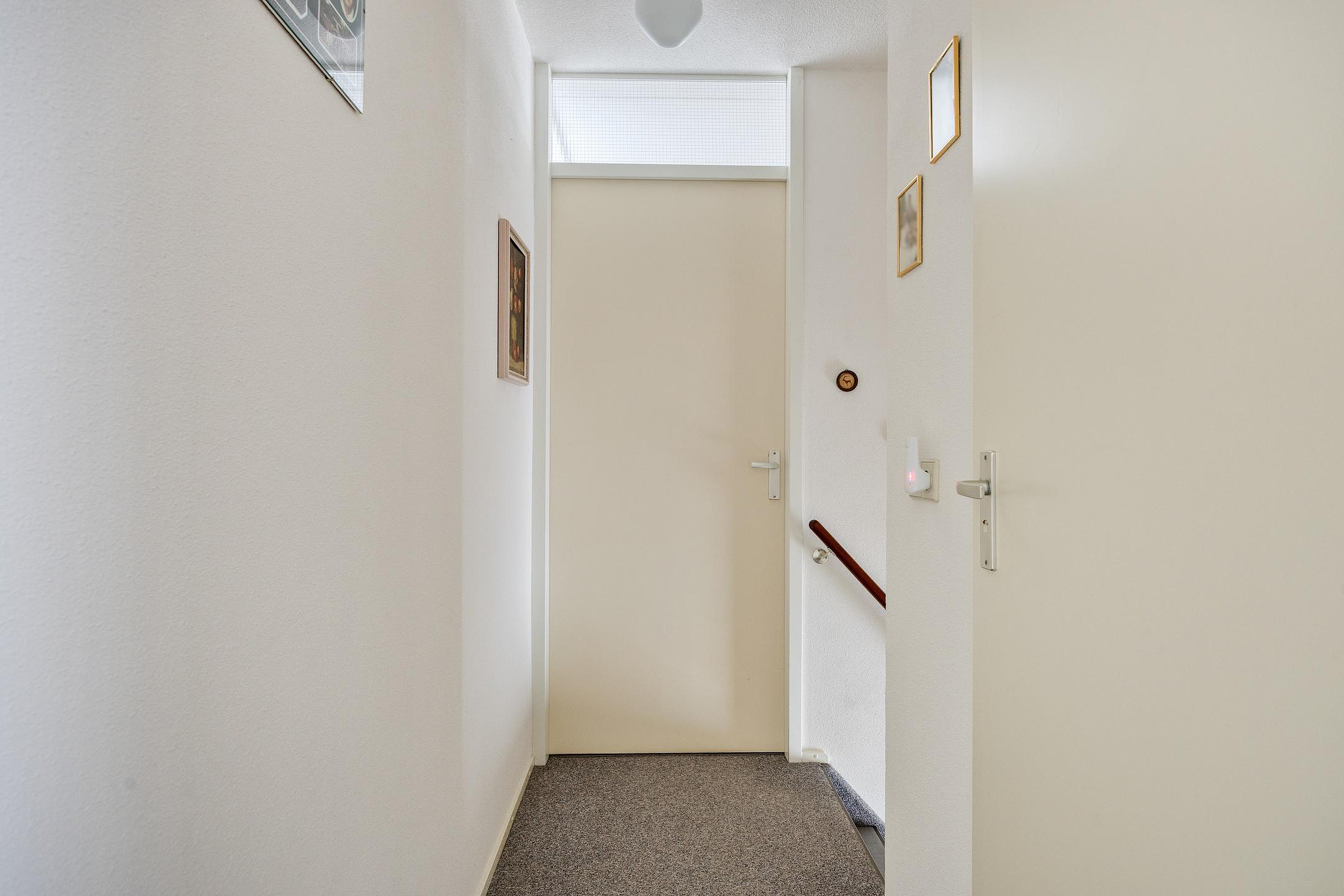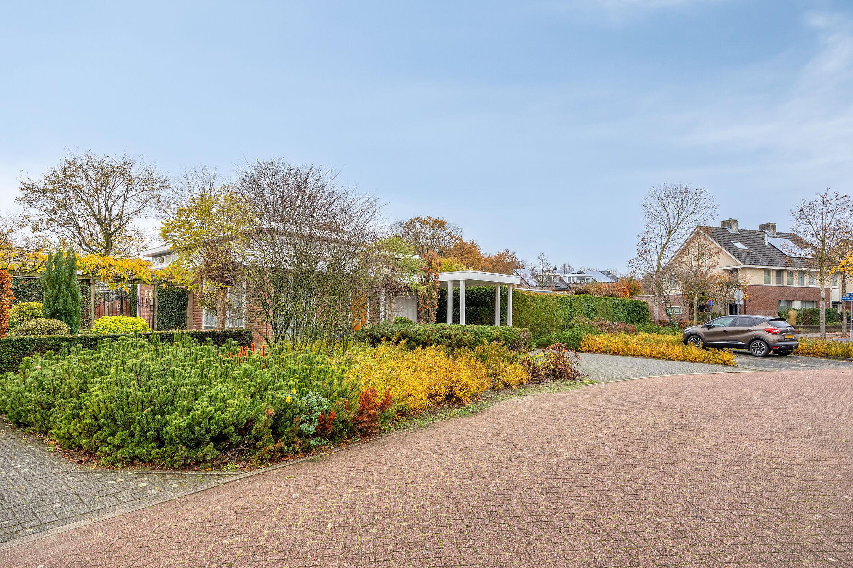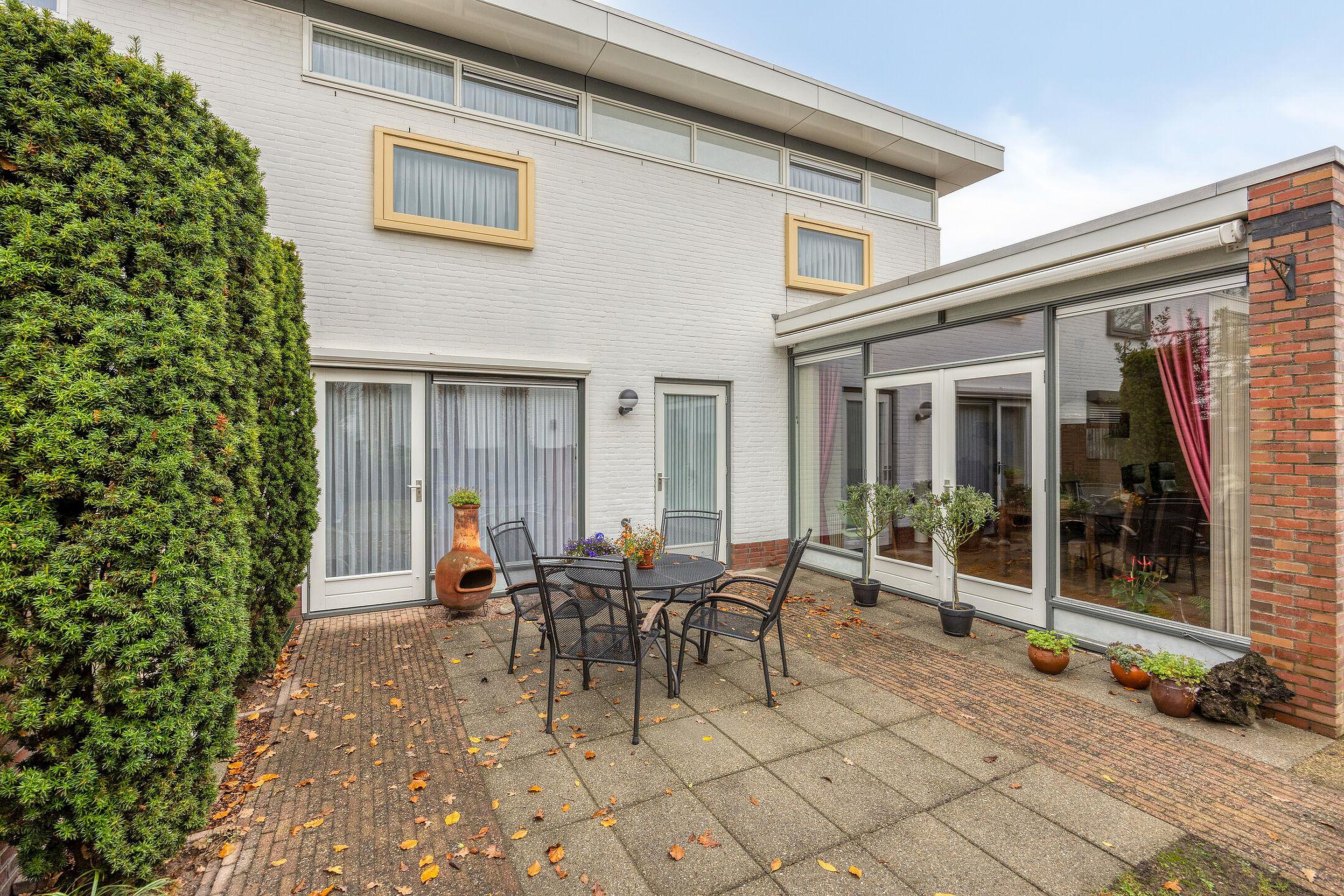 Begane grond Via de overdekte entree bereikt u de hal met meterkast, die toegang geeft tot de L-vormige woonkamer. Deze royale leefruimte is voorzien van een gashaard en airconditioning, en biedt volop ruimte voor zowel een zit- als eetgedeelte. De gestucte wanden en plafonds, gecombineerd met een prachtige massief eikenhouten vloer en grote raampartijen, zorgen voor een warme en lichte sfeer. Via de openslaande deuren bereikt u het terras en de fraai aangelegde achtertuin. De halfopen keuken is licht van kleur en beschikt over een hoekopstelling met veel opbergruimte en diverse inbouwapparatuur, waaronder een 4-pits gaskookplaat, afzuigkap, koelkast en vaatwasser. Aansluitend vindt u de praktische bijkeuken met de cv-combiketel en de aansluitingen voor wasapparatuur. Vanuit de bijkeuken is er directe toegang tot de inpandige garage. Een tussenportaal vanuit de woonkamer leidt naar het toilet, de begane grond slaapkamer en de trap naar de eerste verdieping. De slaapkamer is netjes afgewerkt gestucte wanden en zonwerende screens, en heeft via een loopdeur direct toegang tot de achtertuin. De moderne badkamer (2023) beschikt over een toilet, douchecabine en wastafel en is en suite verbonden met de slaapkamer.
