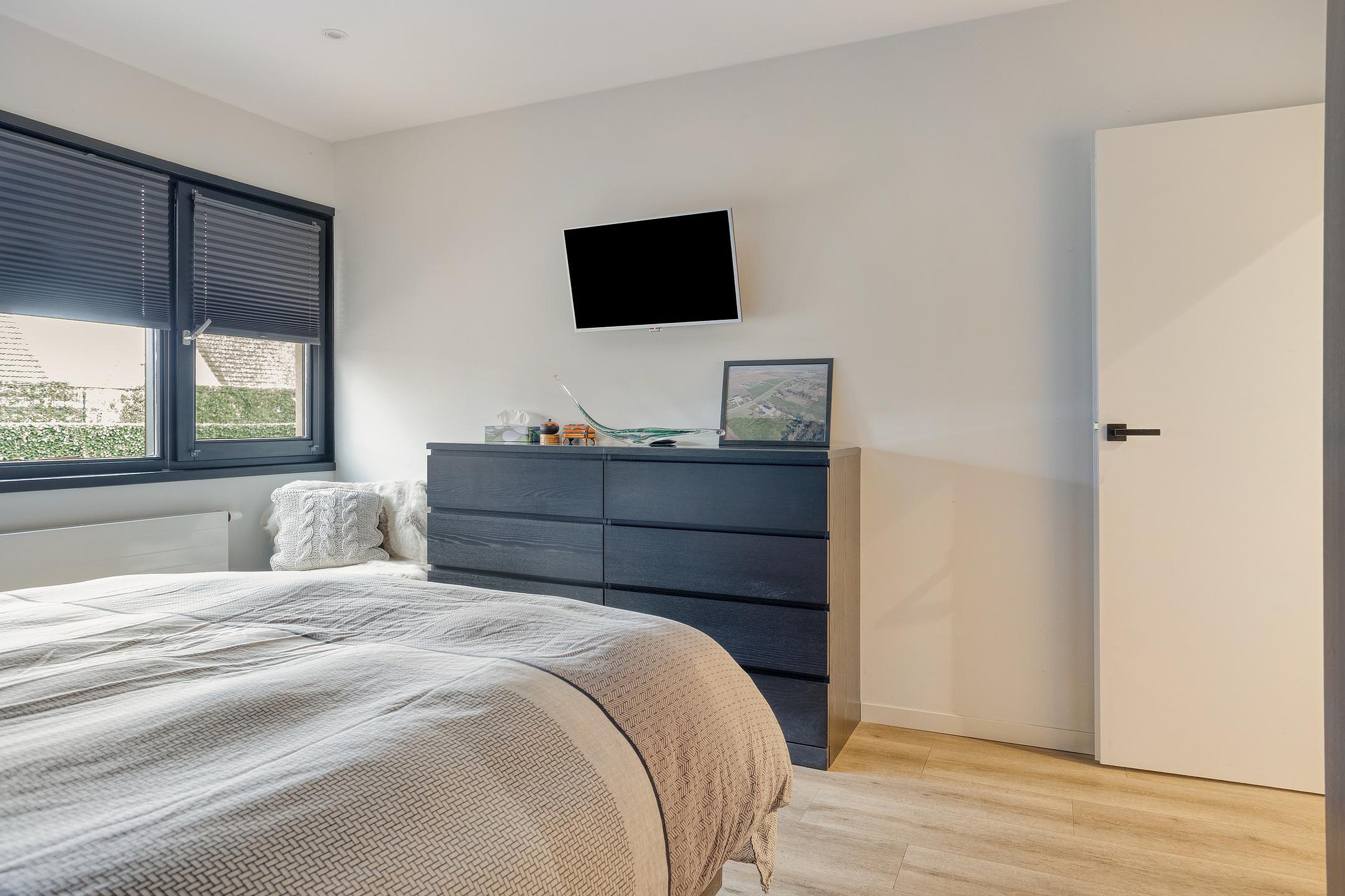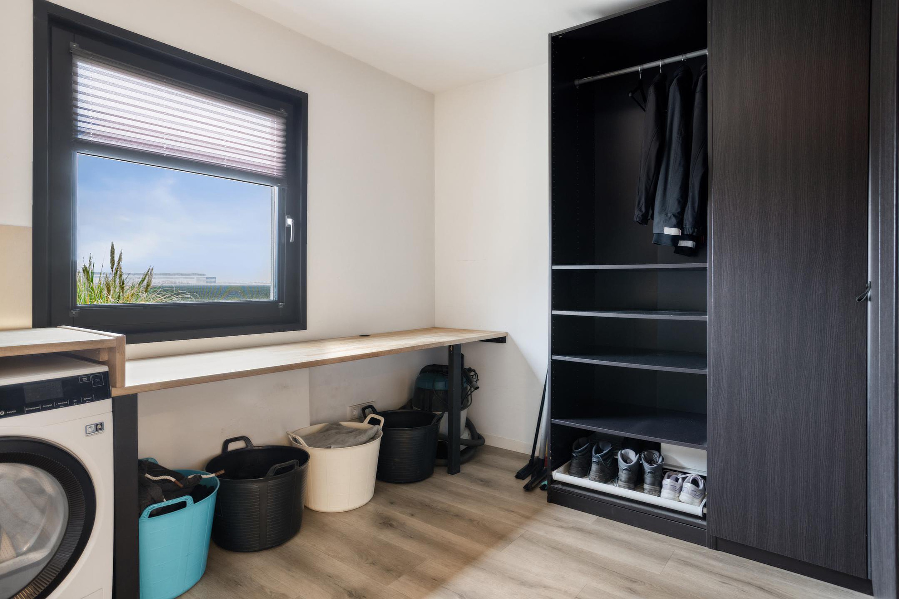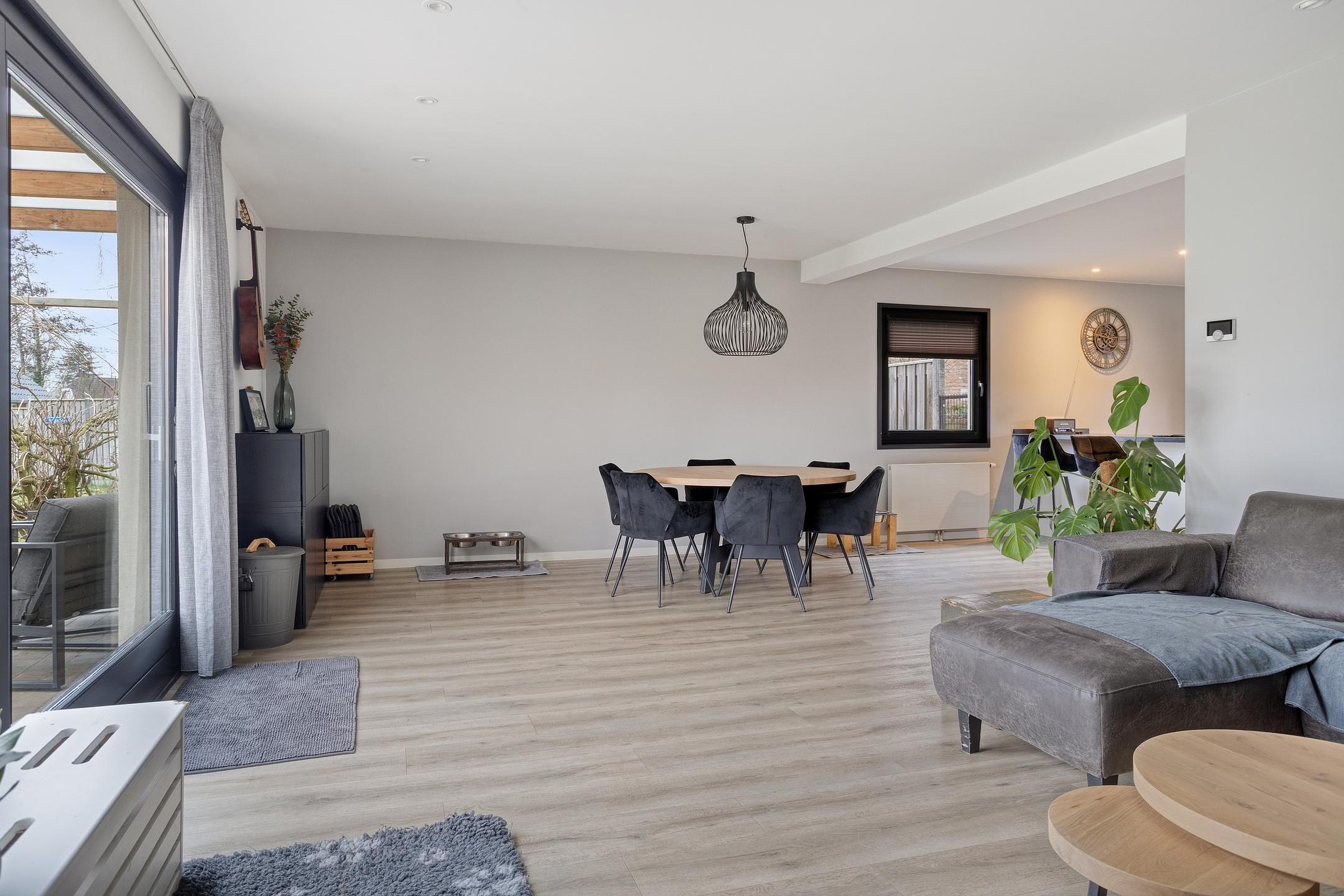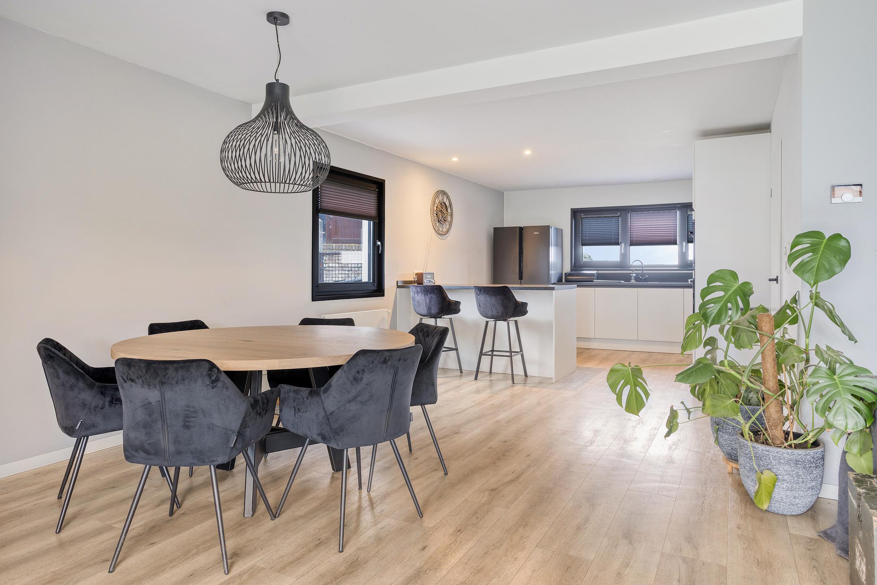 - De living: Een lichte, royale woonkamer met een directe verbinding naar de open keuken. Dankzij de schuifpui aan de achterzijde loopt binnen naadloos over in het buitenleven op het overdekte terras.