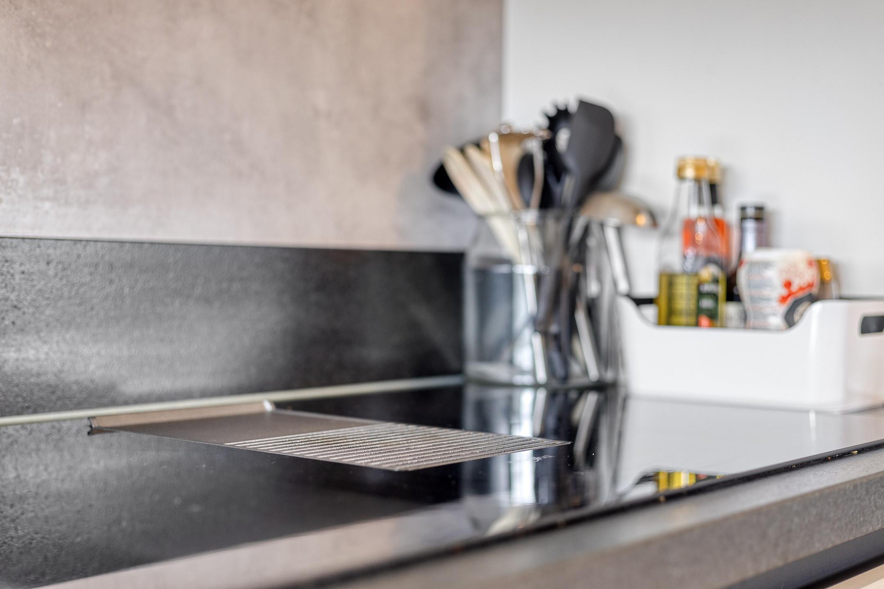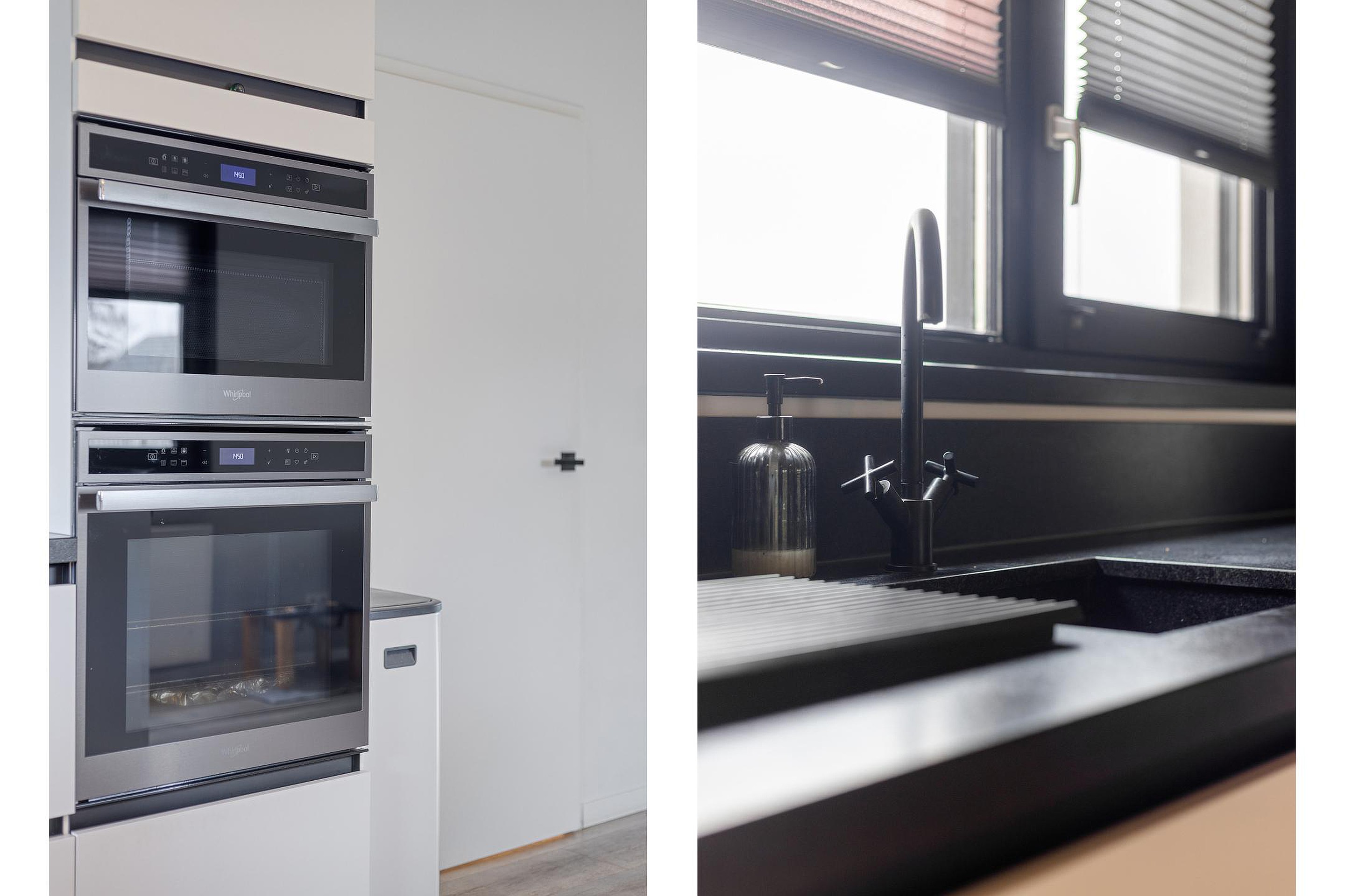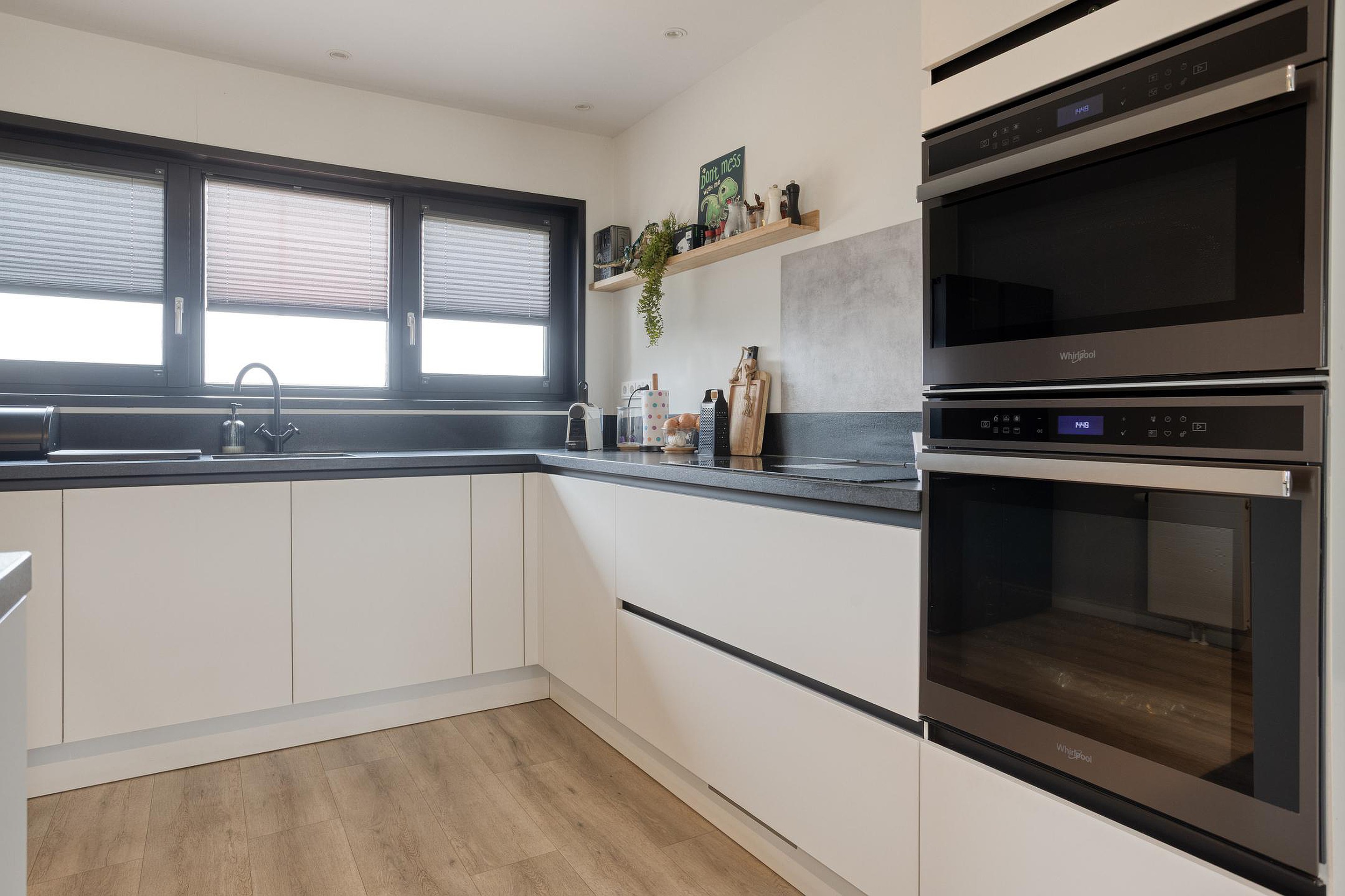 - De keuken: Een moderne L-opstelling mét eiland, voorzien van alle gemakken (inductie, combi-oven, oven en vaatwasser). Tijdens het koken geniet u van een weids uitzicht over het landschap.