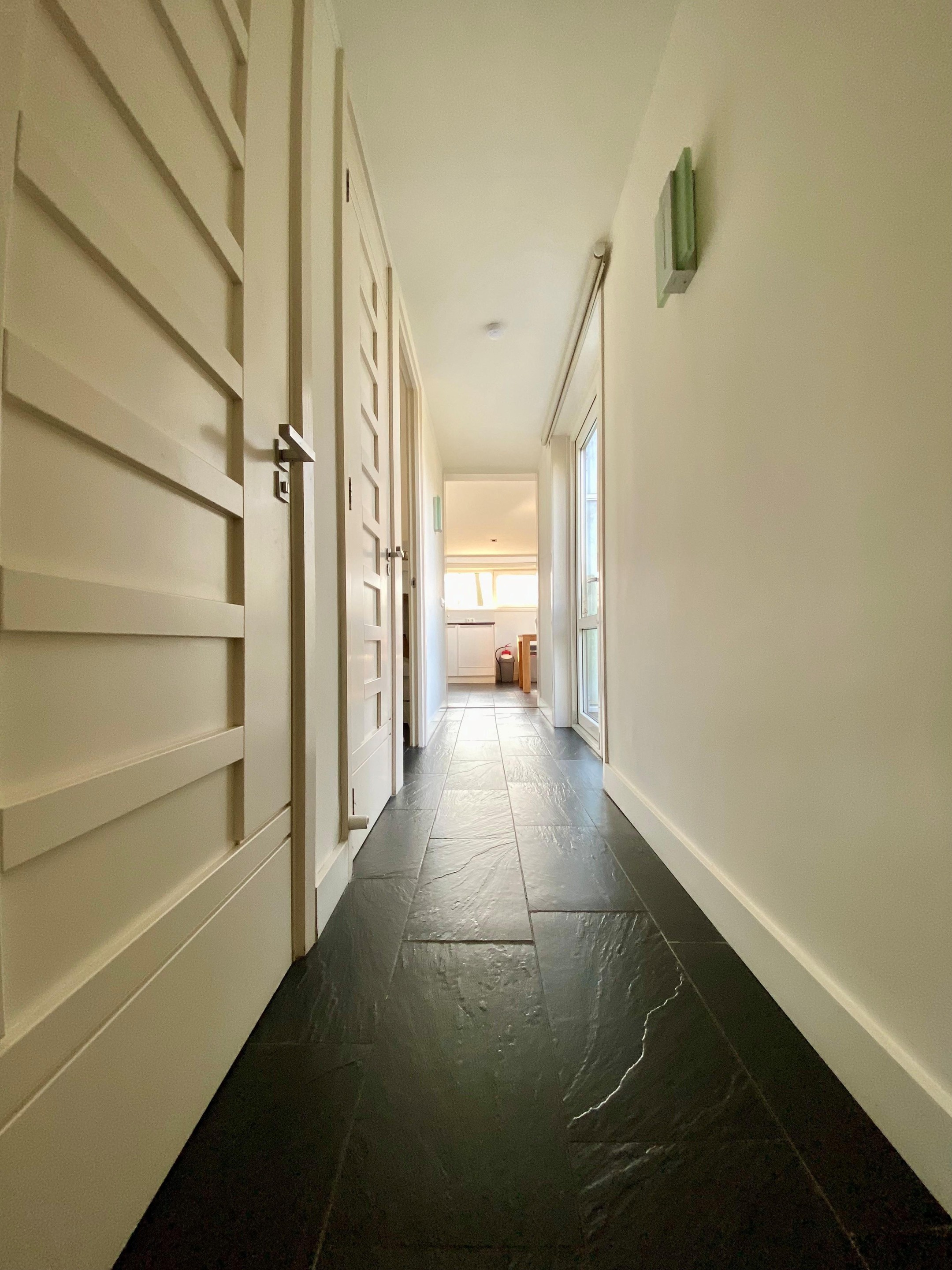 Via de entreehal, die toegang geeft tot alle vertrekken, betreedt u de woning. De gehele begane grond is voorzien van comfortabele vloerverwarming en een nette plavuizenvloer.