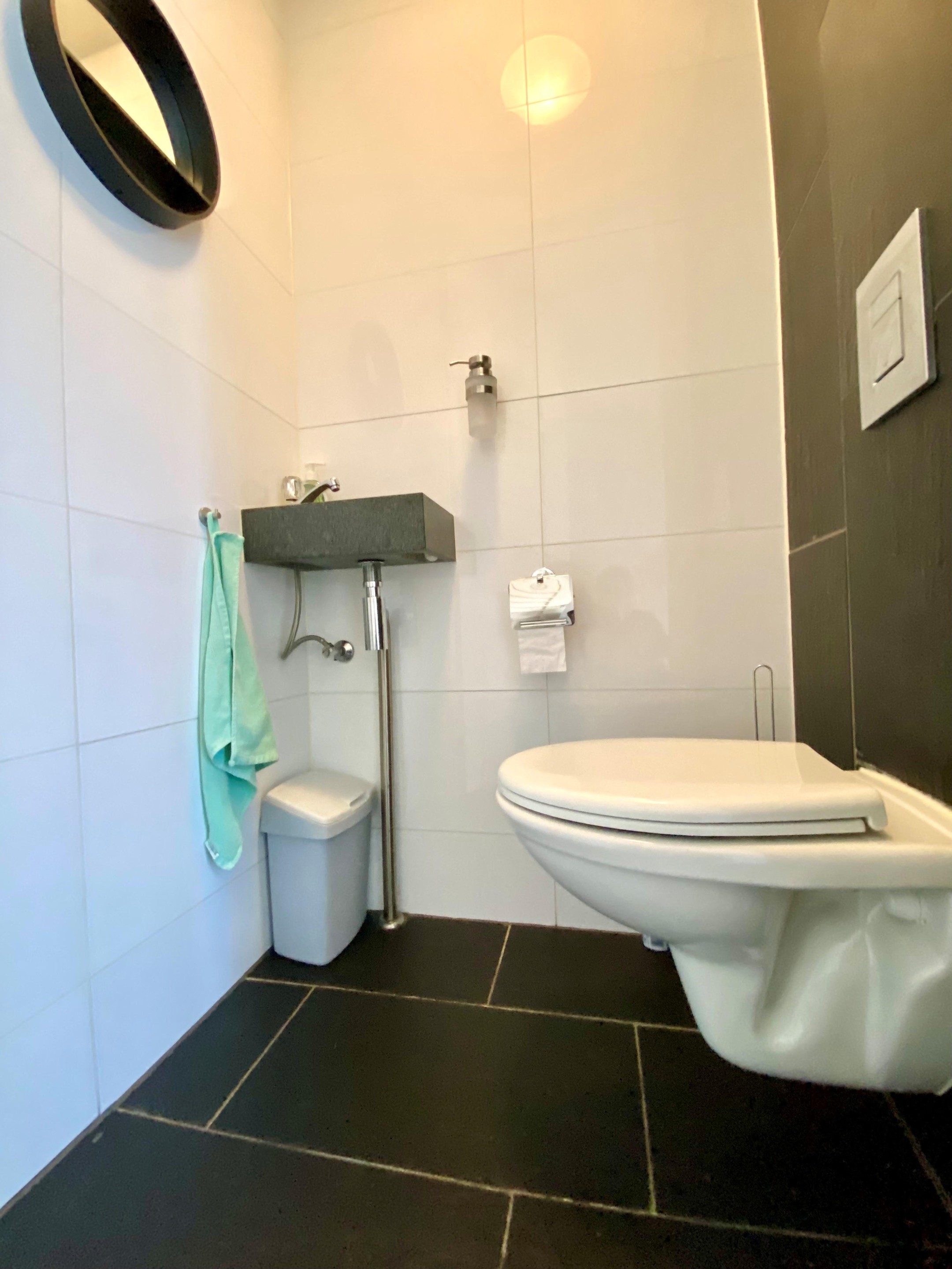 Daarnaast is er een separate toiletruimte met fonteintje en een praktische inpandige berging met CV-ketel.