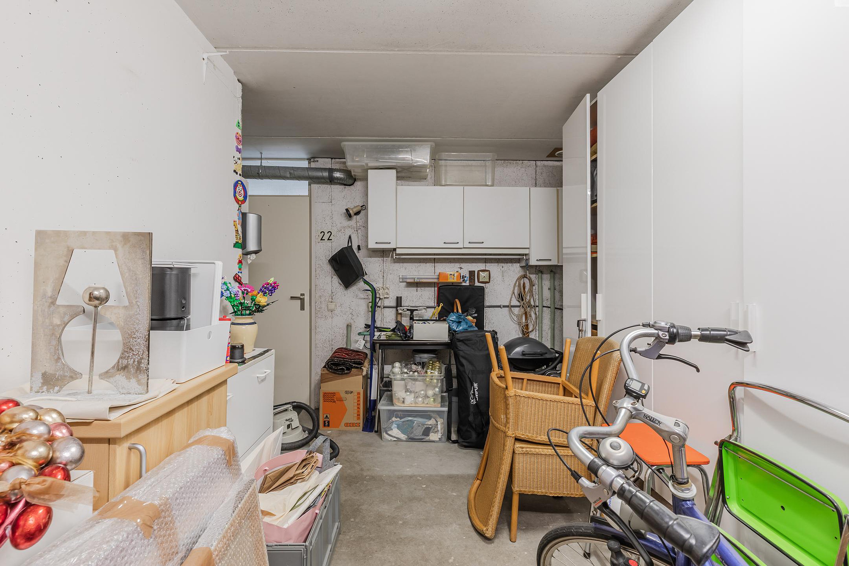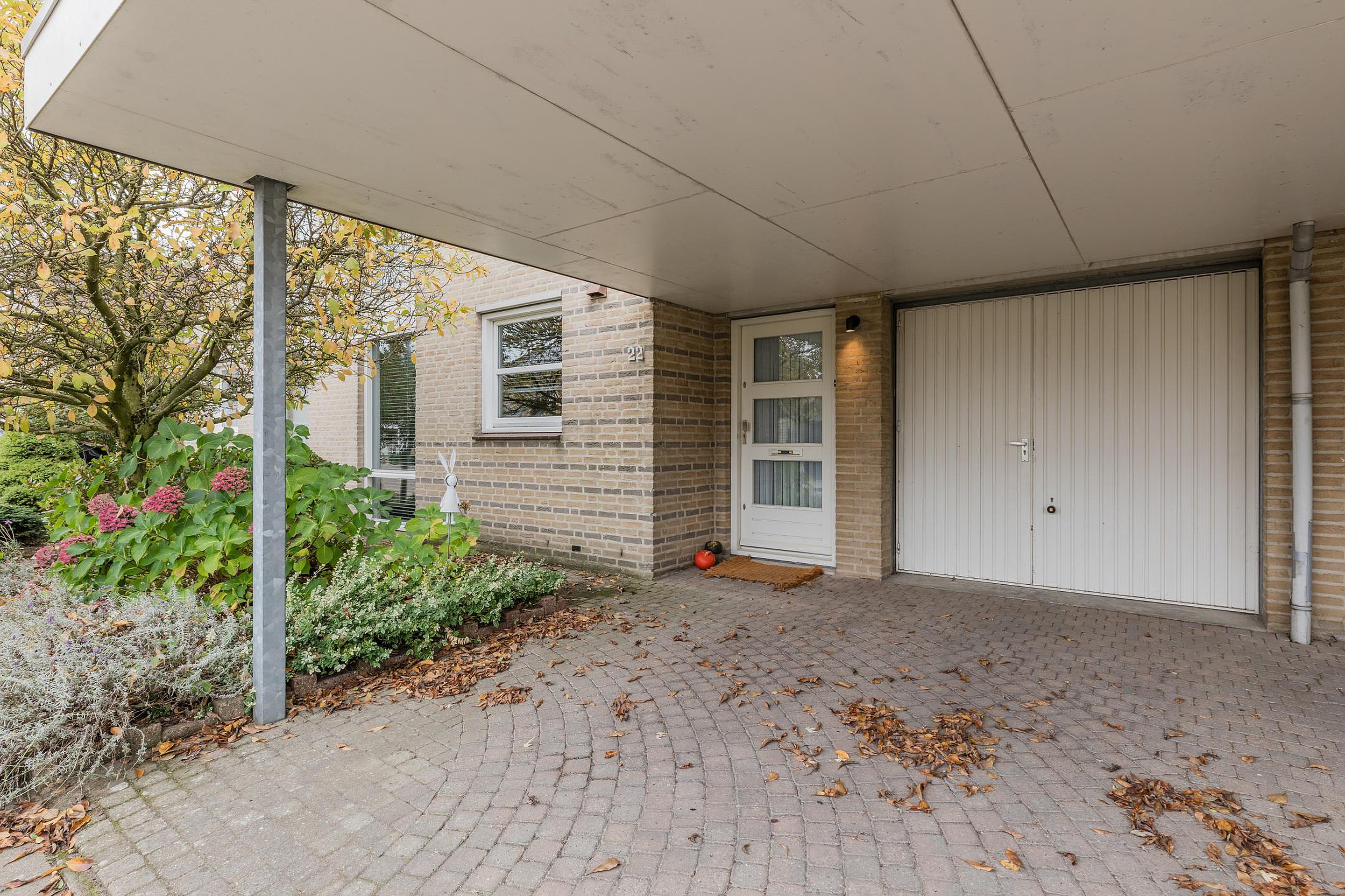 De inpandige extra ruime garage (ca. 21m2) is voorzien van de CV-opstelling, de mechanische afzuigunit en de wasmachine en de droger aansluiting. Een kantelpoort met loopdeur geeft toegang tot de oprit. Aan de voorzijde is er een grote overdekte beklinkerde oprit met toegang tot de entree en de garage. Aan de achterzijde heeft de woning een zonnige tuin met overdekt terras, borders met beplanting, een ruim tuinhuis voor het opbergen van tuinspullen en een groene omheining. De zonnige tuin biedt privacy.