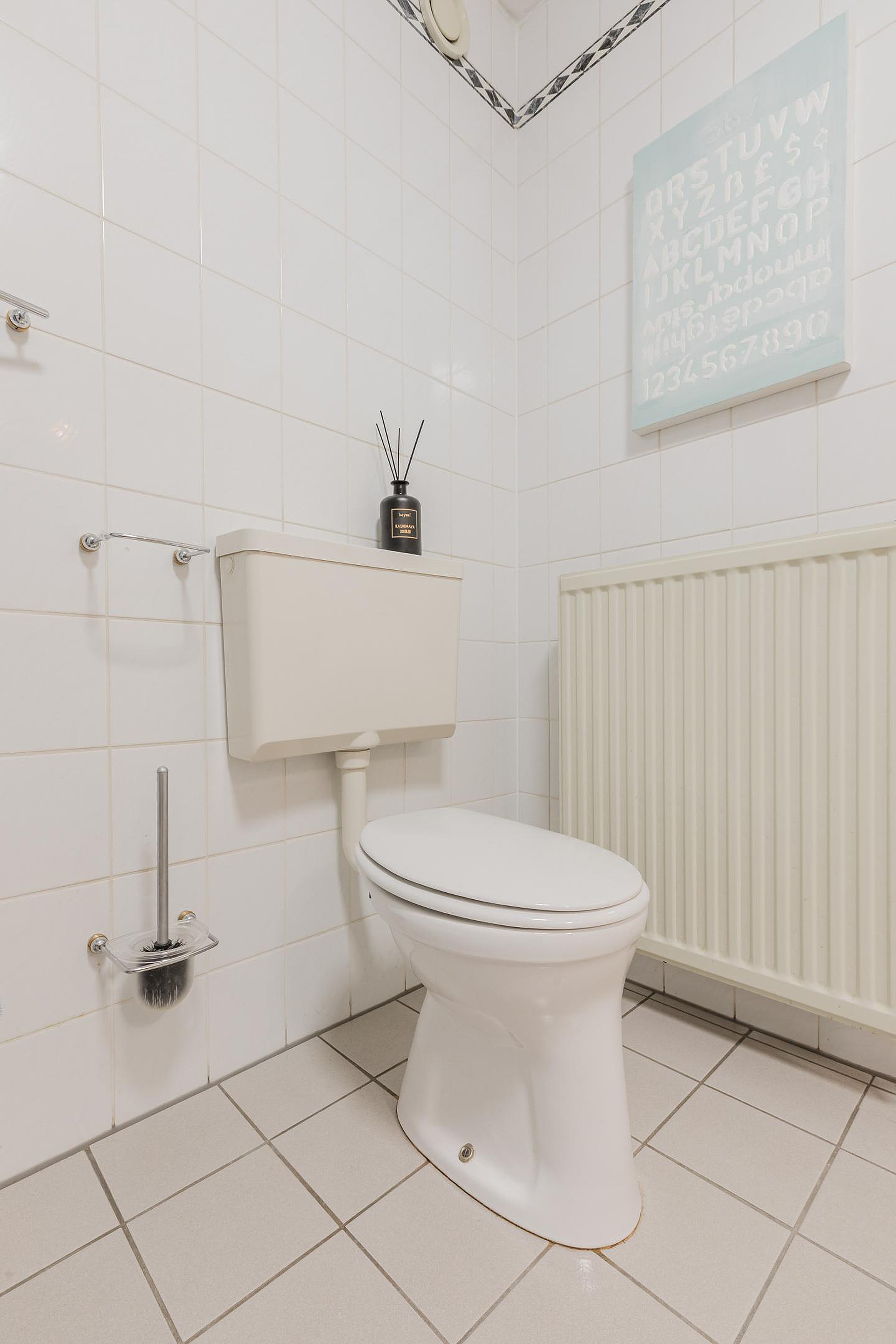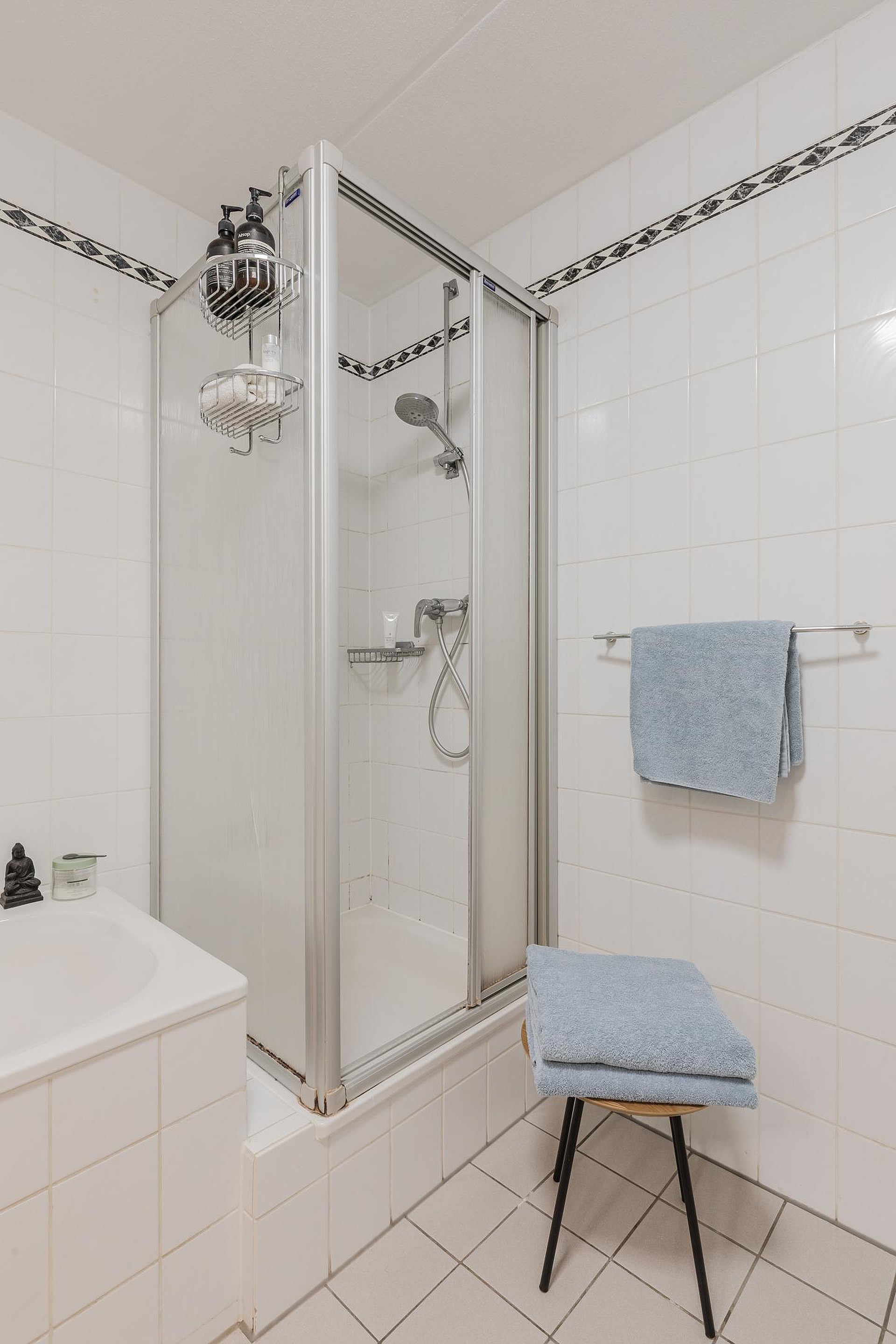 Badkamer (ca. 9,5m2) heeft een ligbad, douche, staand closet, wastafel met meubel en handdoekkast en mechanische afzuiging.