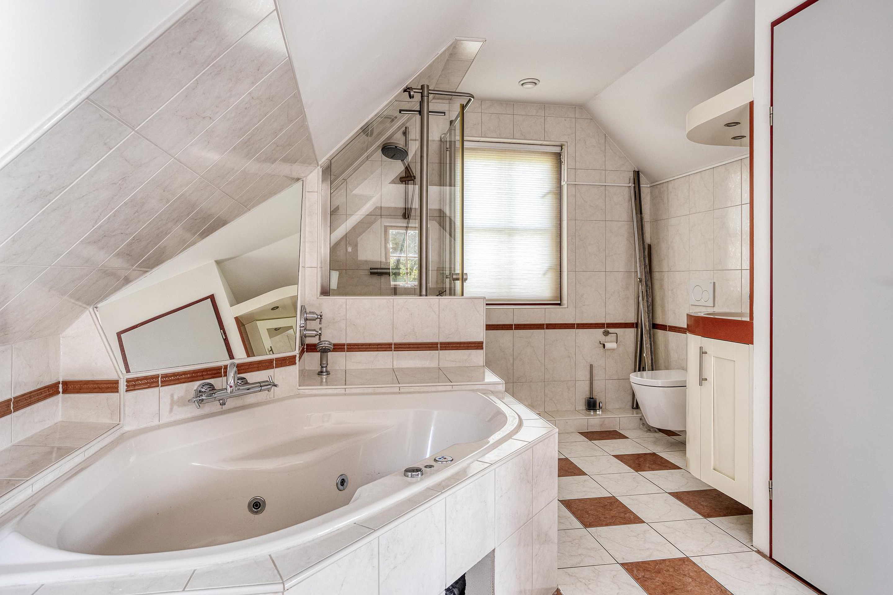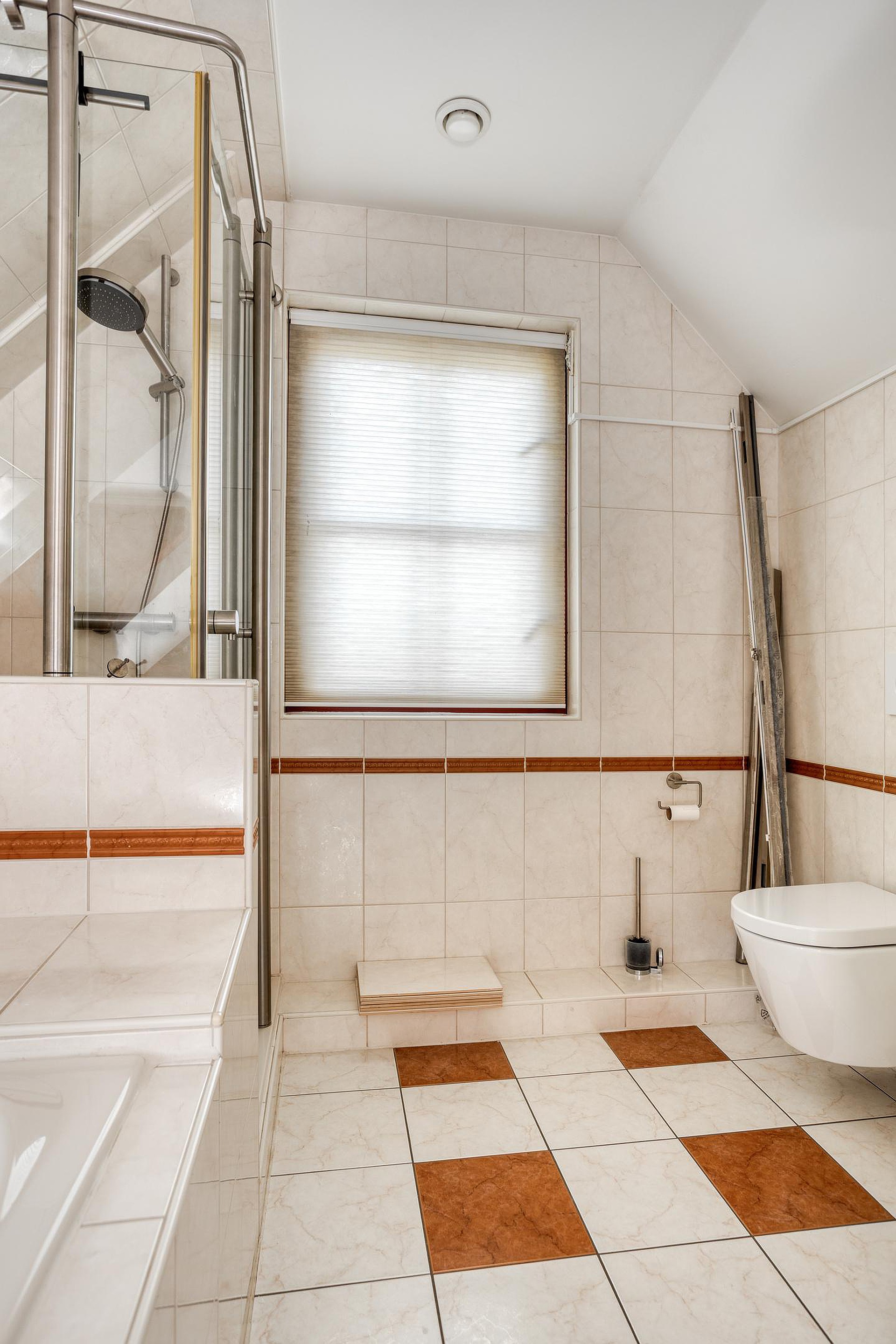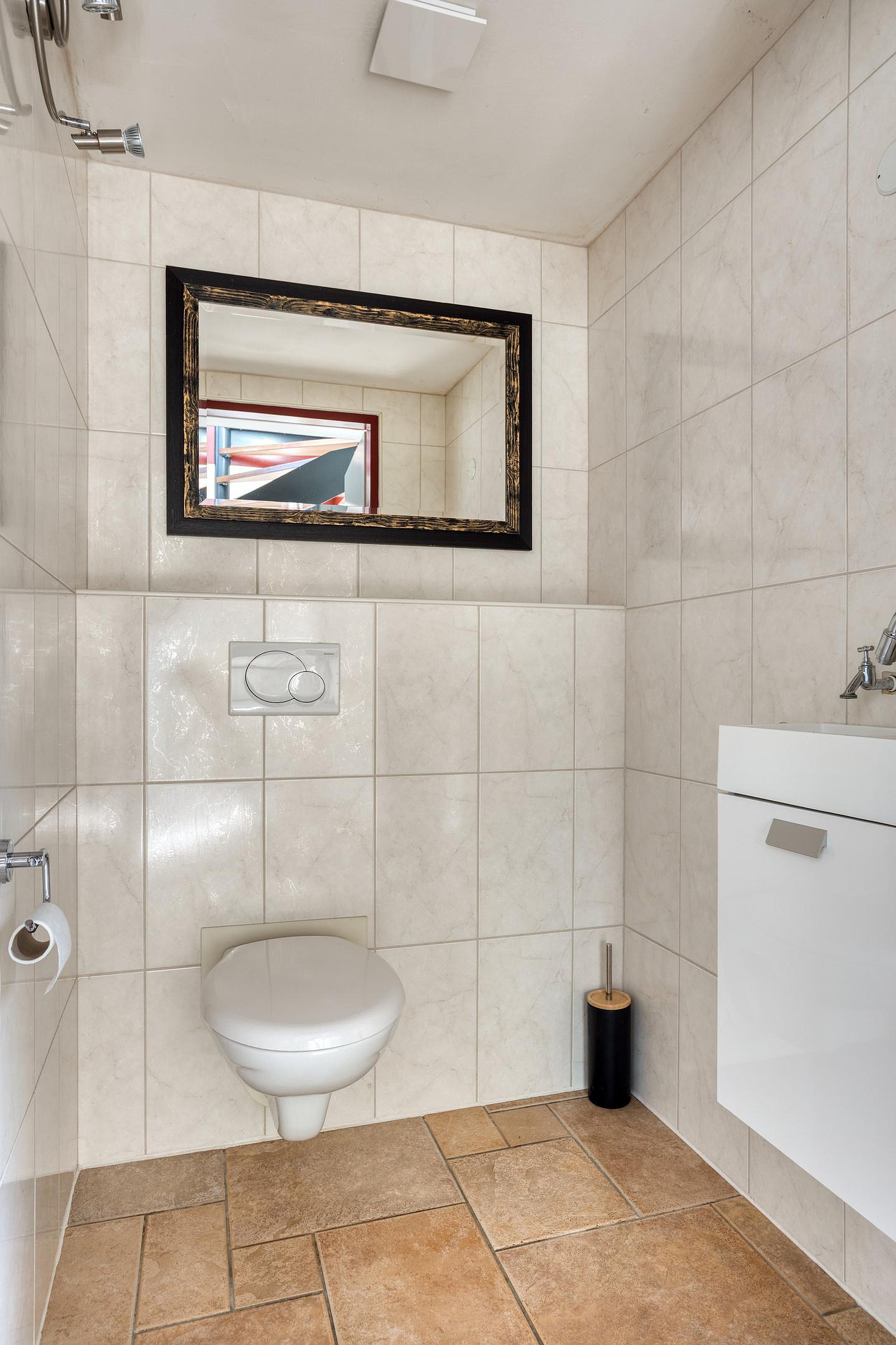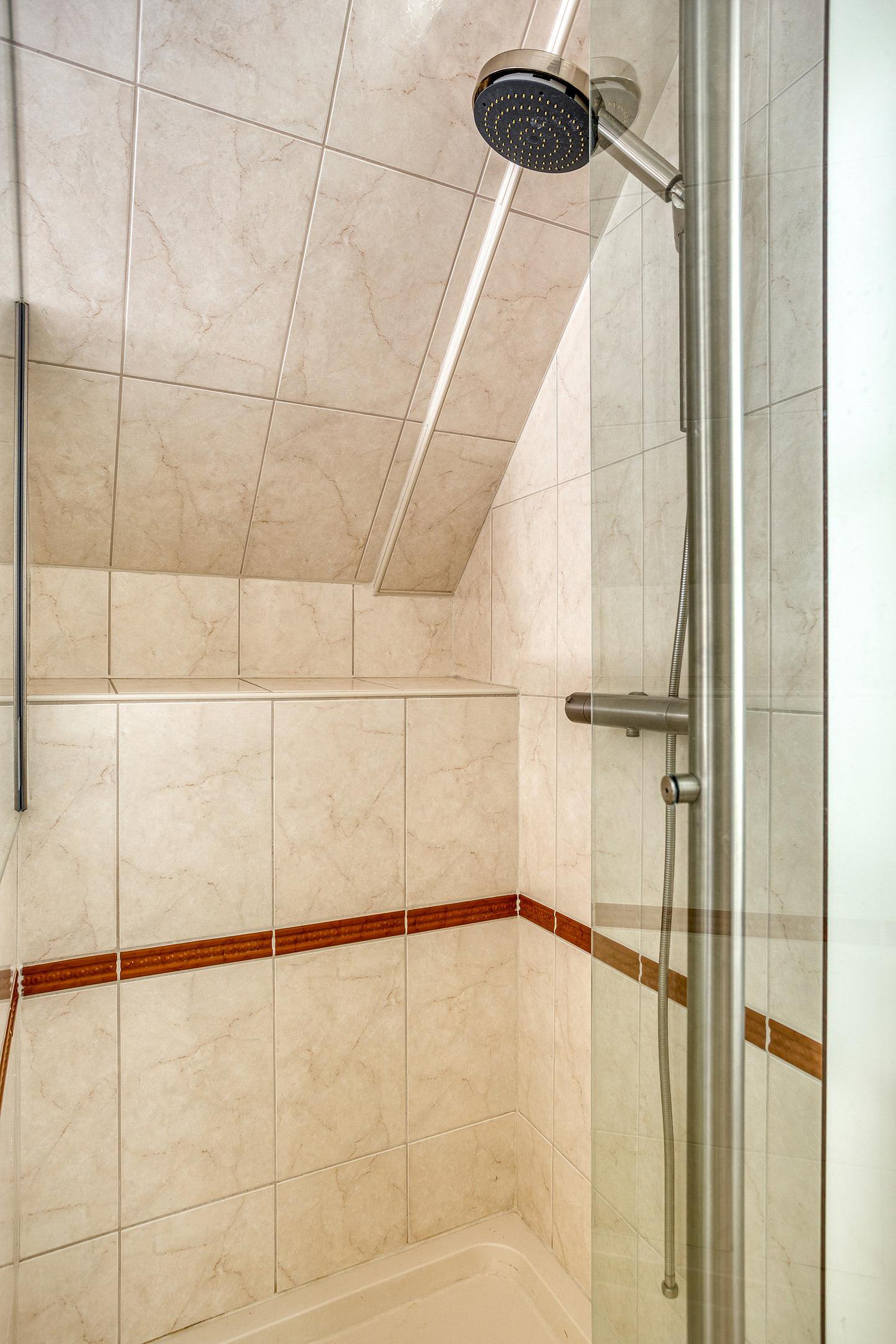 Ruime opgezet met slaapgedeelte, ruim ligbad en wastafel en wc. Vloerverwarming aanwezig. Tevens berging met CV.