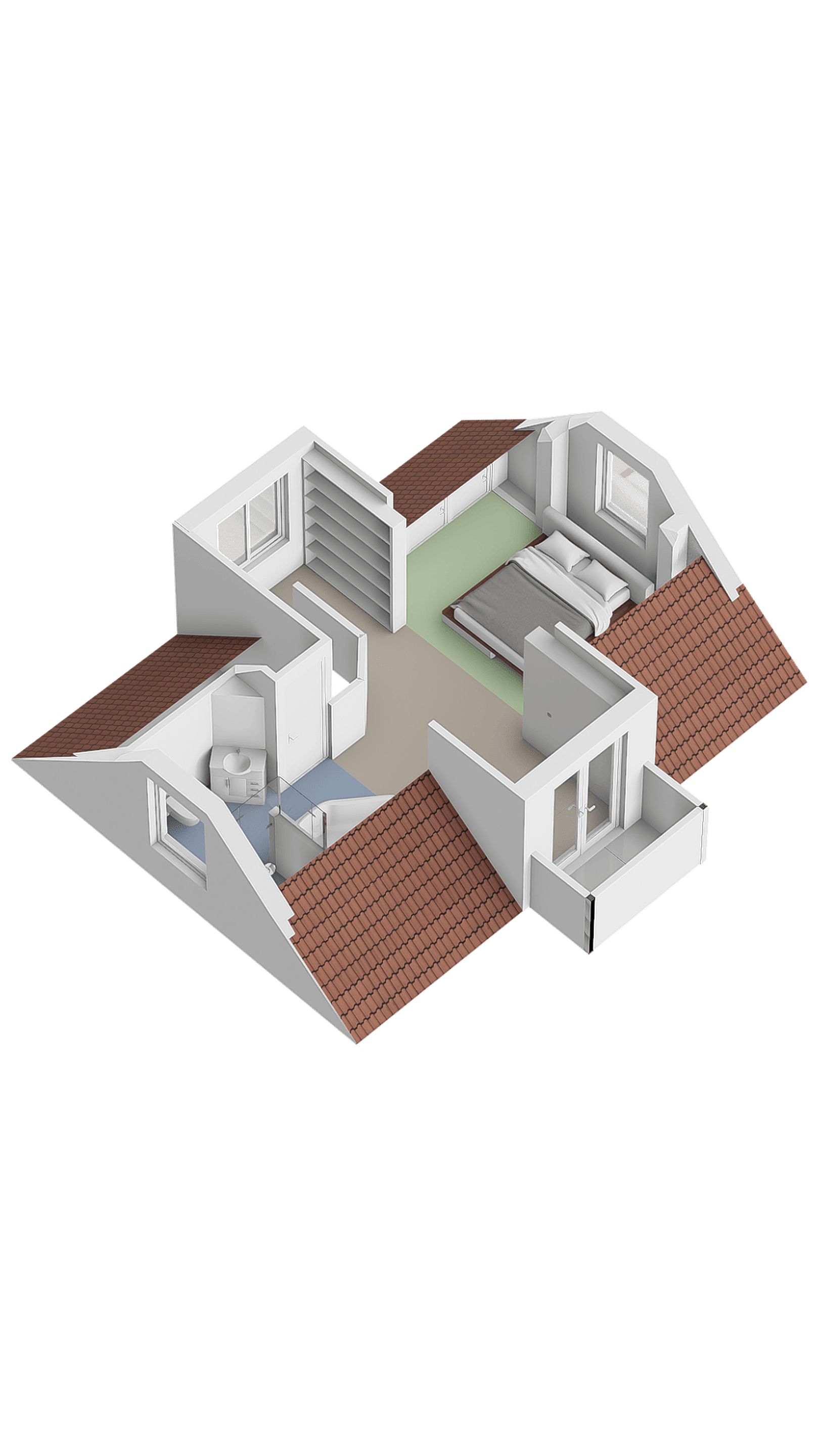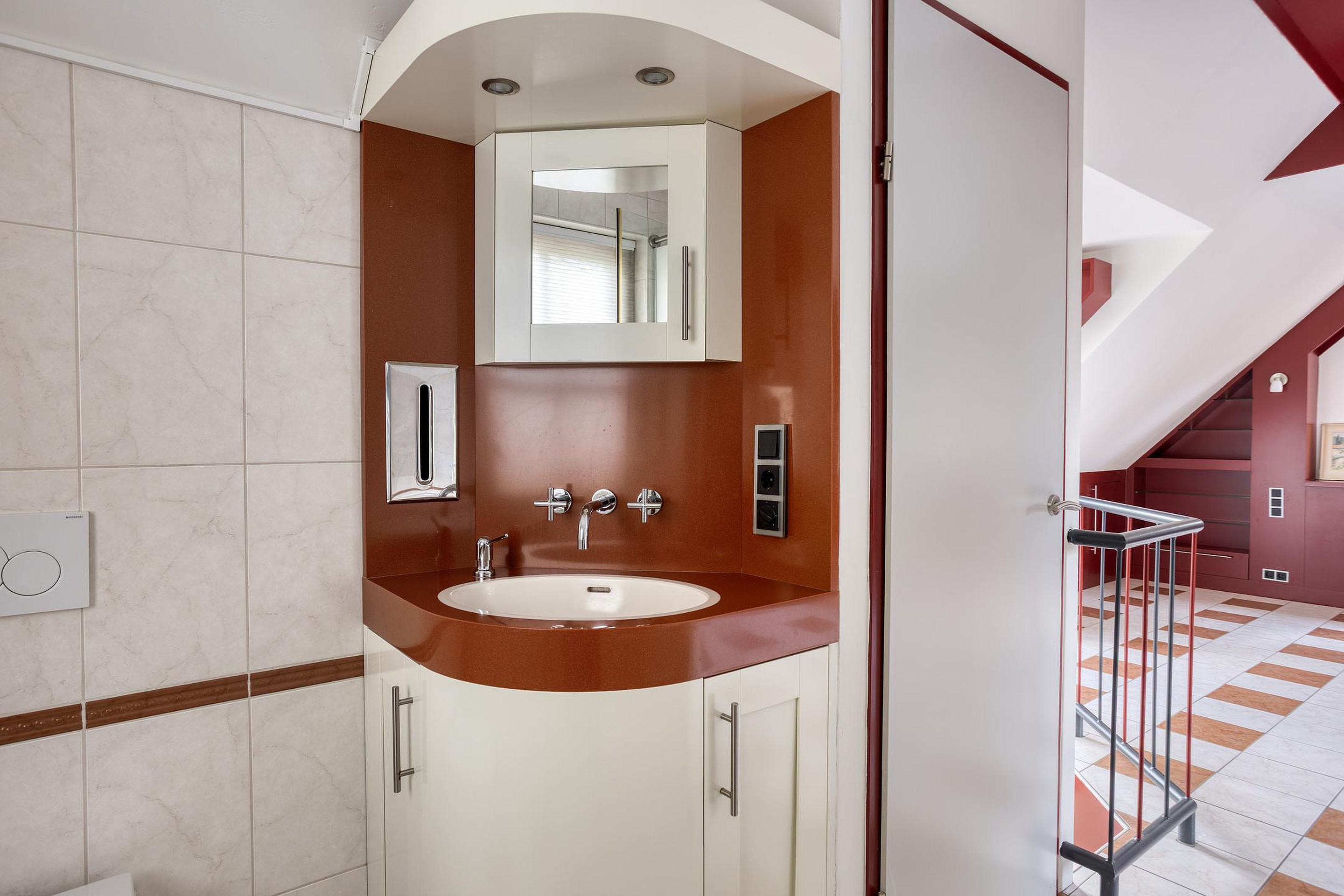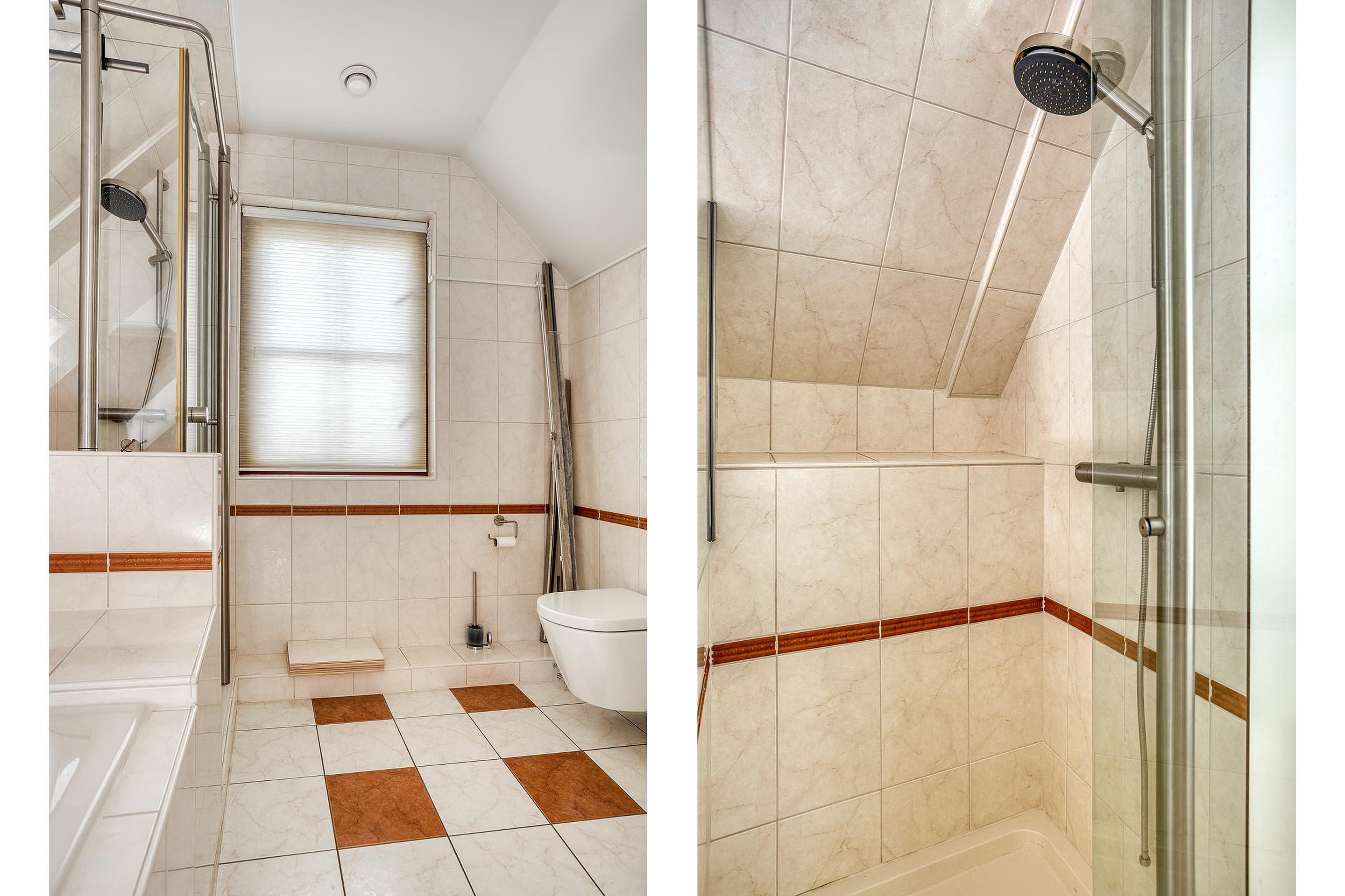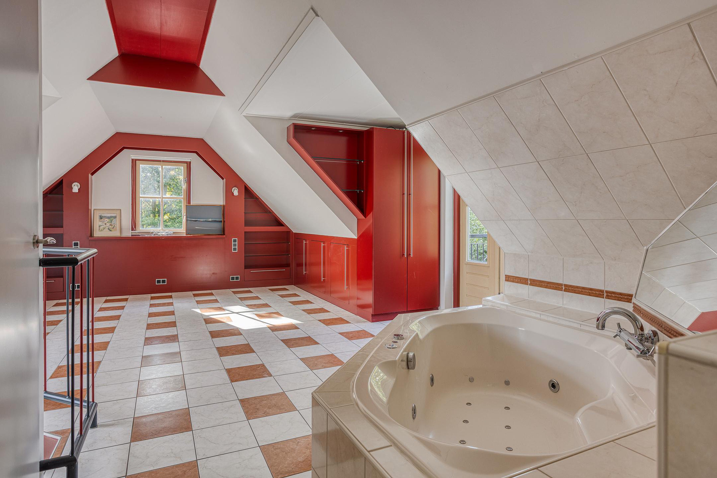 Ruime opgezet met slaapgedeelte, ruim ligbad en wastafel en wc. Vloerverwarming aanwezig. Tevens berging met CV.