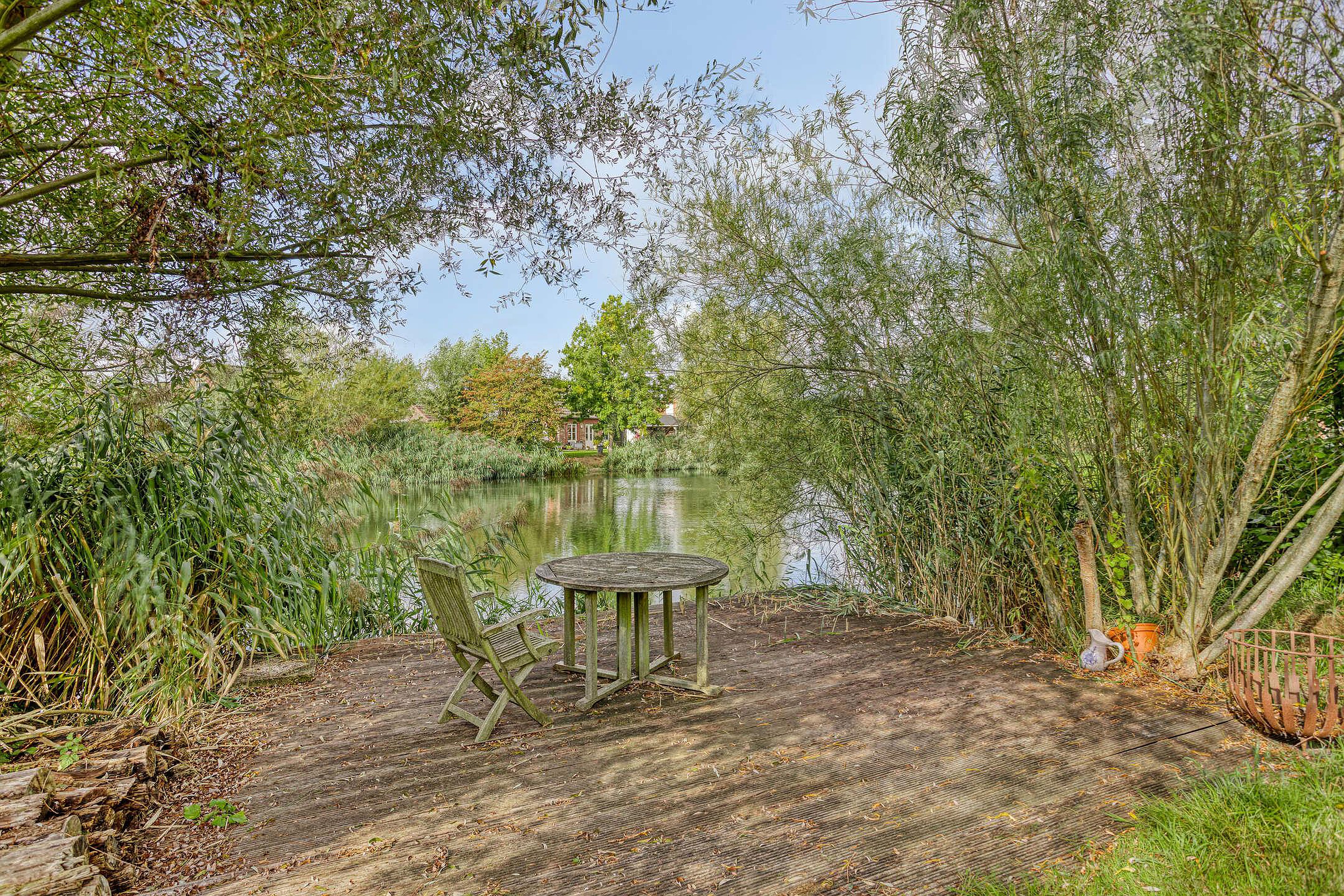 De privacy volle achtertuin aan het water is gelegen op het westen, biedt ruimte voor meerdere terrassen. Aan de vlonder bij het water is het heerlijk vertoeven.