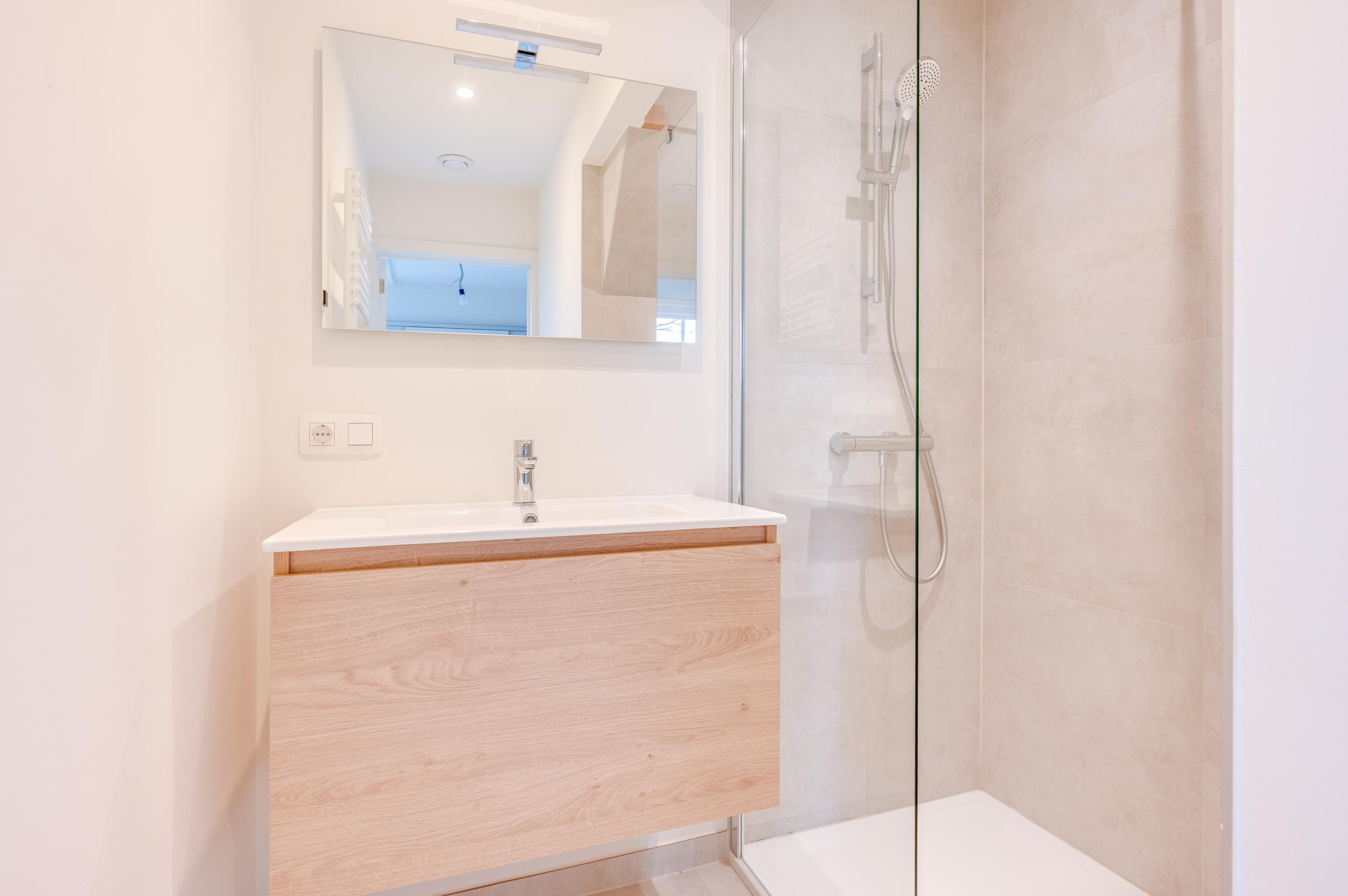 Op de begane grond treft u een gezellige woonkamer met veel lichtinval. De ruimte sluit naadloos aan op de keuken, die modern en praktisch is ingericht en toegang geeft tot de tuin. Op deze verdieping vindt u ook de badkamer, uitgerust met douche, wastafel en een apart toilet.