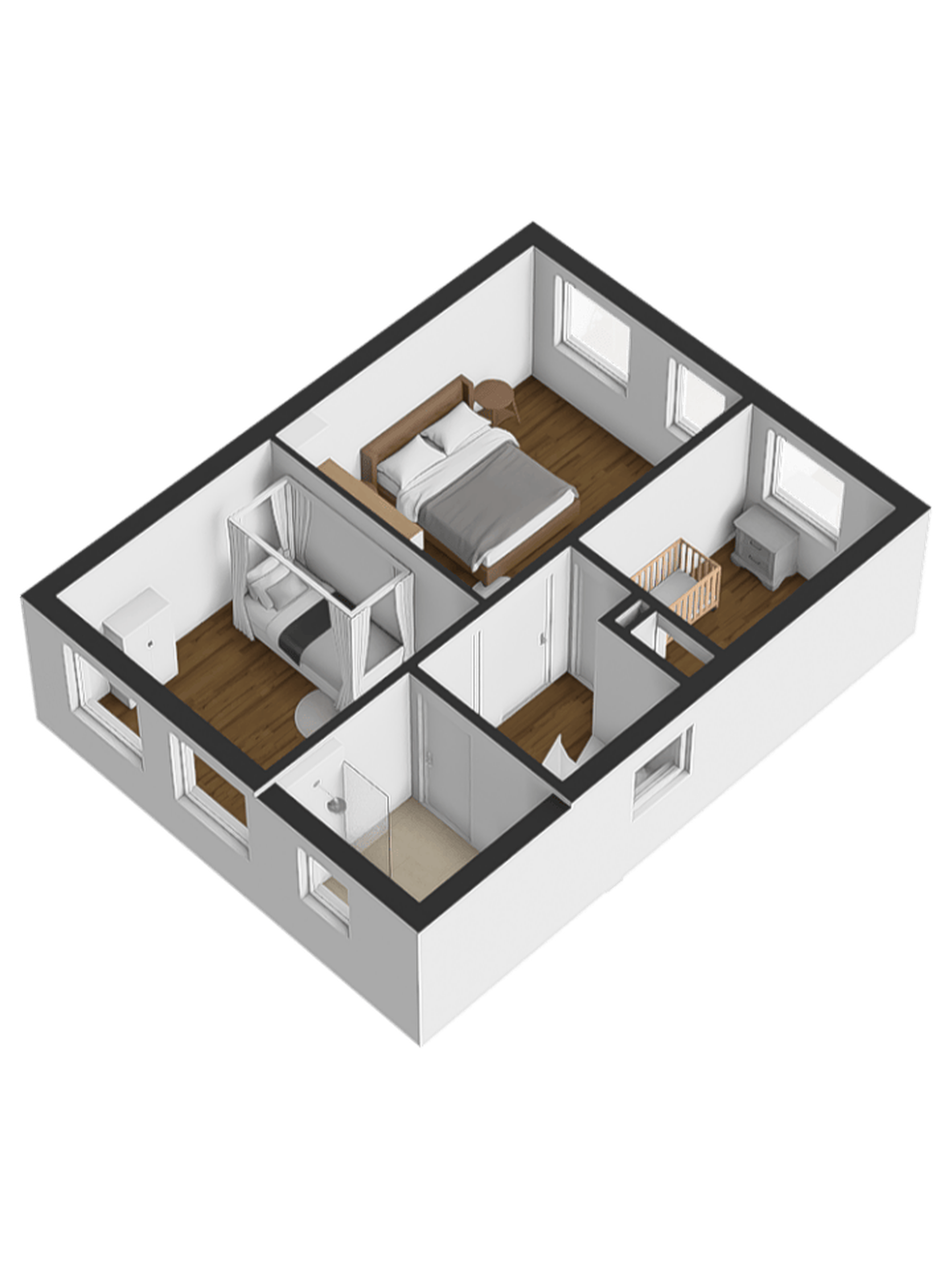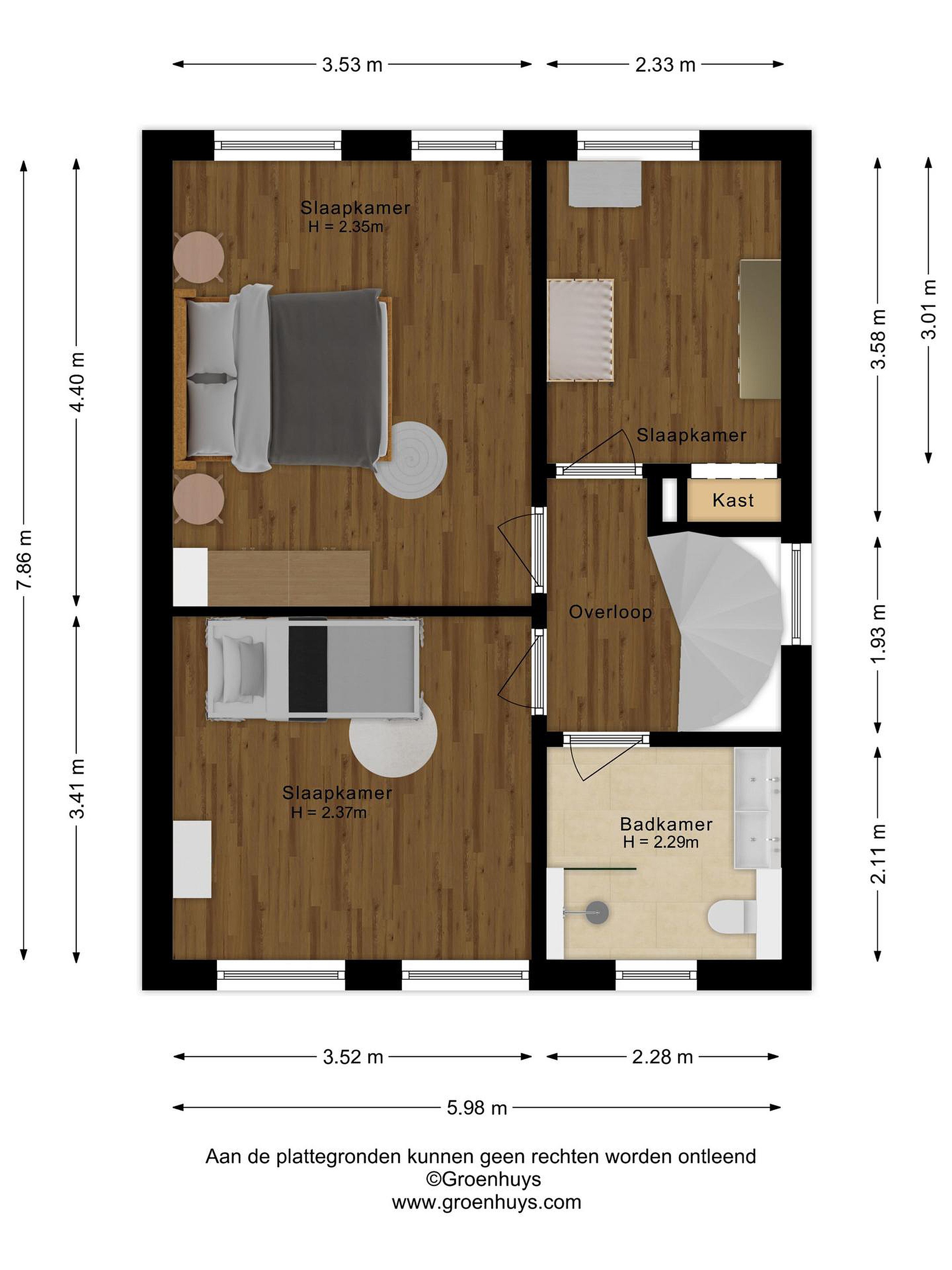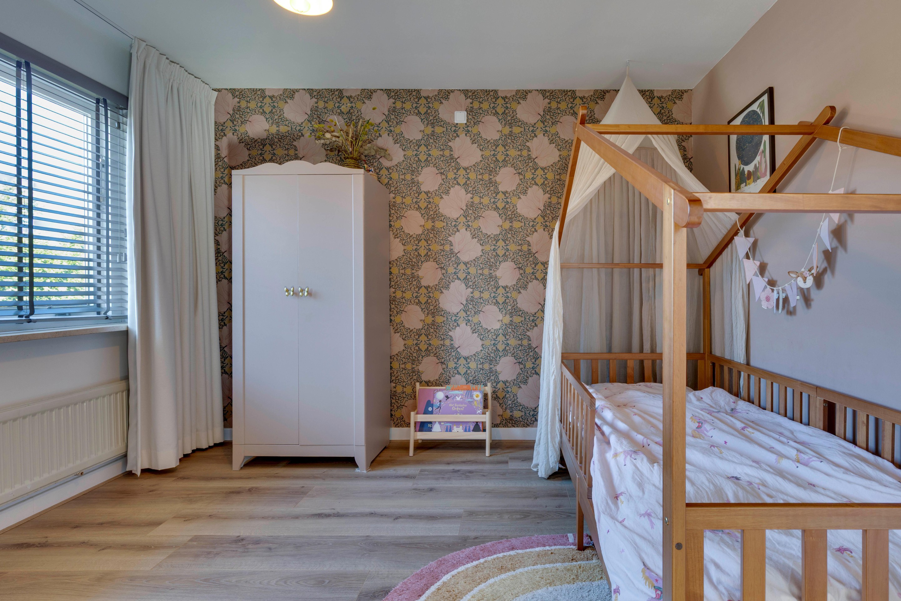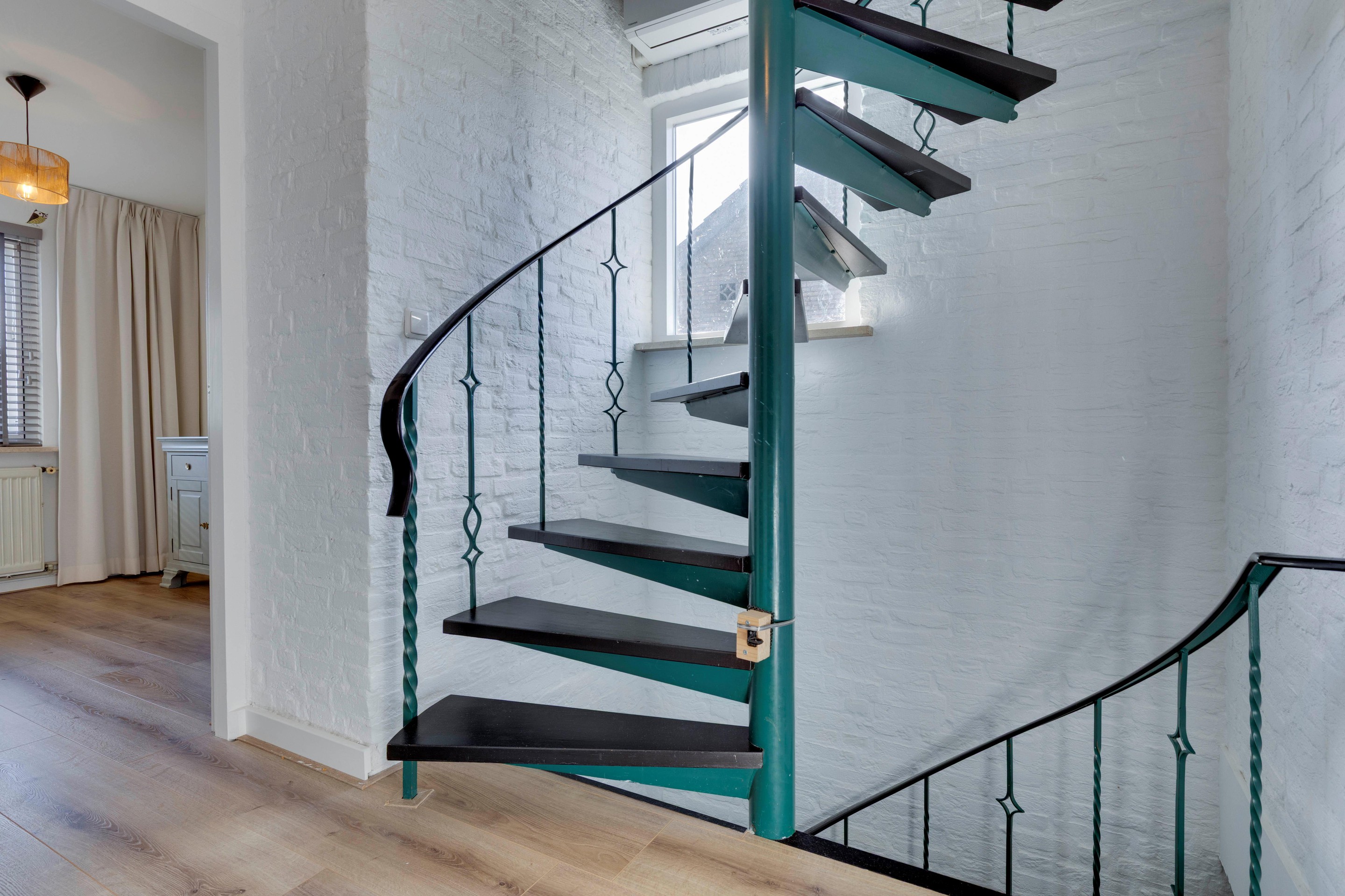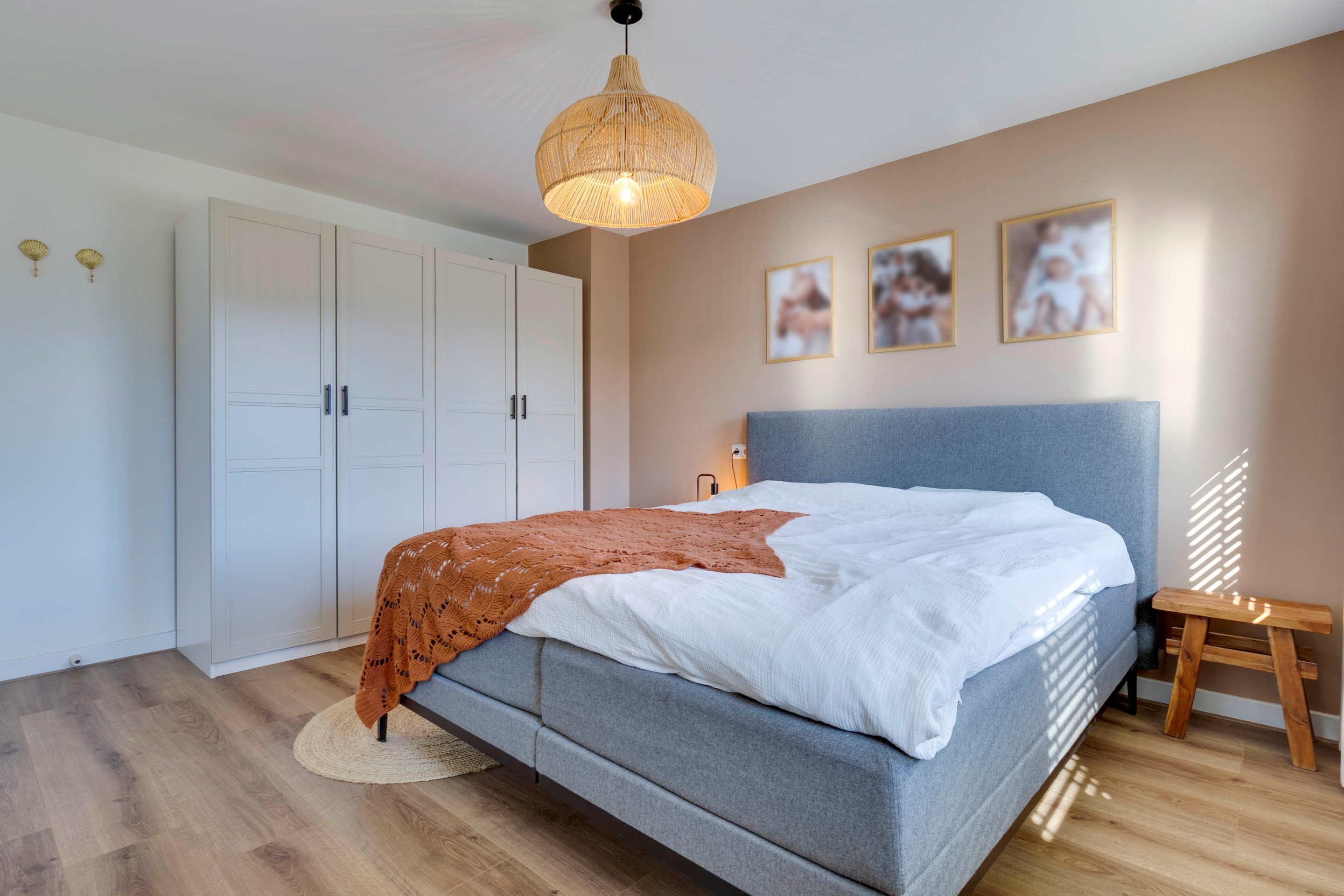 Via de overloop bereik je drie prettig ruime slaapkamers, allemaal voorzien van laminaatvloeren, houten kozijnen met dubbele beglazing en strak stucwerk. Ook hier zorgt een airco-unit voor optimaal wooncomfort.