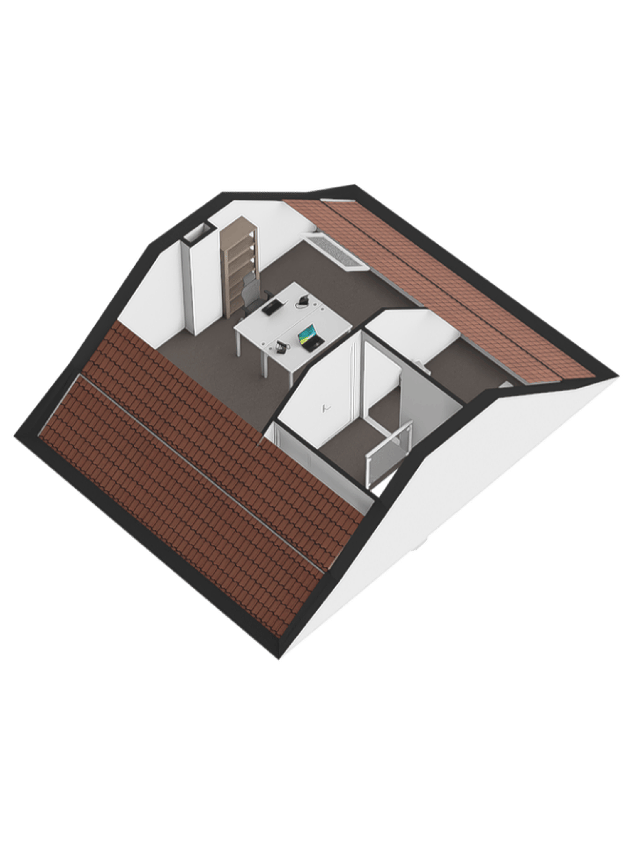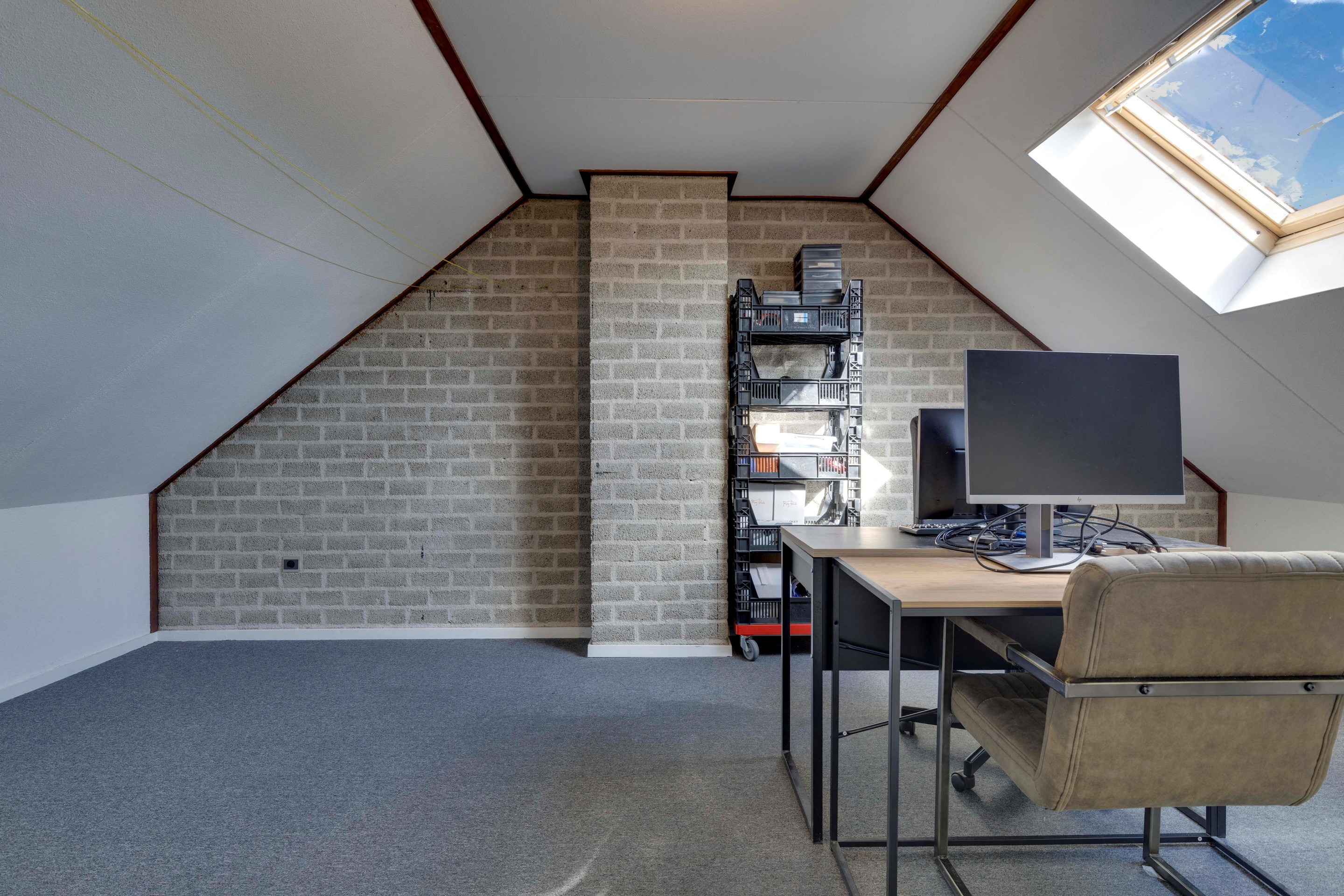 De ruime extra zolderkamer beschikt over een Velux dakraam, verwarming en praktische bergruimte: ideaal als vierde slaapkamer, werkkamer of hobbyruimte.