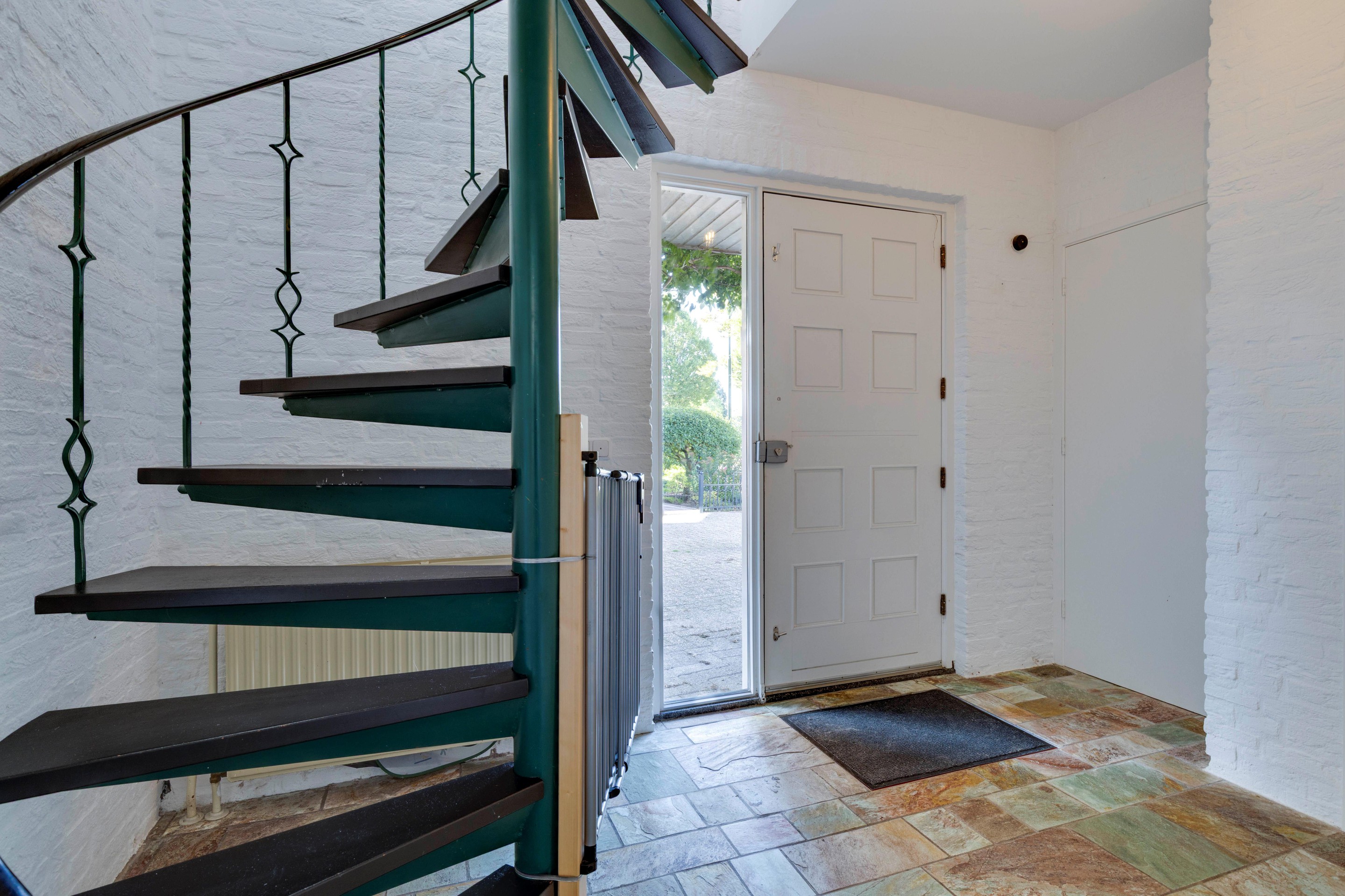 De brede oprit biedt plaats aan meerdere auto’s en leidt naar de keurig aangelegde voortuin. Binnenkomst via de hal met natuurstenen vloer, vernieuwde meterkast (slimme meters) en toegang tot het keurig betegelde toilet en de sfeervolle woonkamer. Een mooie wenteltrap brengt je naar de eerste verdieping.