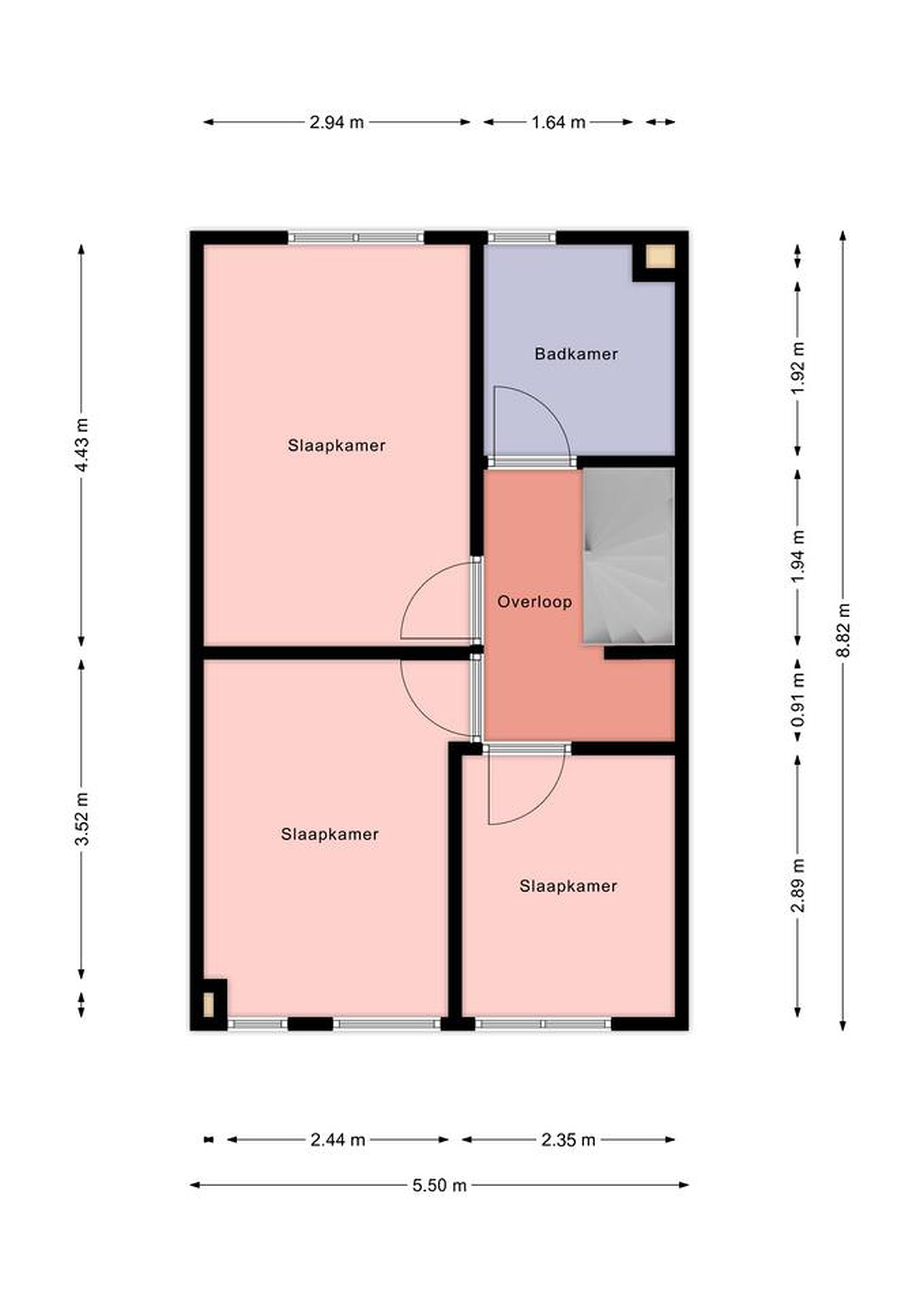 Eerste verdieping Op de eerste verdieping bevinden zich drie goed bemeten slaapkamers en een badkamer met inloopdouche, wastafel en tweede toilet.