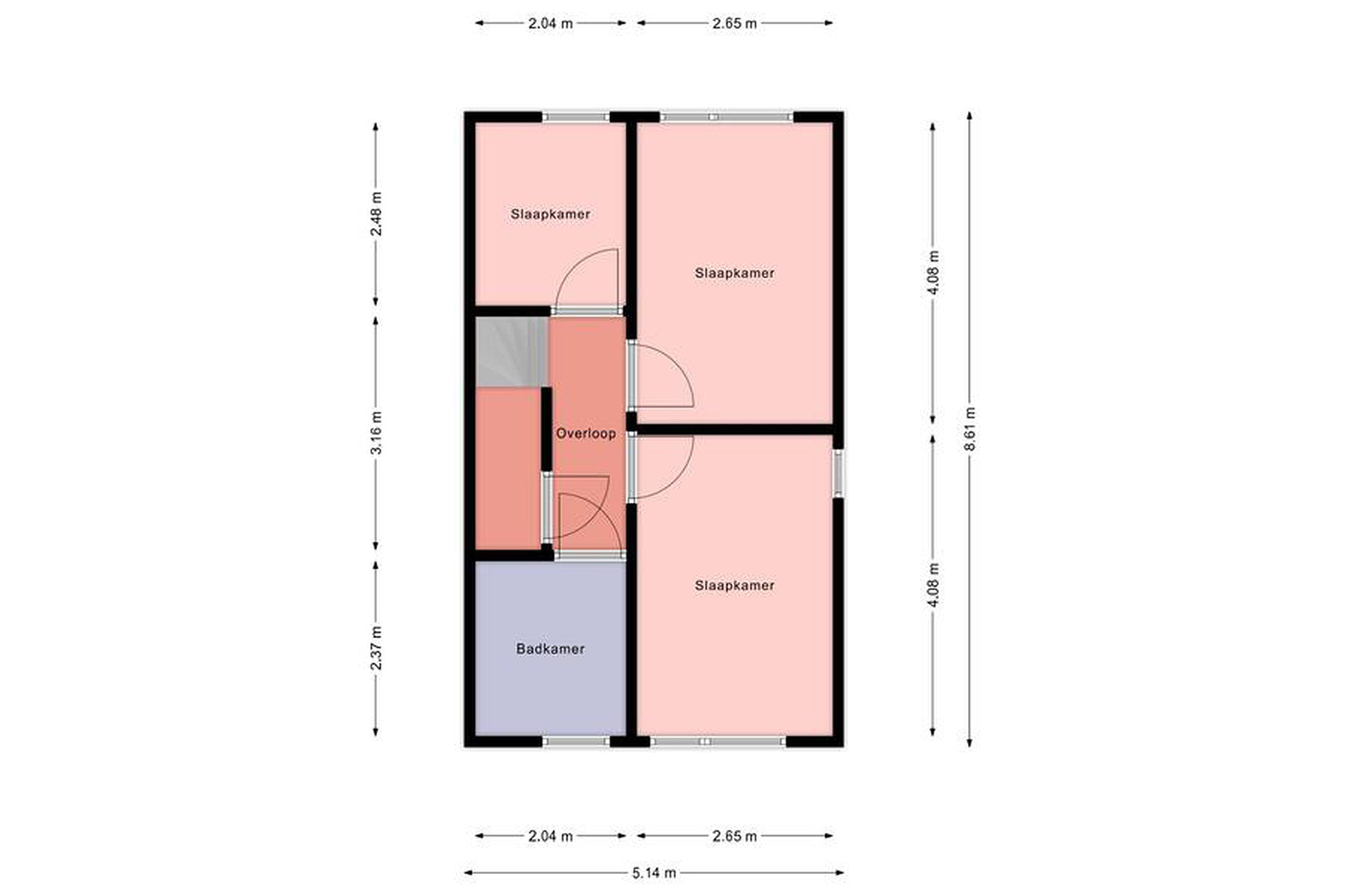 Eerste verdieping Overloop met toegang tot drie comfortabele slaapkamers en een moderne badkamer.