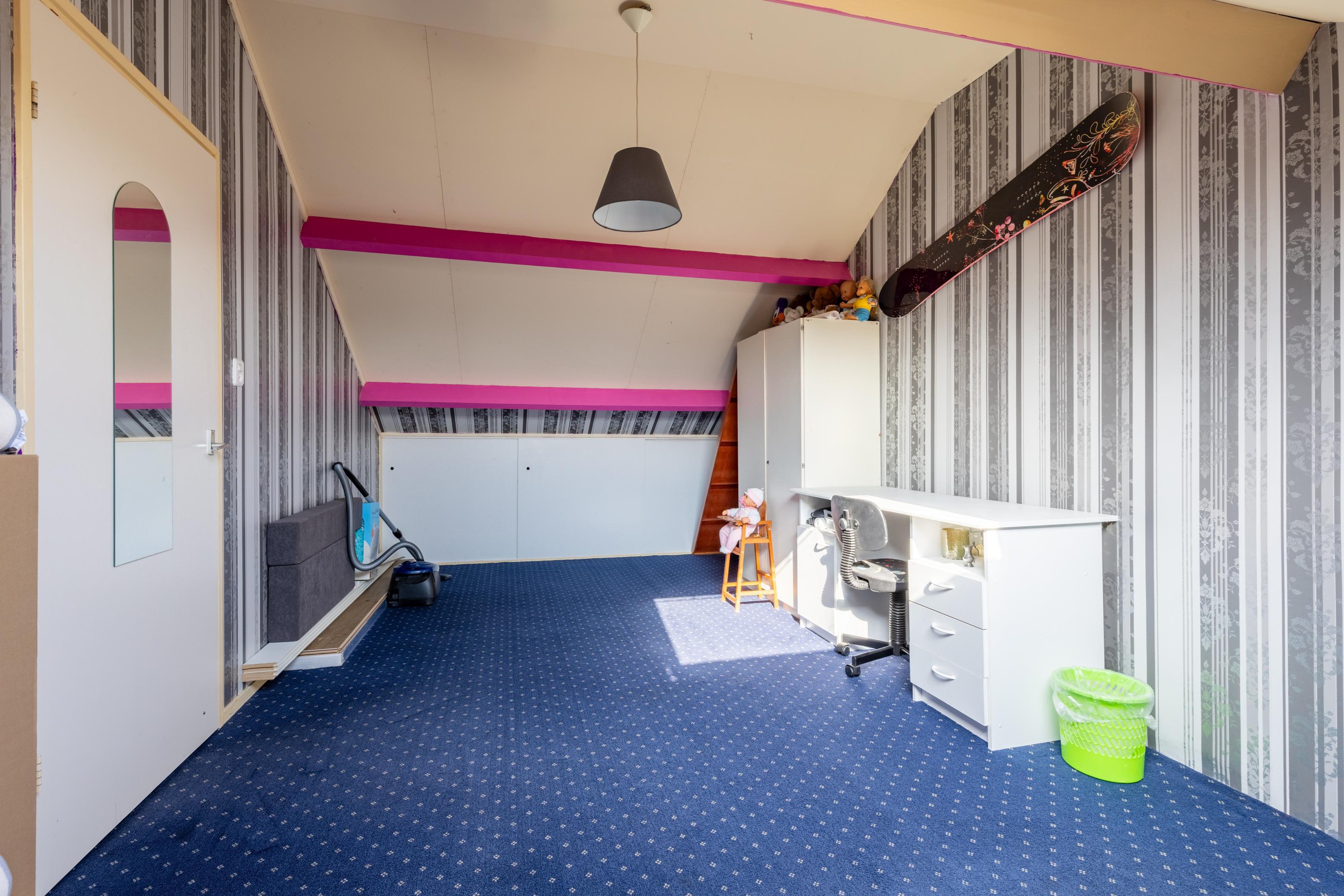 Tweede verdieping via vaste trap naar de royale zolderverdieping, 4e slaapkamer, wasruimte met wasmachine- en drogeraansluitingen, en de opstelplaats van de CV-ketel. Er is volop bergruimte aanwezig.
